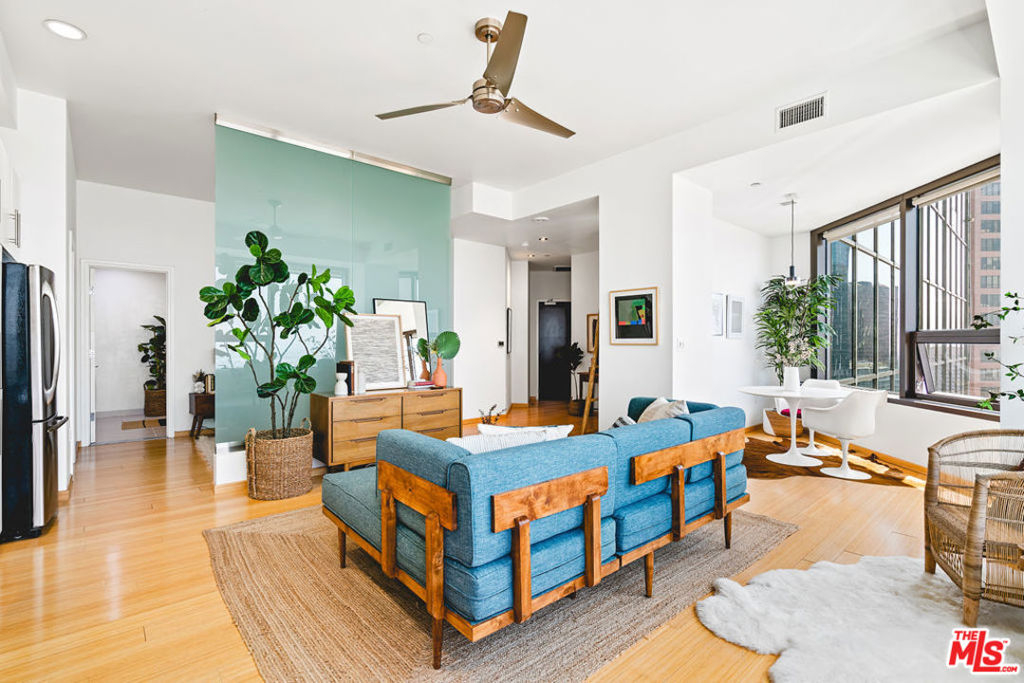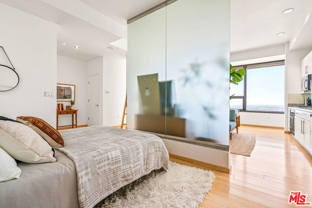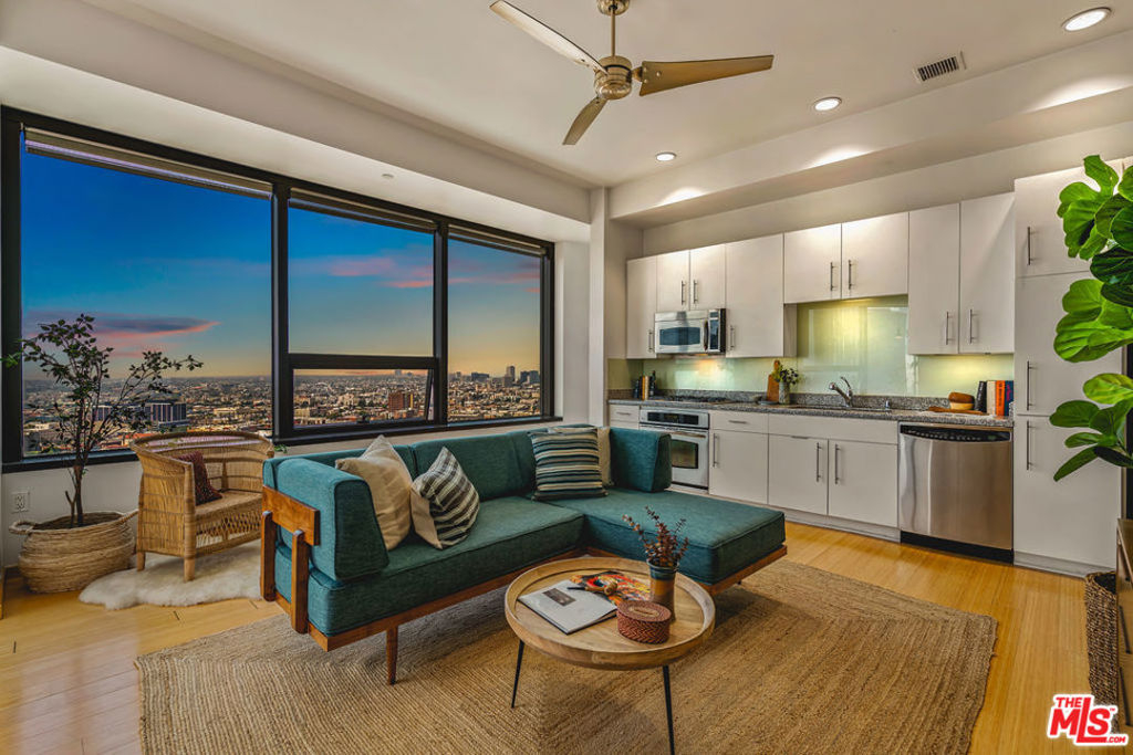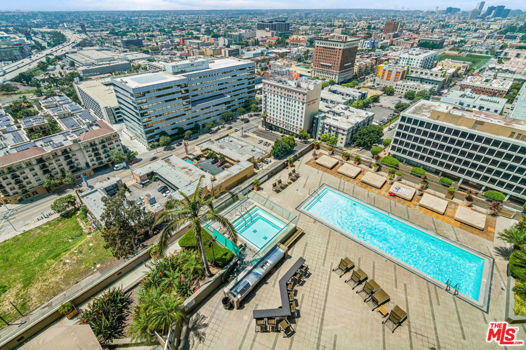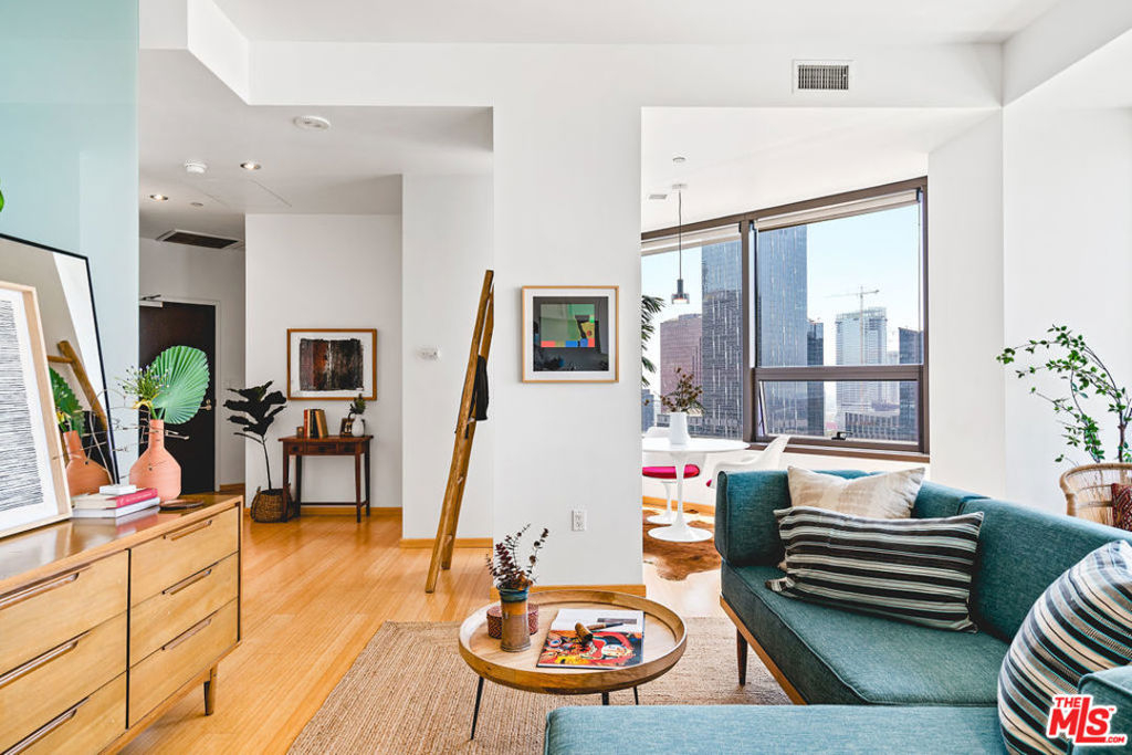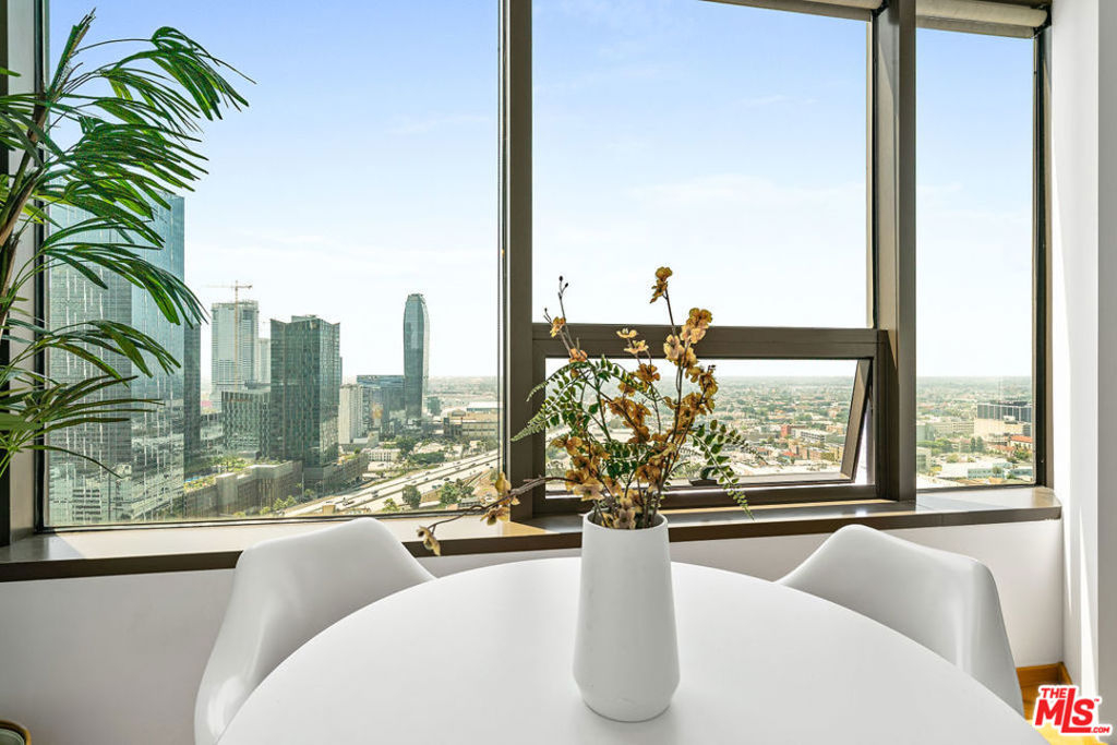 3D VIRTUAL TOUR: bit.ly/1100Wilshire2012 Enjoy luxury high-rise living with amazing panoramic views of the city and resort style amenities. This unique one bedroom condo floor plan is rare due to its extra wall of glass. Tons of natural sunlight flood into this 20th floor unit and the evening sunsets are magical. Bamboo flooring throughout, GE Profile stainless steel kitchen appliances, European style cabinetry, granite counters and in-unit washer/dryer hookups are located in the over-sized bathroom. Two parking spaces come with this unit as an added bonus. The amazing 17th floor Sky Deck has a year round heated infinity pool, elevated spa, cabanas & lounge beds, wet bar, BBQ grill, fire pit and a private dining area. In addition, the second floor fitness center, conference room, media room and 24 hour front desk service are all a part of the amenities in this building. Conveniently located near world-class dining, LA Live, public transportation and all that DTLA has to offer.