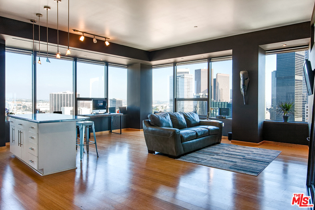 Coveted 2 bedroom 2 bath corner residence at 1100 Wilshire features sweeping views of downtown LA skyline to the east and serene hills to the north, a spacious floor plan with 1,340+/- sq. ft of open living space featuring bamboo floors, beautiful granite countertops, European style cabinetry, GE Profile appliances and includes 2 parking spaces. Amazing 17th floor Sky Deck with heated infinity pool, elevated spa, cabanas, lounge beds, wet bar, BBQ grill, seated fire pit cove and area for private parties. There is also a 24hr state-ofthe-art fitness center, media and conference room for residents' use, an attended grand lobby and is conveniently located near world-class dining, financial district, Staples Center, LA Live, 7th at Fig and upcoming The BLOC.