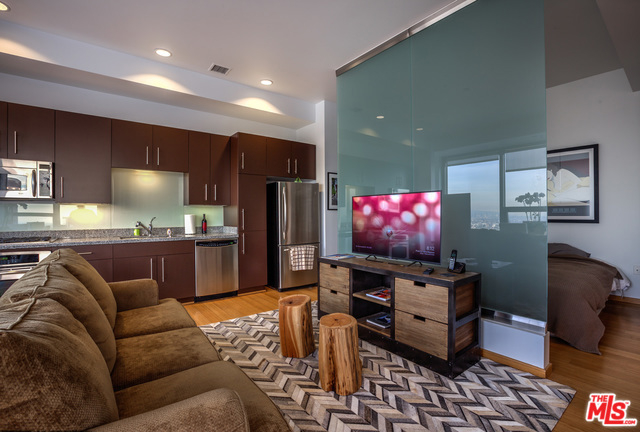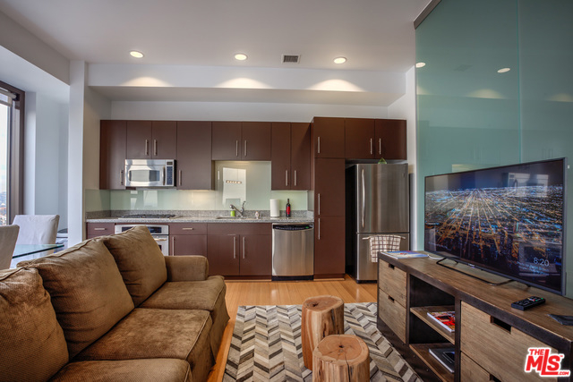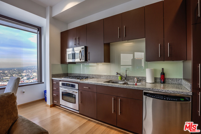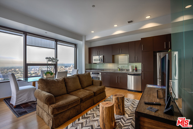 Luxury high-rise loft featuring amazing panoramic views of the city. Features includes bamboo floors, GE Profile Stainless Steel kitchen appliances, European style cabinetry, granite counters, in-unit Bosch washer/dryer, and 2 parking spaces, 1 of which is a reserved space in a great location close to elevator entrance. Resort amenities include an amazing 17th floor Sky Deck with heated infinity pool, elevated spa, cabanas & lounge beds, wet bar, BBQ grill, fire pit cove and a private grill area. 1100 Wilshire also features a fitness center, conference room, media room, 24-hr attended lobby, and is conveniently located near world-class dining, entertainment, and public transportation.