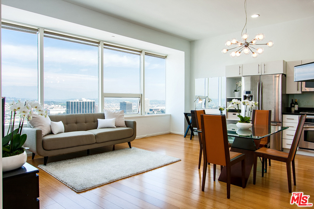 Experience high rise living w/ awe-inspiring views in this modern Live/Work loft featuring a separate elevated bedroom, 10'8" ceilings, open kitchen w/ stainless steel appliances, Euro cabinets, granite counters, Bosch washer/dryer, bamboo floors, Container Store closet organizer and 2 parking spaces. Amazing 17th floor Sky Deck includes heated infinity pool and spa, cabanas, lounge beds, wet bar, BBQ grills and seated fire pit cove. Other great amenities include state of the art fitness center, media/screening room, business center and 24 attended lobby. Live near everything DTLA has to offer: financial district, fine dining and entertainment, public transportation and the new Intercontinental Hotel at Wilshire Grand Center.