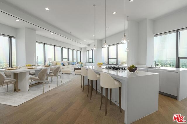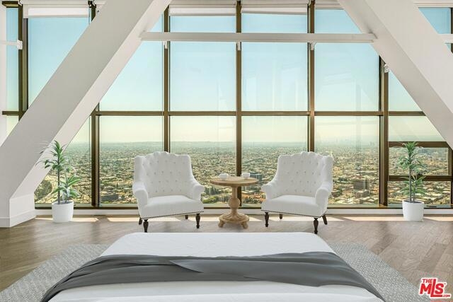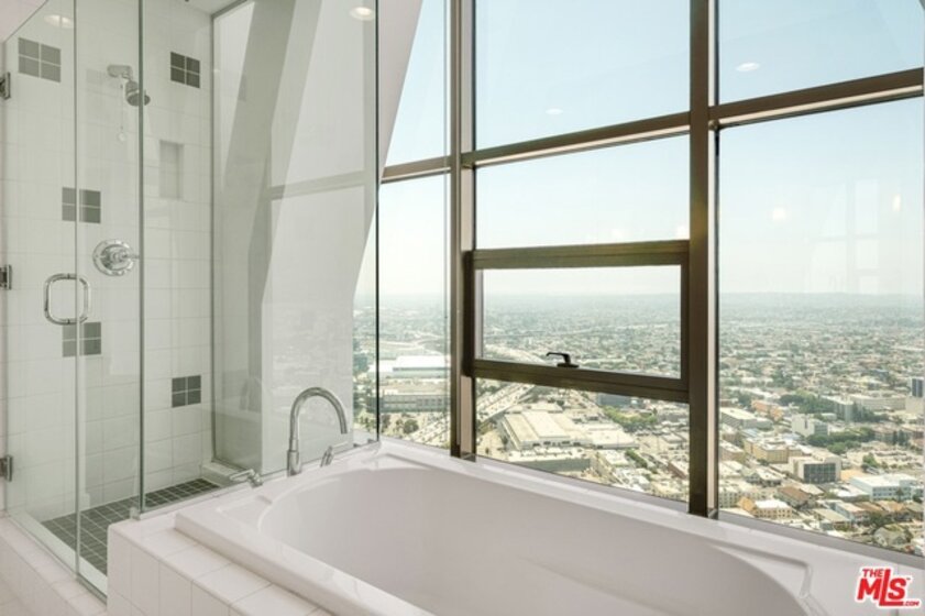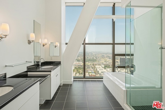 This 2-story corner penthouse, set within one of the tallest residential buildings in LA, presents an unrivaled opportunity to dwell high aloft the city with incredible jetliner views. Featuring 18-foot ceilings, a wealth of natural light and an open-concept floor plan replete with floor-to-ceiling windows throughout, all of which are UV protected for art and furnishings, the live/work penthouse is host to an impressive 3,170 square feet of living space. With 3 bedrooms and 3 baths, the penthouse revels in all-encompassing vistas that span from the Hollywood Hills to the ocean. The full-service building offers owners low HOAs; a sky deck with an infinity pool, hot tub, fire pit, BBQ and cabanas; 24-hour security; fitness and business centers; and movie screening room. The residence comes with 3 parking spaces.