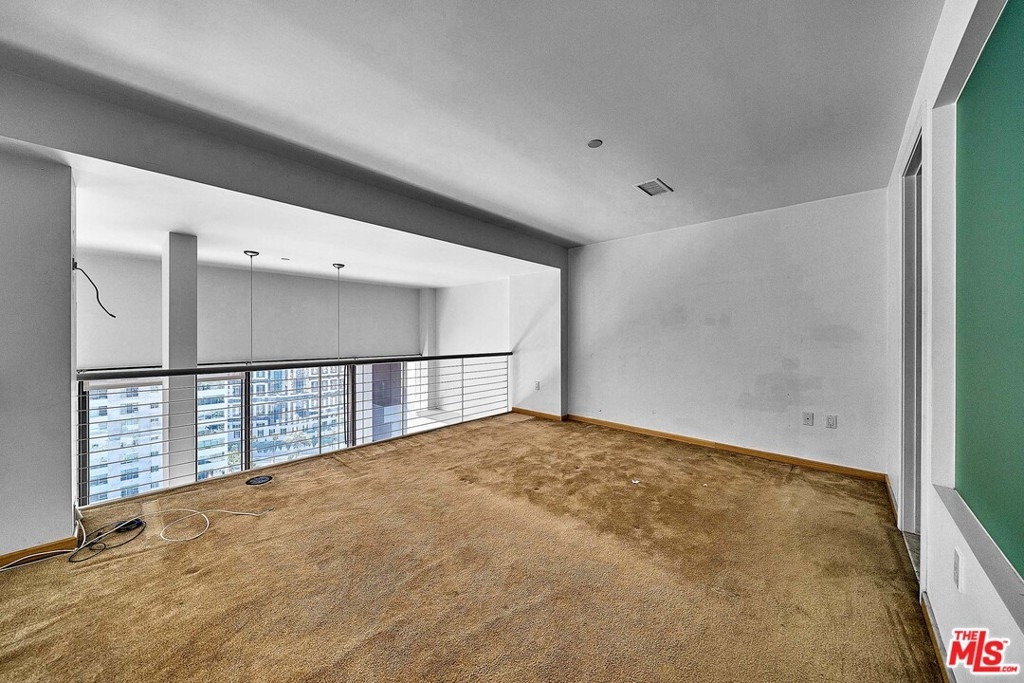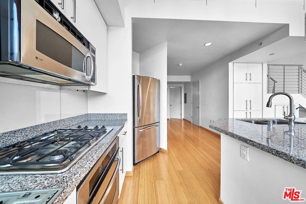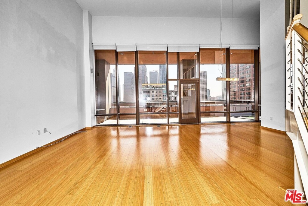 2 story Loft style condo w/ open floor plan, high ceilings, and a private balcony. The Master bedroom overlooks a spacious downstairs entertaining area that leads to a private balcony (330SQ.FT) w/ great panoramic views of the downtown skyline. Featuring GE Profile Stainless Steel kitchen appliances, European style cabinetry, granite counters, separate shower & tub in the master bathroom, custom-designed walk-in closet. The sky deck is located on the same floor w/ pool, spa, BBQ area, fire pit, cabanas. Fitness, Private screen room, business center, controlled access by 24 hr security. No need to change elevators from the parking garage. 1 reserved parking and 1additional parking is available. Close to 7th/Flower Metro Station, Ralph's, FIDM, Macy's Plaza,