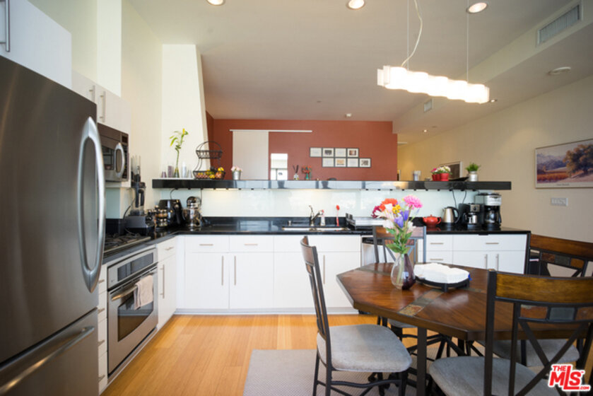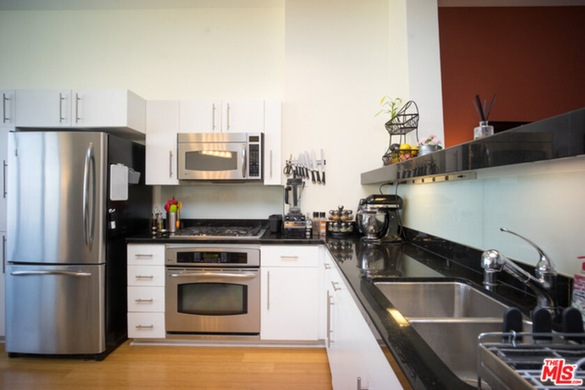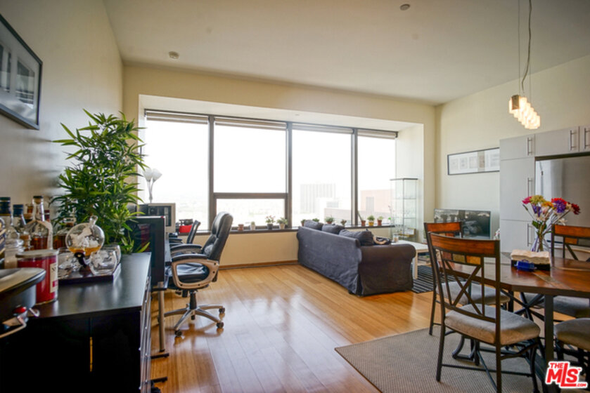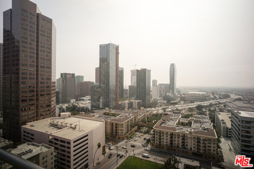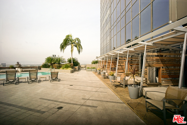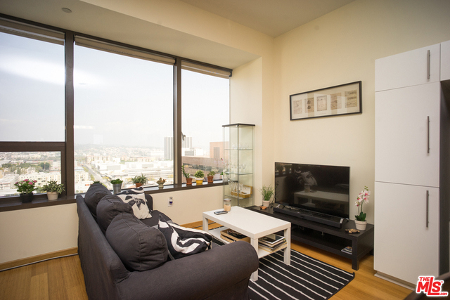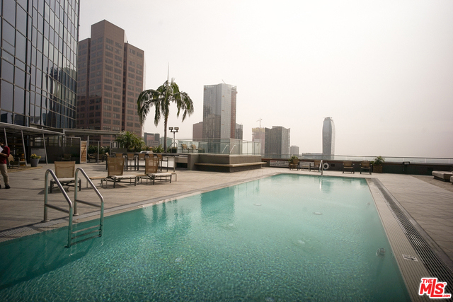 Downtown LA is rich with various cultural attractions, world famous restaurants, theaters, entertainment hubs and so much more. This stunning 19th floor condo on Wilshire Blvd. has a great city view, easily accessible with large wall-to-wall windows. Huge windows, a high ceiling with recessed lights give the unit a grandiose and very open feeling. Granite adorns the kitchen filled with stainless steel appliances and is adjacent to the lofty living space, coupled with bamboo flooring. Elevated bedroom next to the living space comes with carpet flooring, a big walk-in closet. Beautifully designed bathroom is equipped with separate shower and tub. Detailed with granite counter tops and tile flooring. Comes with access to 17th floor Sky Deck; amenities include a large pool, spa, cabanas/lounge beds, fire pit, outdoor kitchen and a wonderful view of the city. 3rd floor houses a 24 hour, state-of-the-art gym and various conference rooms. 24 hour concierge service and full front desk service.