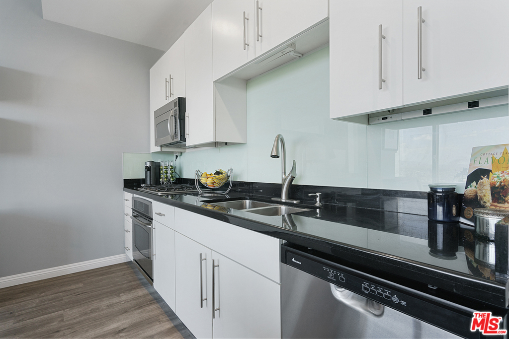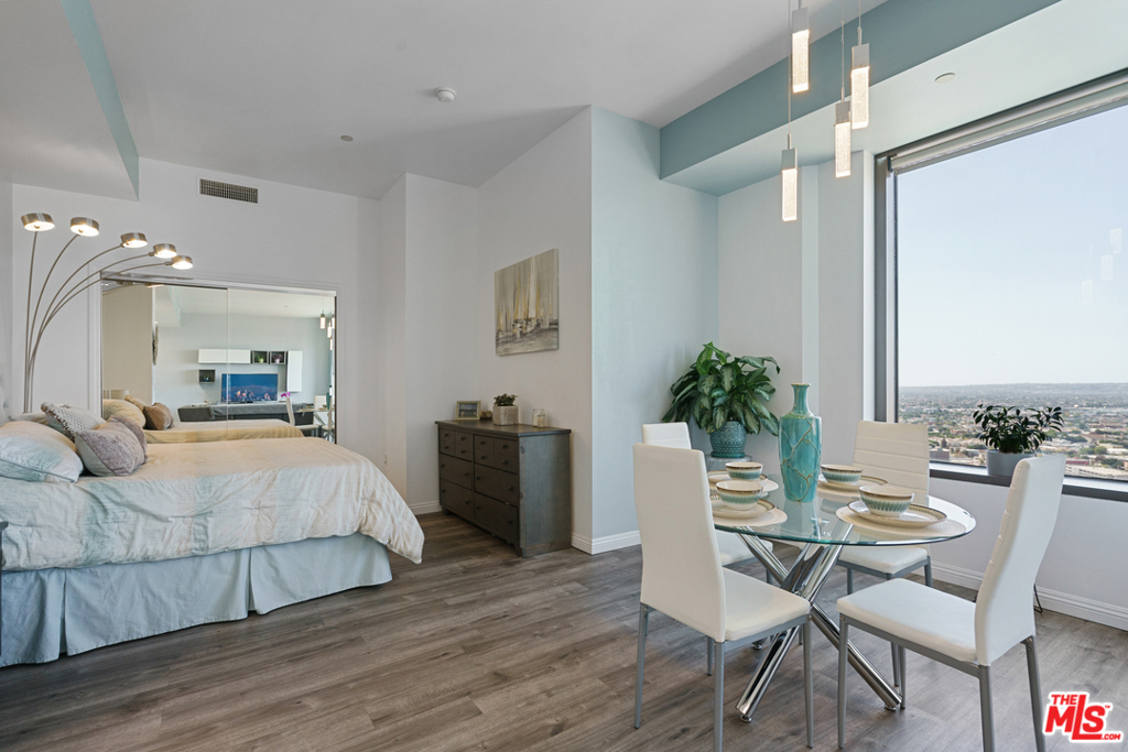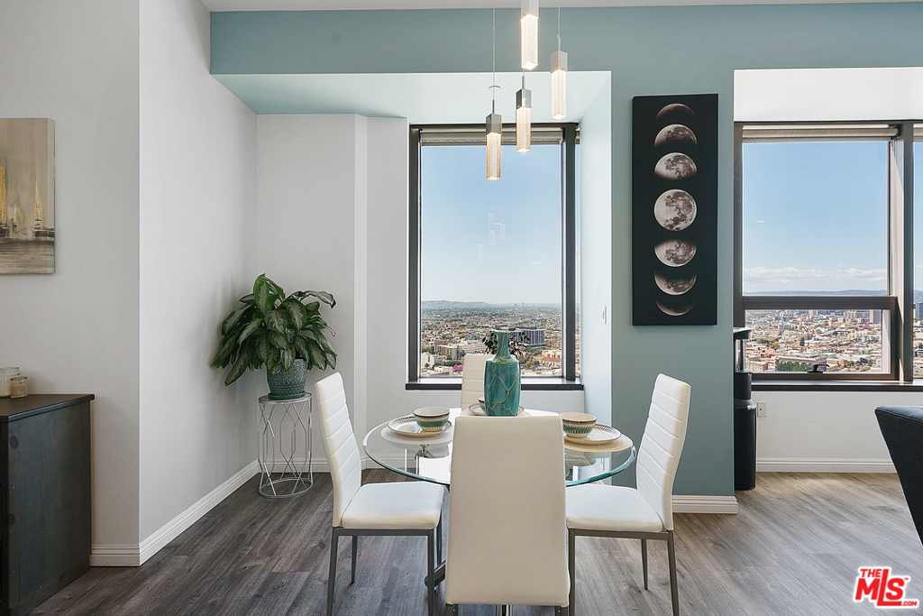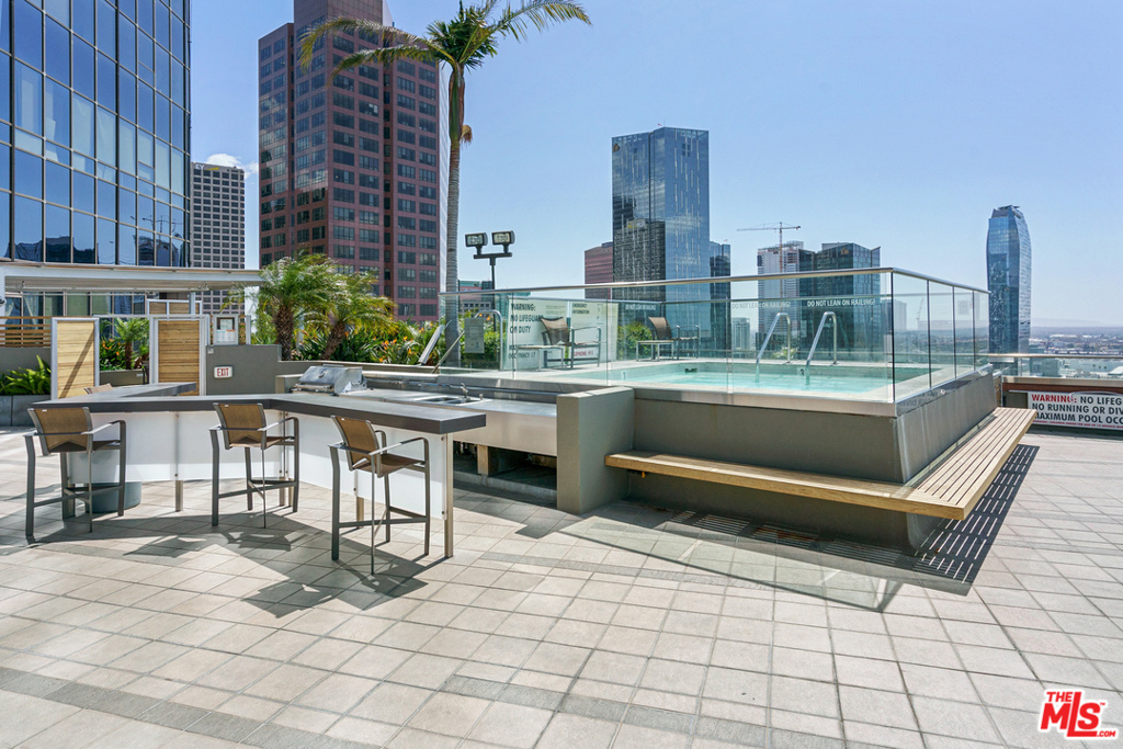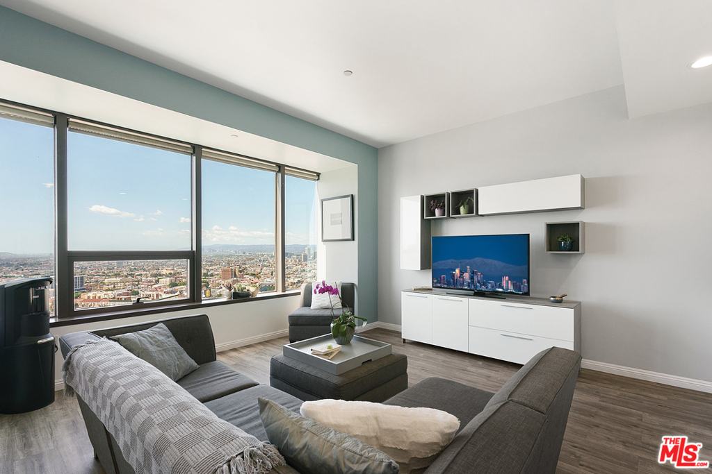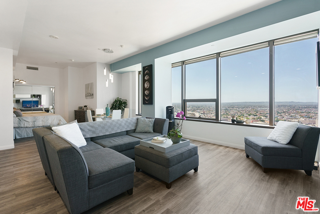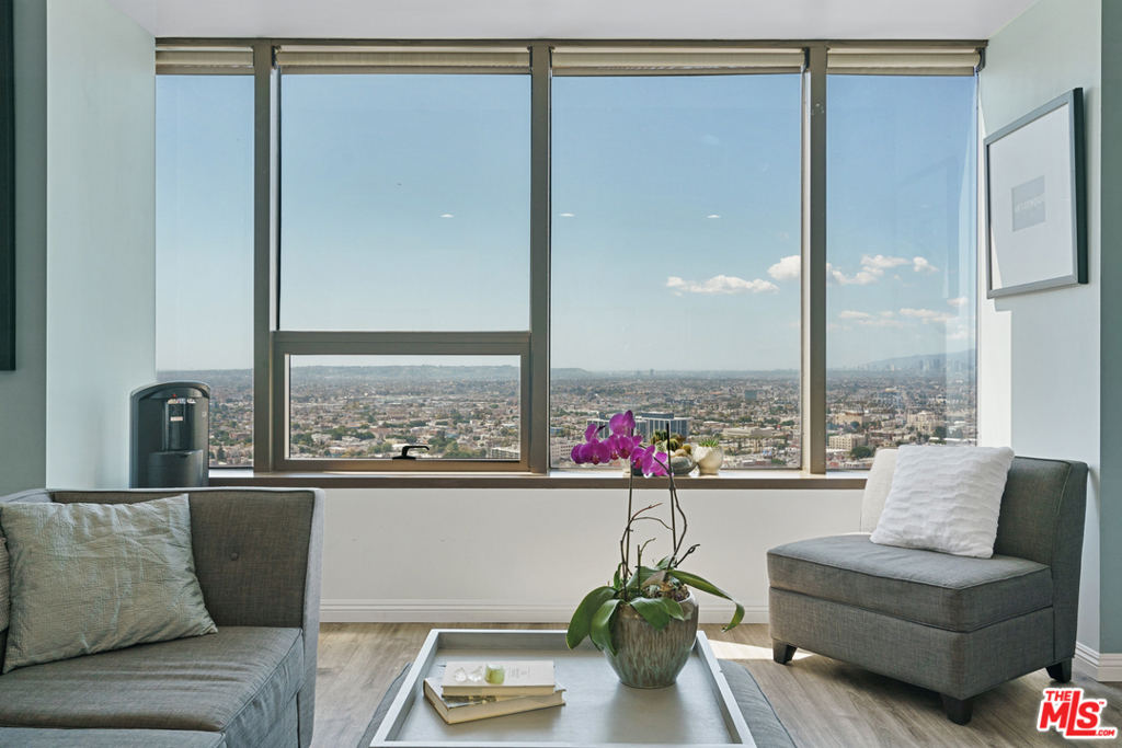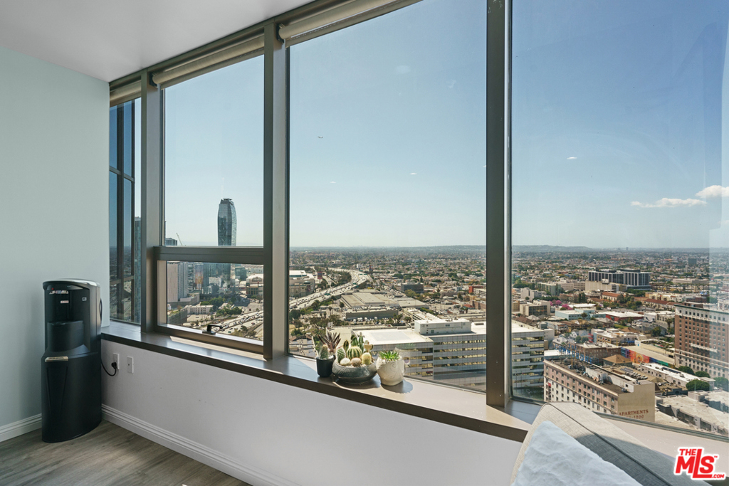 Enjoy city living twenty-two stories above downtown LA in a luxury condo! In addition to twelve feet high ceilings, granite countertops and stainless steel appliances, this condo stands out from the rest with newly installed premium waterproof vinyl plank flooring, combined with cork underlayment for comfort and low noise along with custom wood molding, as well as new custom sliding closet mirrors and premium easy-clean scuff-resistant paint that appears to change with the sun throughout the day. The condo comes equipped with USB charger wall outlets, and Google Nest-controlled air conditioning. Abundant natural light streams in from the large windows with sweeping vistas from the Hollywood Hills to the western edge of downtown LA, along with spectacular sunsets over LA out to the ocean. The view is accentuated with a resort-style heated infinity pool and spa on the 17th floor Skydeck, complete with cabanas, a fire pit, BBQ grills with a private dining area to take in uninterrupted panoramic views of LA with your guests. Other world-class amenities include 24-hour concierge and security, business center, on-site gym, private movie theatre with surround sound, two residential parking spaces and guest parking in a secure parking structure. Along with the convenient access to the 110/10/101 freeways in downtown LA, you can leave the car parked and enjoy an easy access to fine dining, shopping and entertainment at the Intercontinental Hotel, Fig at 7th, The Bloc and LA Live, and explore LA via the MetroRail system with a short walk to the 7th&Metro station. Truly one of the hidden gems of heavenly living in the City of Angels!