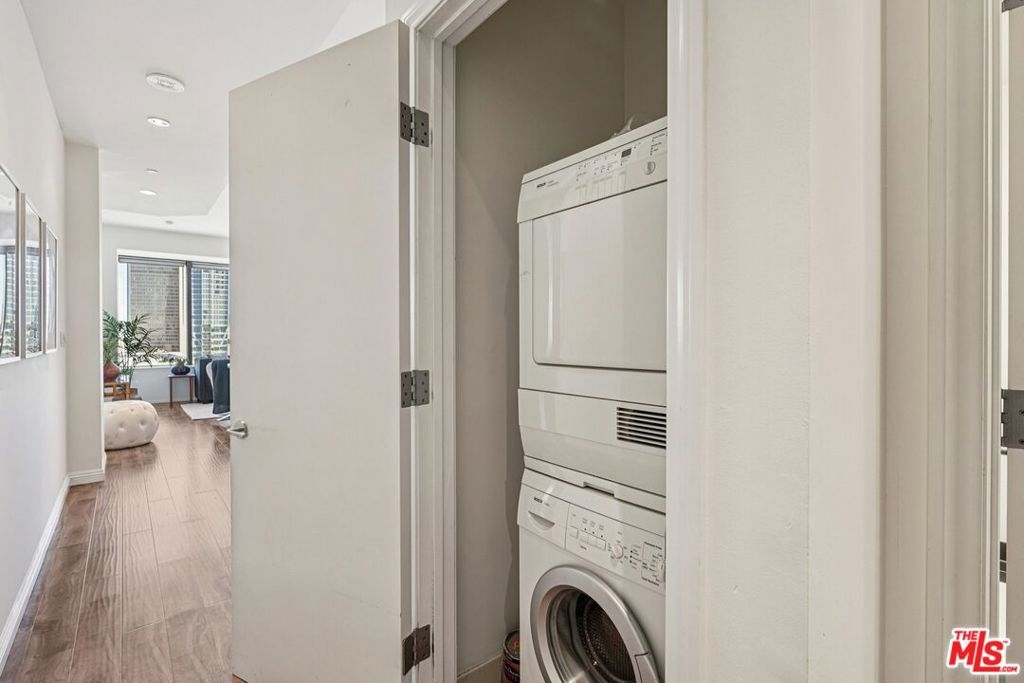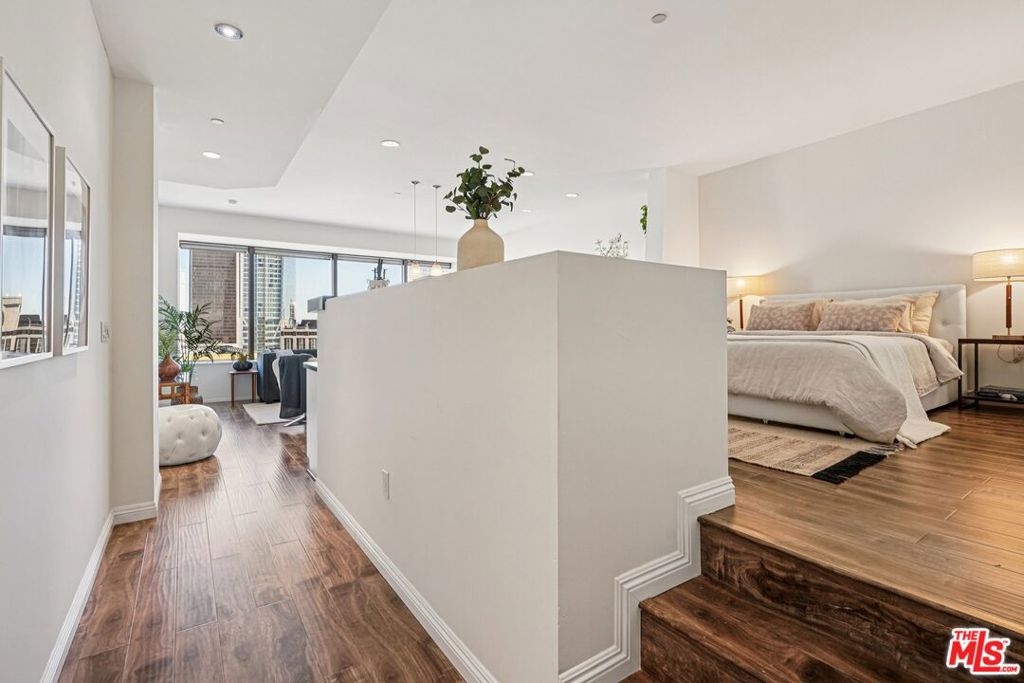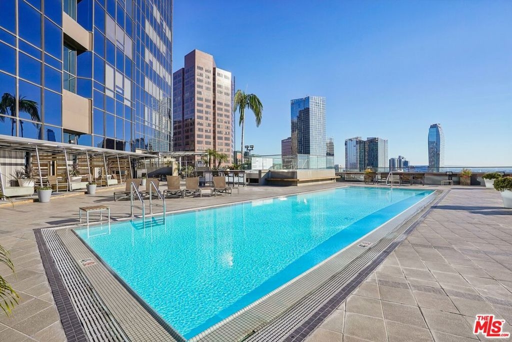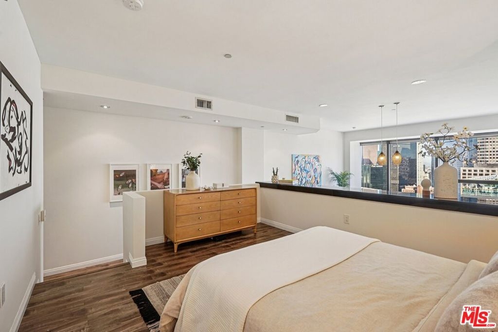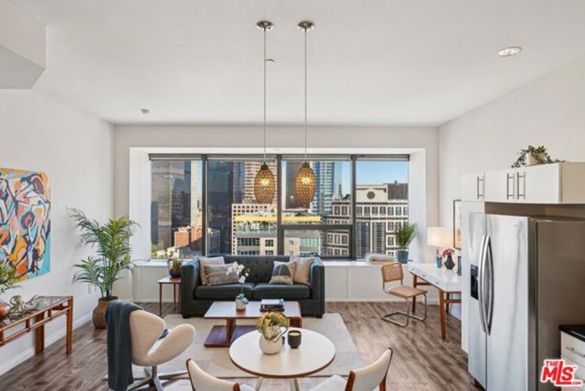 Residence #2209 captures a rare balance in Downtown LA. Expansive, light-filled living paired with a calm, curated aesthetic. A full wall of windows frames sweeping skyline views, bringing the city in while maintaining a sense of privacy above it all. Just beneath, a cleverly concealed window seat offers both additional storage and a quiet perch to take in the view. The open-concept layout flows effortlessly from living to dining to kitchen, anchored by warm wood flooring and softened by thoughtful staging that highlights both comfort and scale. The kitchen is sleek and functional, featuring stainless steel appliances, black stone counters, and clean-lined cabinetry that blends seamlessly into the living space. The bedroom retreat offers a quiet separation with a soft, elevated feel. Clean lines, neutral tones, and layered textures create a home that feels both modern and inviting. Ideally positioned at the intersection of Downtown's Financial District and South Park, you're moments from Whole Foods, LA Live, restaurants, coffee spots, and the pulse of city living. Residents enjoy one of Downtown's most iconic addresses, known for its dramatic architecture and resort-style amenities. Imagine a 17th-floor pool deck with a spa, cabanas, an outdoor dining area, BBQ grills, and a pet park, all offering panoramic views of Los Angeles and beyond. A home that feels intentional, effortless, and distinctly above it all awaits you.