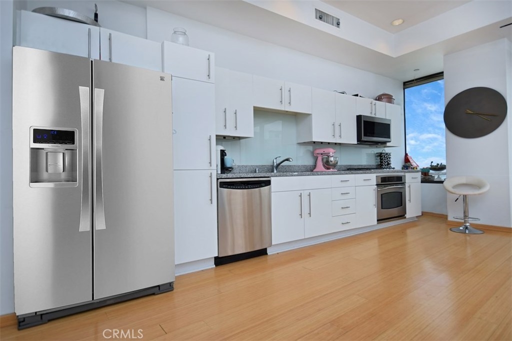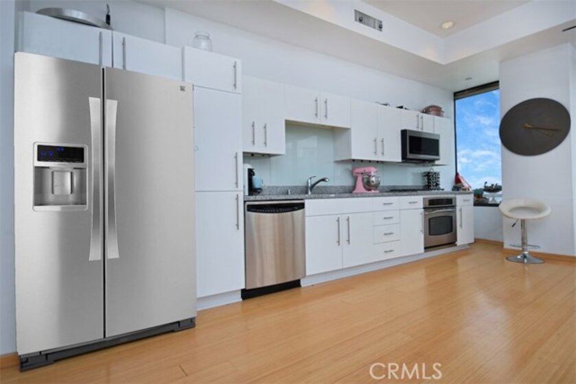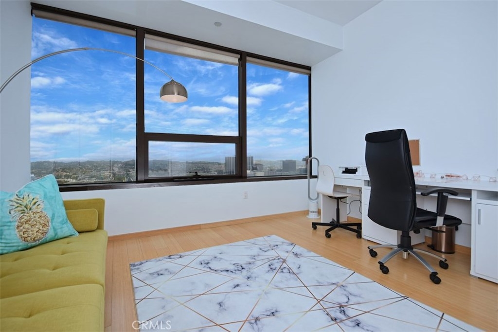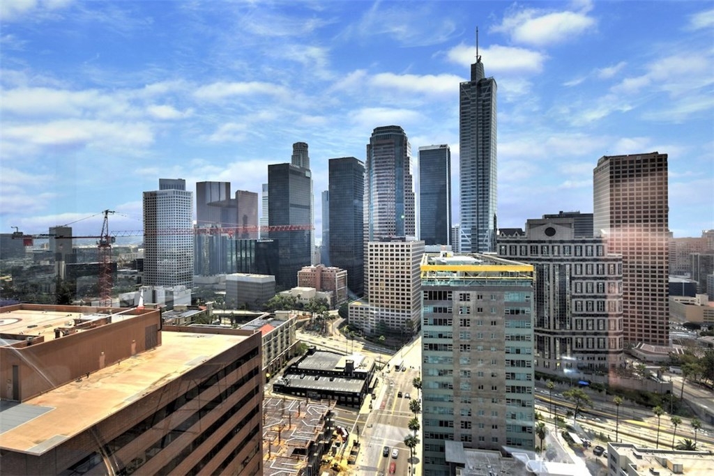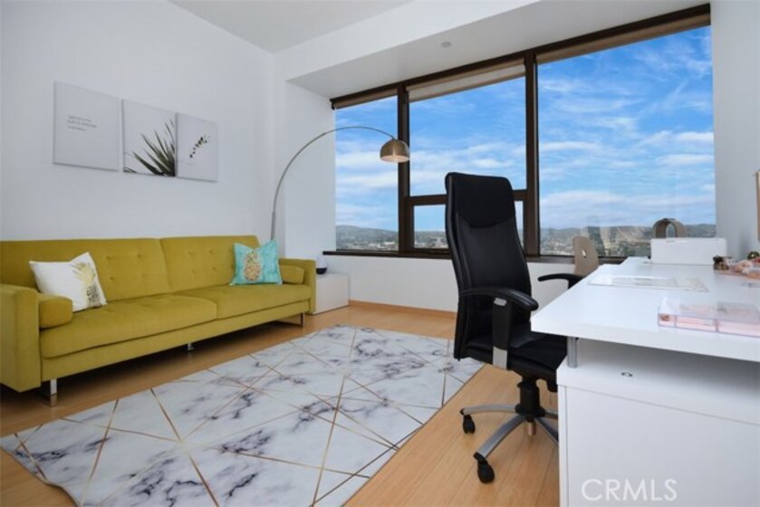 Located in the heartbeat of Los Angeles on the 26th floor of this 37 story blue glass triangle building is this open concept, modern loft with panoramic, unobstructed views of the city. The open concept living space includes hardwood flooring throughout, 2 spacious bedrooms, 2 bathrooms, and an updated modern kitchen. As a corner unit unobstructed views are enjoyable from the panoramic windows in every room. The sheik building has boundless amenities that include and not limited to, 24-hour security, a sky deck with pool and spa, cabanas, health club, business center, media theater room, covered and gated parking, and secured access elevators. Just minutes from the Staples center and LA live the convenience and style of this location has it all. Also available for lease at $5000 a month.