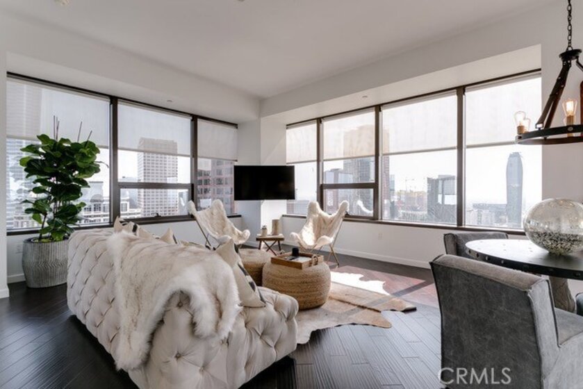 This extremely coveted TWO bedroom LUXURY high rise condo on the 23th floor will impress. The interior features beautiful wood flooring, stainless appliances, washer and dryer units. With expansive views to the ocean, mountains and dramatic Downtown skyline. While it is true that there isn't a bad view in this building, if you want the most impressive views this unit has it. The location provides easy access to all Los Angeles venues, Staples Center, Dodger Stadium, Disney Concert Hall and Universal Studios. The floor plan is laid out so that all the square footage is usable with a very unique corner unit that allows for Jetliner views. The nearby metro will take you to Union Station, Pasadena, Long Beach, LAX, Hollywood and NoHo Arts District. The building is full service, featuring a sky deck with infinity pool, hot tub, fire pit, outdoor kitchens, cabanas, 24 hour security, fully equipped fitness center, business center and movie screening room. Unit is offered fully furnished.