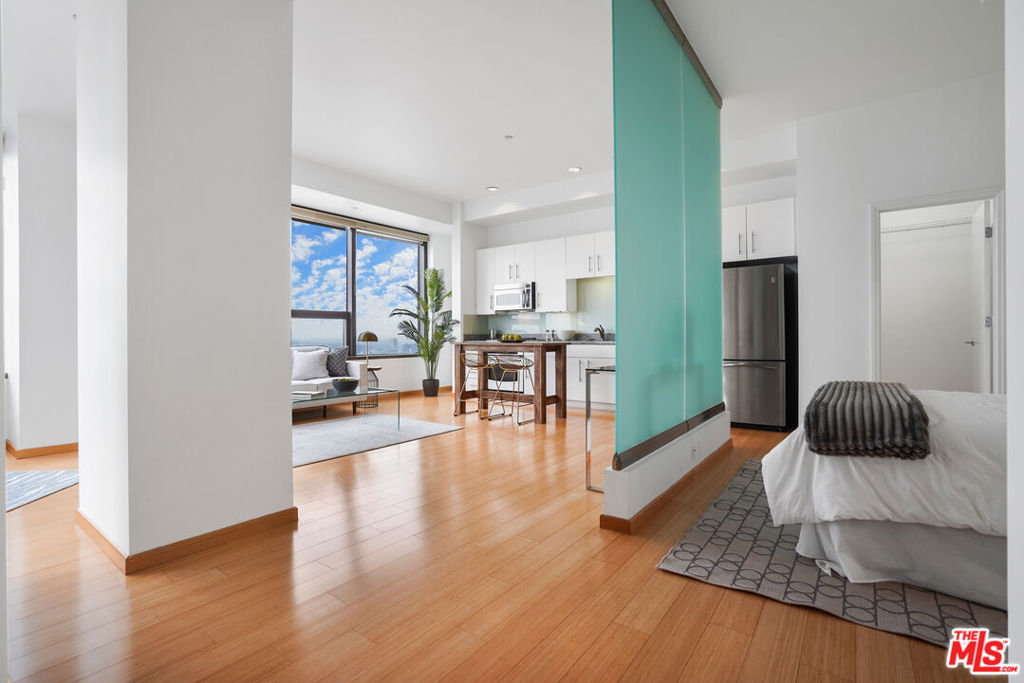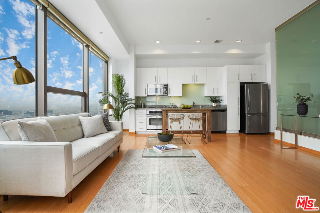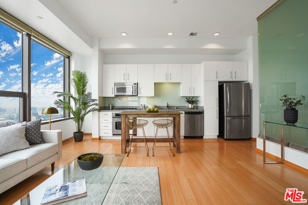 Live 29 stories above LA and enjoy front row seats to magnificent sunsets and panoramic vistas from your stunning home in the sky. This expansive open concept live/work space features a home office corner nook w/ jaw-dropping views, a modern kitchen w/ GE stainless steel appliances & granite counters, an open bedroom w/ glass wall & walk-in closet and a spacious bath w/ soaking tub, washer & dryer and room for additional storage closet. An amazing 17th floor SkyDeck offers a heated infinity pool, elevated spa, cabanas, lounge beds, wet bar, BBQ grill, seated fire pit cove and an outdoor dining patio. Additional amenities located on the 3rd level include a 24hr state-of-the-art fitness gym, a media room for private screenings and a conference/business center. 1100 Wilshire, a distinguished high-rise condo in DTLA is known for its opulent grand lobby and is located near world-class dining, shopping, entertainment and financial district. 2 parking spaces (1 is assigned) are included.