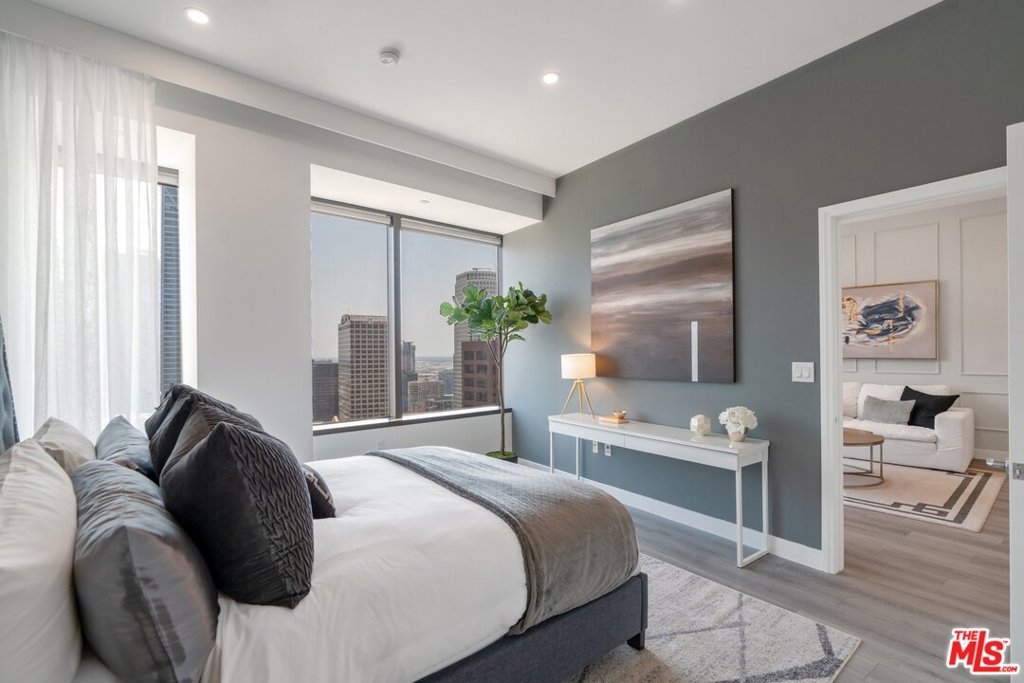 Welcome home to your urban oasis in the sky! This beautifully remodeled 32nd floor luxury live/work condo features 2 private bedrooms, 2 full baths and stunning Downtown skyline views. A work from home dream come true for the new owner. Entertain in style in your open concept kitchen with a large waterfall island and living room with lots of natural light. The spacious master bedroom features a walk-in closet and a spa-like bath with soaking tub, separate frameless glass shower and dual vanity. Upgrades include new quartz countertops, custom kitchen island, new vinyl flooring, recessed lighting throughout, new light fixtures, nest smart thermostat, new kitchen and bath faucets, and loft room fully enclosed with wall and door. An in-unit washer/dryer and 2 parking complete this fabulous residence. 1100 Wilshire offers an amazing 17th floor Sky Deck with heated infinity pool, elevated spa, cabanas & lounge beds, BBQ grill, wet bar, seated fire pit cove and private event space. A decked-out fitness center, media/ screening room, business center, 24-hour front desk attendant, convenient location near world-class dining, financial district, Staples Center, LA Live, 7th@ Fig and The BLOC complete your amenity rich Downtown LA lifestyle.