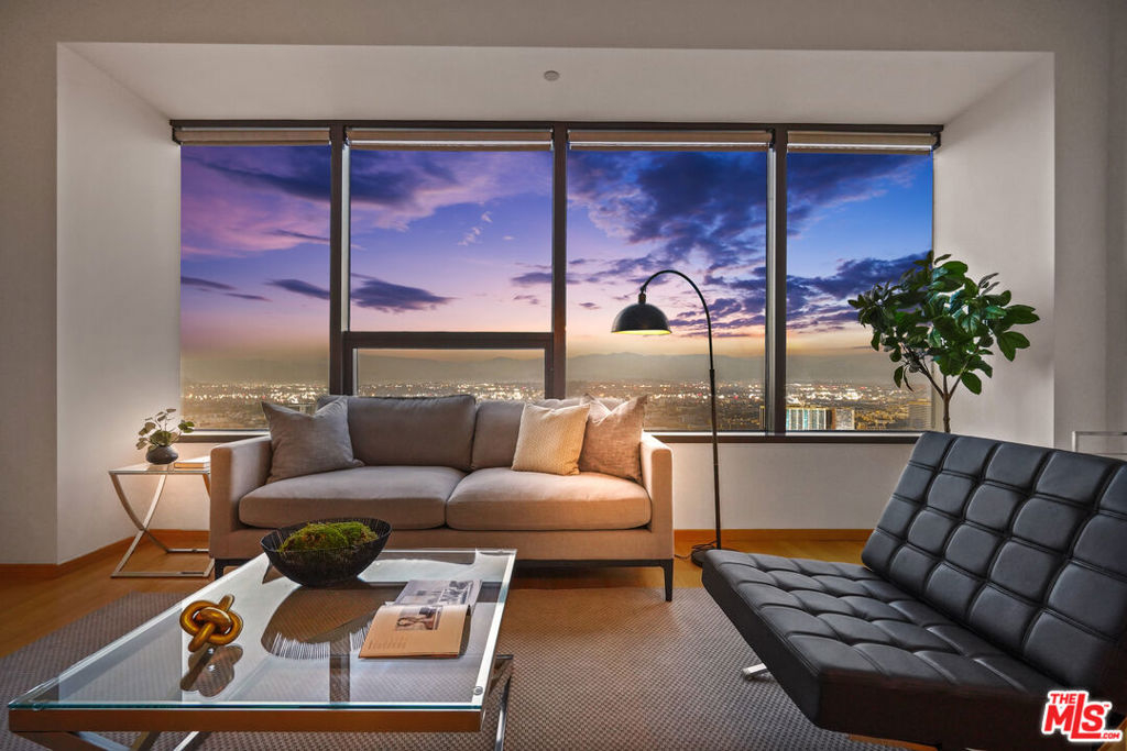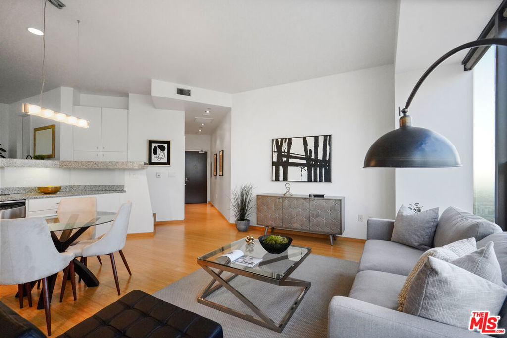 Stylish comfort and functionality describe unit #3503, a chic city condo in DTLA's coveted high-rise, 1100 Wilshire. Panoramic views from the Hollywood sign to DTLA's impressive skyline welcome you to this open-concept layout featuring a spacious living and dining area, a modern kitchen offering stainless steel appliances and ample granite countertops. An elevated bedroom w/ 2 walk in closets, a bath w/ soaking tub and washer/dryer closet complete this home in the sky. 1100 Wilshire offers an unparalleled amenity deck on the 17th floor w/ swimmer's pool, spa, fire pit, private outdoor dining area, cabanas, BBQ grills, state-of-the-art fitness gym, a conference room, a private screening room, a fabulous lobby, a 24 hr. attended front desk and guest parking. Enjoy everything DTLA has to offer from this central location, minutes from LA's financial district, fine dining, shopping and entertainment. 2 parking spaces are included with 1 reserved space on the 6th floor.