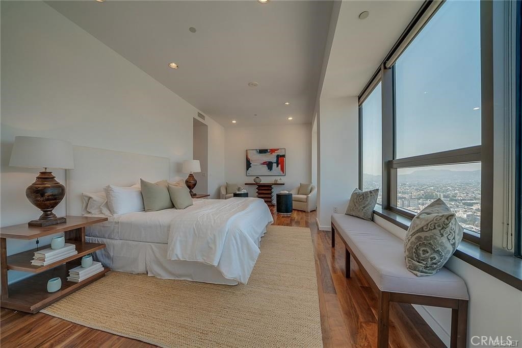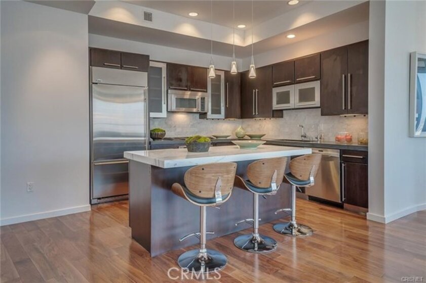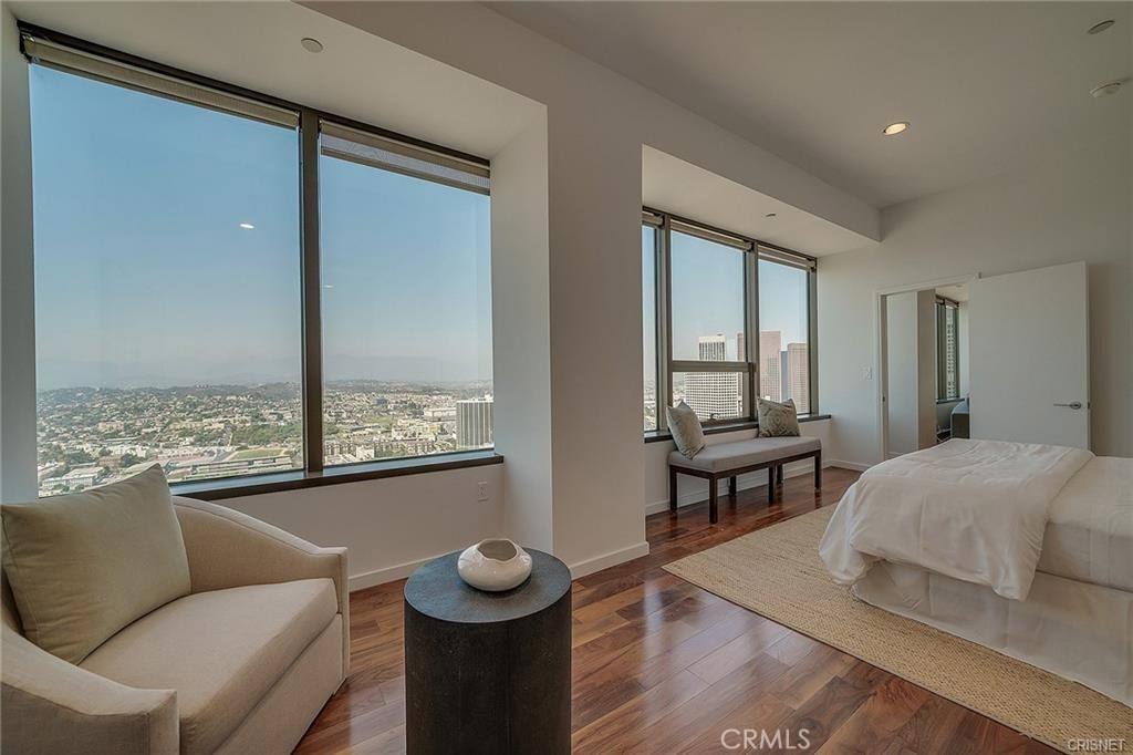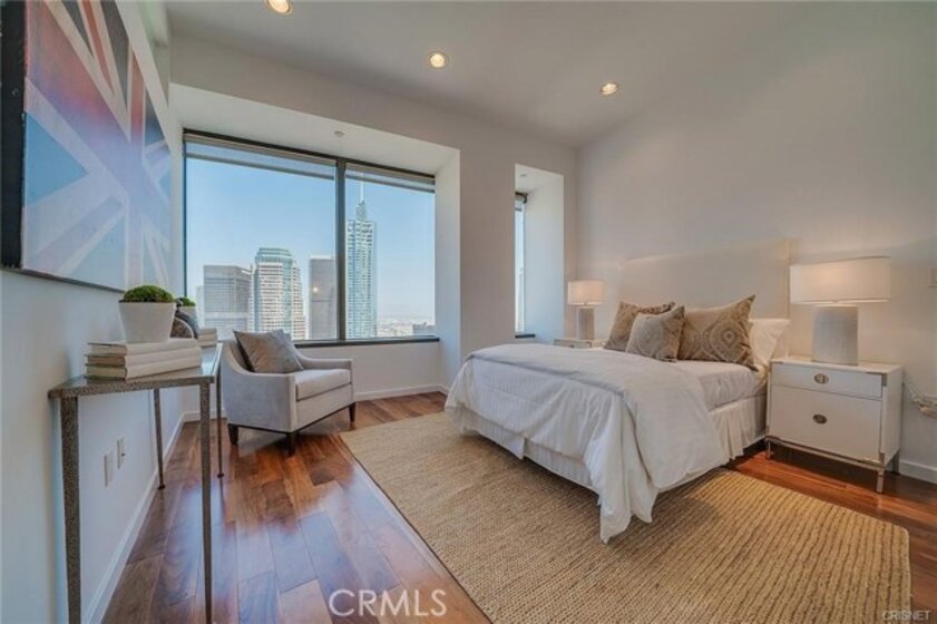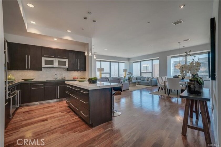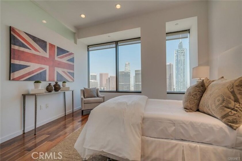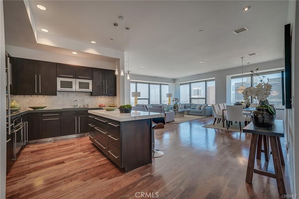 Exquisitely modern 2BD/2BA condominium located in a desirable neighborhood! This unit offers privacy with panoramic views of the city with an impressive 1,870 sq. ft. of upgraded space and comes with 3 deeded side by side parking space on the lower level and 1 deeded storage. As you step in, gorgeous hardwood flooring and high ceilings truly brighten up this already spacious room, while maintaining that cozy chic vibe with recessed lighting and ample amounts of large windows. Open kitchen features all modern designs with European cabinetry, stainless steel appliances, and an island for extra storage and sitting space. This floor plan flows nicely from room to room, providing a great space for entertaining your guests any time of the day. Luxurious master bedroom has great views of the city to start and end your day in, with a sitting area you could enjoy while you sip your cup of coffee. A large walk through closet is complete with built in shelves and a vanity space for your convenience. Master bathroom is your own spa with marble double sinks, a frameless stand-in shower, and a spacious soak-in tub. Second bedroom also features a large walk-in with built-in shelving. Guest bathroom features a steam shower. The complex is impressive in itself, featuring 24hr front desk security, fitness center, swimming pool with deck, a media room, and many more! Located nearby LA Live this condominium is an entertainer's dream to fully enjoy the amazing city life that DTLA has to offer!