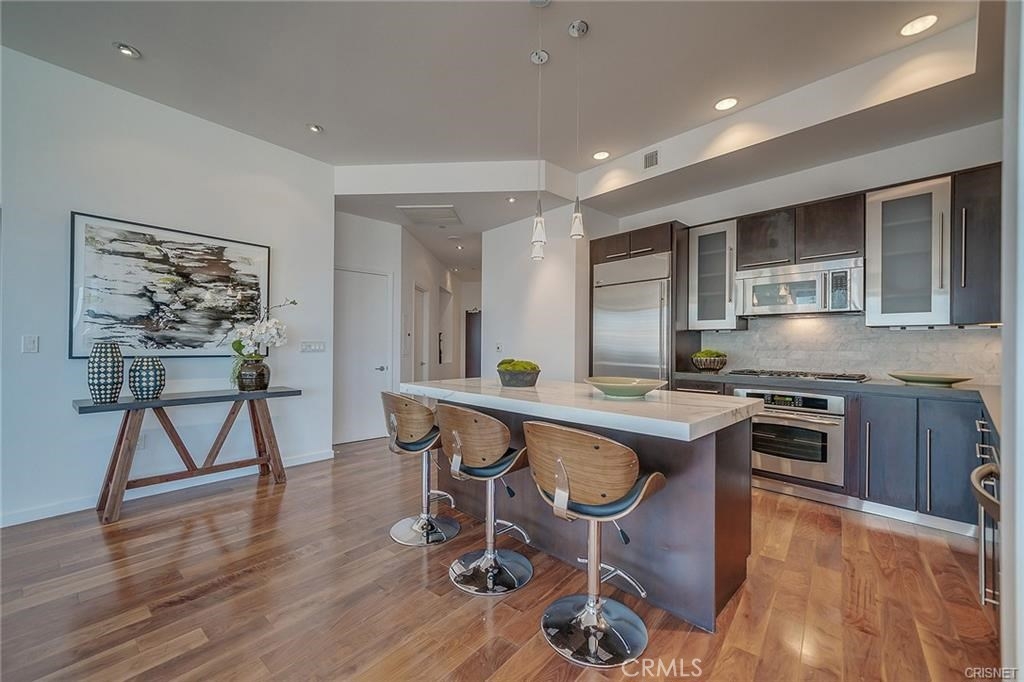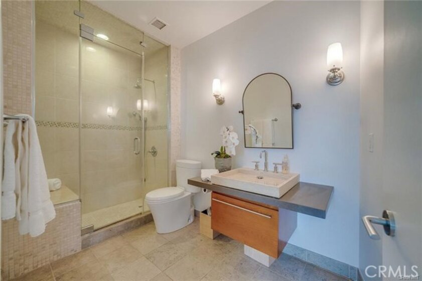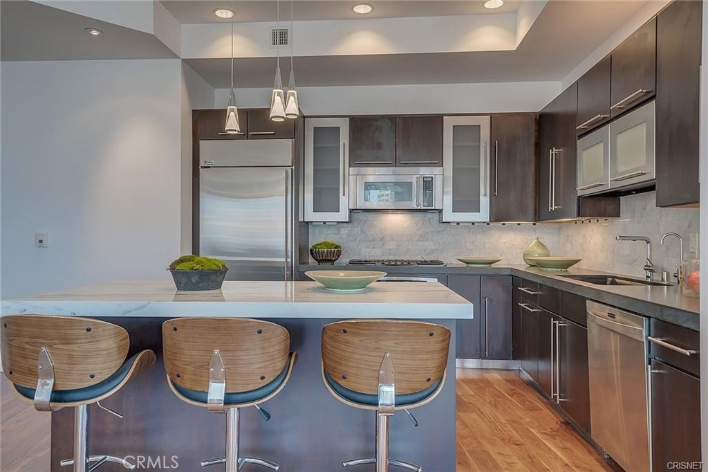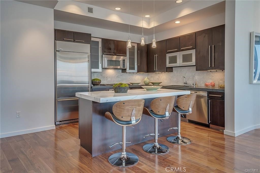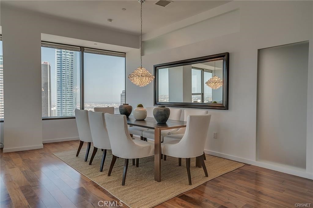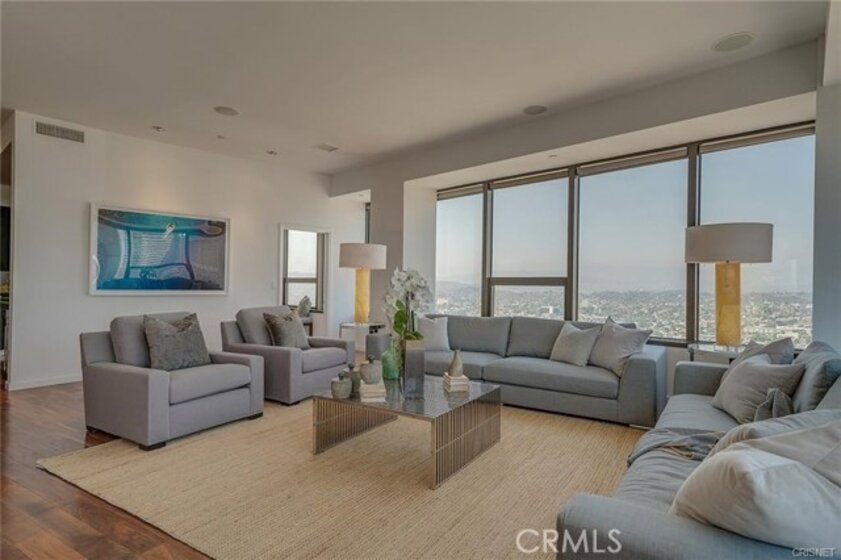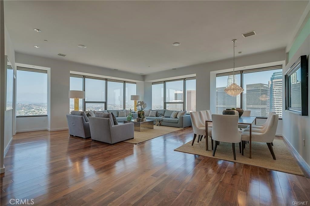 Exquisitely modern 2BD/2BA condominium located in a desirable neighborhood! This unit offers privacy with panoramic views of the city with an impressive 1,870 sq. ft. of upgraded space and comes with 3 deeded side by side parking space on the lower level and 1 deeded storage. As you step in, gorgeous hardwood flooring and high ceilings truly brighten up this already spacious room, while maintaining that cozy chic vibe with recessed lighting and ample amounts of large windows. Open kitchen features all modern designs with European cabinetry, stainless steel appliances, and an island for extra storage and sitting space. This floor plan flows nicely from room to room, providing a great space for entertaining your guests any time of the day. Luxurious master bedroom has great views of the city to start and end your day in, with a sitting area you could enjoy while you sip your cup of coffee. A large walk through closet is complete with built in shelves and a vanity space for your convenience. Master bathroom is your own spa with marble double sinks, a frameless stand-in shower, and a spacious soak-in tub. Second bedroom also features a large walk-in with built-in shelving. Guest bathroom features a steam shower. The complex is impressive in itself, featuring 24hr front desk security, fitness center, swimming pool with deck, a media room, and many more! Located nearby LA Live this condominium is an entertainer's dream to fully enjoy the amazing city life that DTLA has to offer!