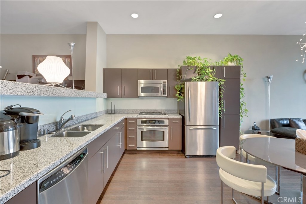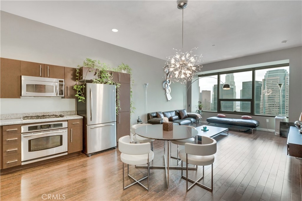 Come and enjoy the full-service amenities of the iconic 1100 Wilshire Building and live on 36 stories above DTLA with its stunning premier luxury high-rise views. The highly sought luxury unit includes a unique open floor plan combining kitchen, dining and living area where you can entertain in style with incredible views of Downtown skyline. The master bedroom is a sanctuary offering views, lavish bath with separate tub and shower, dual sinks and dressing area with vanity and walk-in closet. Elevated loft bedroom with walkin closet, modern kitchen with stainless stainless appliances , wood flooring, separate laundry room and 2 Premium Reserved Parking complete this impeccable home. Resort-style indoor-outdoor amenities include : 17th floor sky deck, infinity pool, elevated spa, cabanas, fire pit , & BBQ grills, loungers and private entertaining areas; 3rd floor includes fitness center and conference room, movie theater, and 24 hour attended lobby. Conveniently located near world class dining, fashion district, Staples Center, LA Live, Museums, USC, and many more LA iconic attractions.