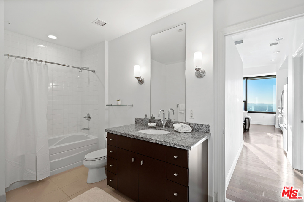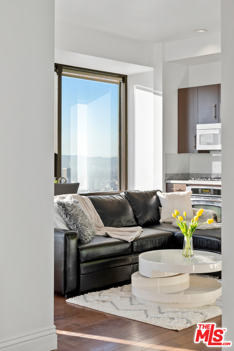 Live 36 stories above LA with front row seats to magnificent sunsets and revel in panoramic views from the expansive living, dining and open kitchen layout. A cozy nook can be transformed to work space, complete w/ an enviable backdrop. This home in the sky offers a modern kitchen w/ GE stainless-steel appliances, granite counters, a private bedroom, walk-in closet, an oversized bath w/ washer & dryer, upgraded wood floors and 2 parking spaces (1 reserved). Residents enjoy an amazing 17th floor Sky Deck featuring a heated infinity pool, elevated spa, cabanas & lounge beds, wet bar, BBQ grill, seated fire pit cove, outdoor dining patio, 24hr fitness center, media room, business center/conference room and 24-hour attended front desk. 1100 Wilshire is conveniently located near world-class dining, shopping, entertainment and DTLA's financial district.
