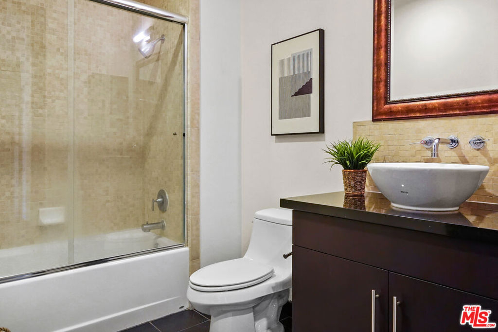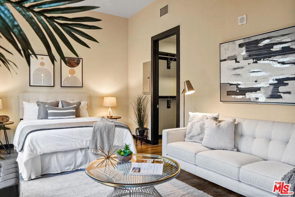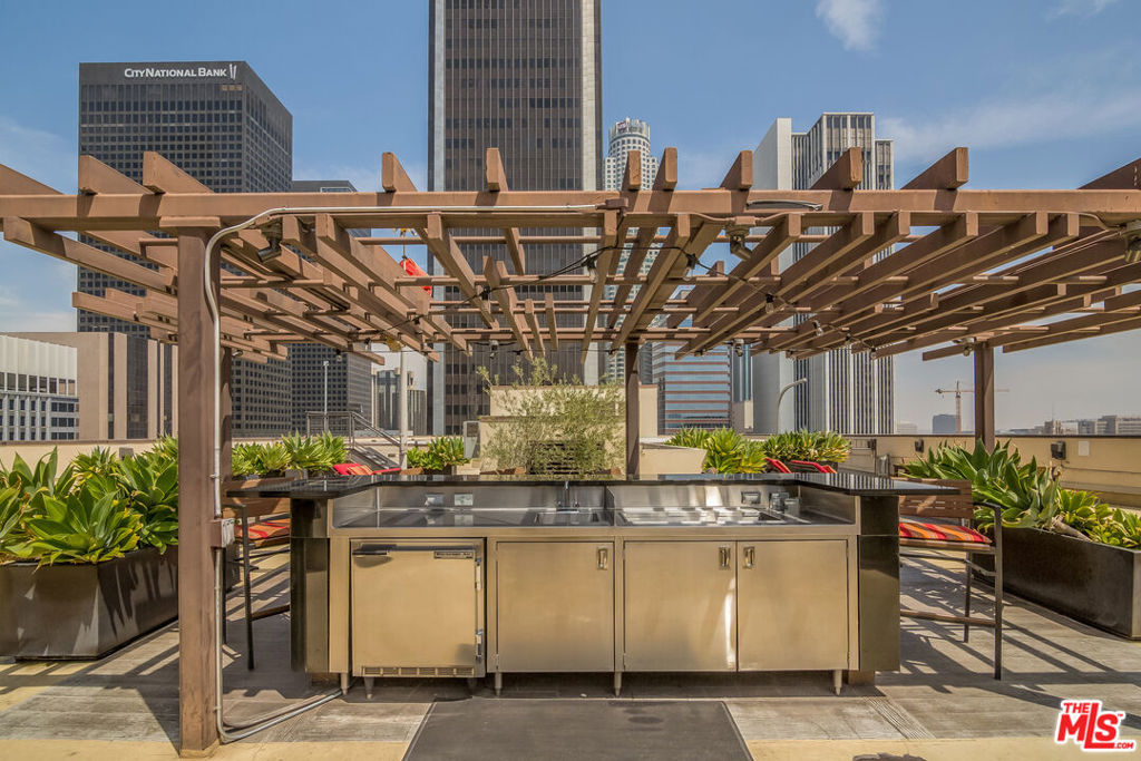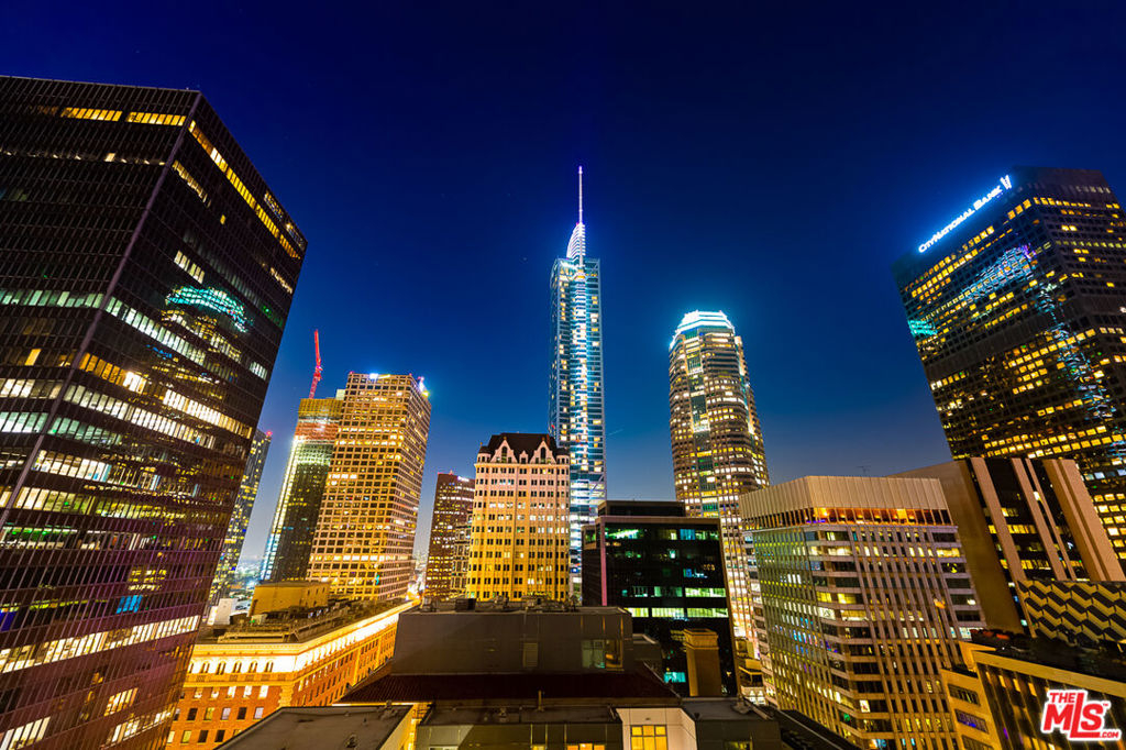 This stunning DTLA loft exudes modern elegance with its high-end interior finishes highlighted by floor to ceiling glass walls and views of the Union Oil Beaux-Arts building, an ever-changing cityscape and vibrant Hope & 7th below. A sleek kitchen design featuring dark wood cabinetry, granite countertops, glazed mosaic tile backsplash & stainless steel appliances including a 5-burner gas range delivers function and style. Wood floors throughout, a soothing full bath, large walk-in closet, in-unit washer & dryer and 1 parking space complete this cozy pied-a-terre. 655 Hope is an 80-unit boutique residence known for its timeless Art Deco exterior design. Modernized in 2008, it offers an impressive rooftop deck & lounge with jaw-dropping views of DTLA skyscrapers, a fitness center, community meeting/game room and 24-hr attended lobby. Live in the heart of DTLA's financial district, a few steps from fine dining, shopping, entertainment and transportation, including private access to 7th & Hope Metro station.