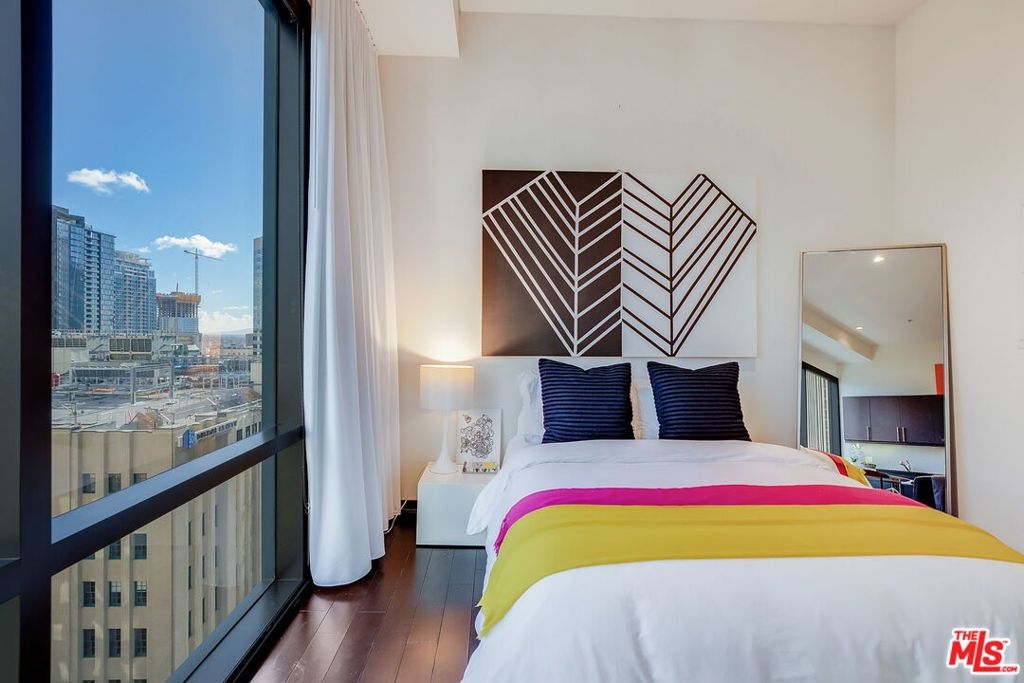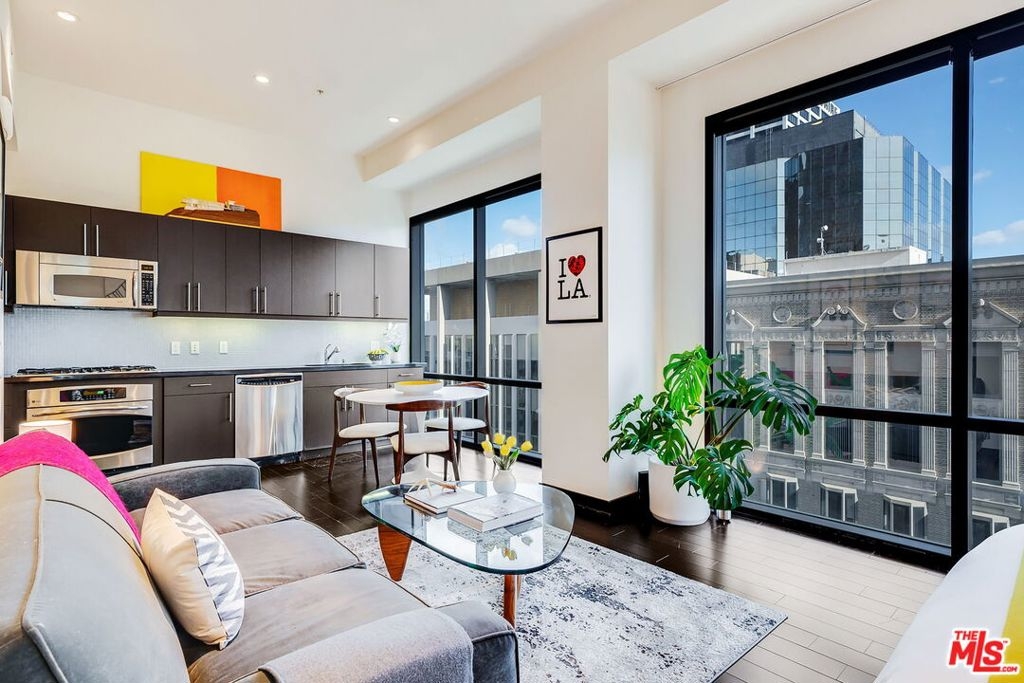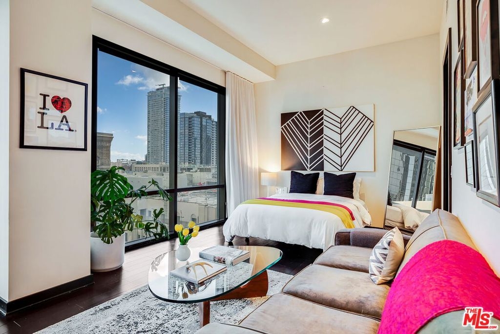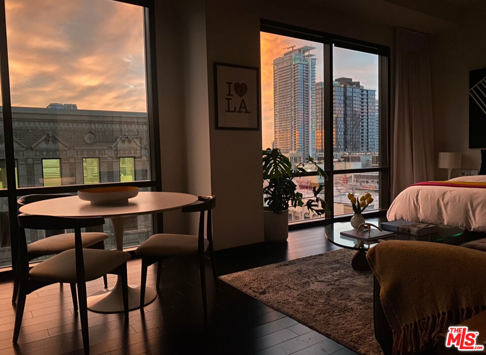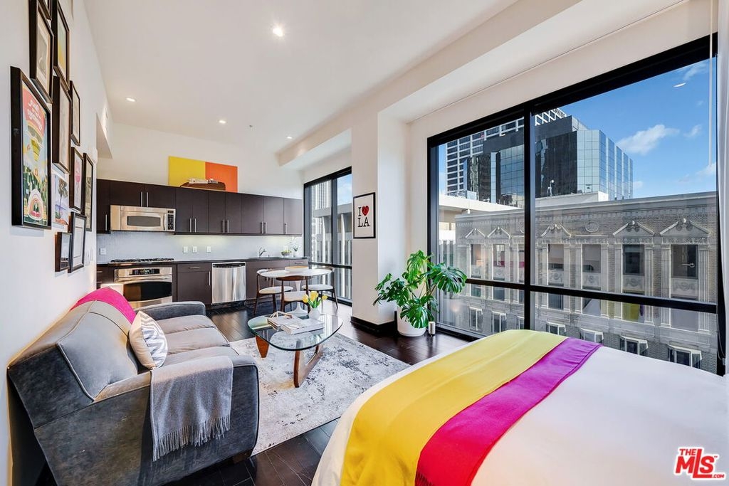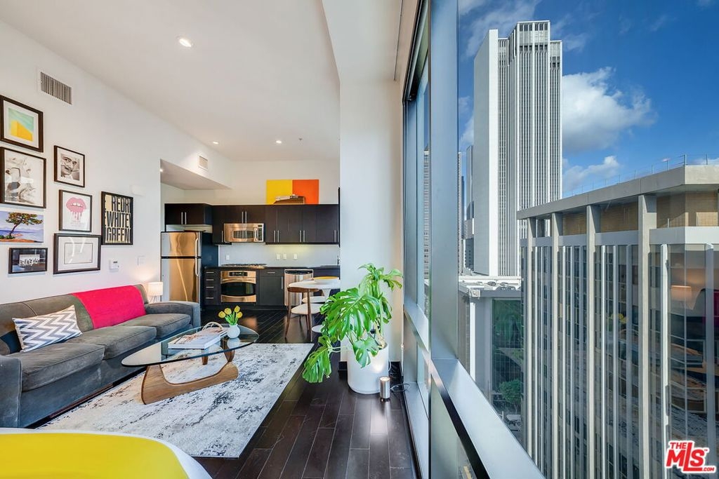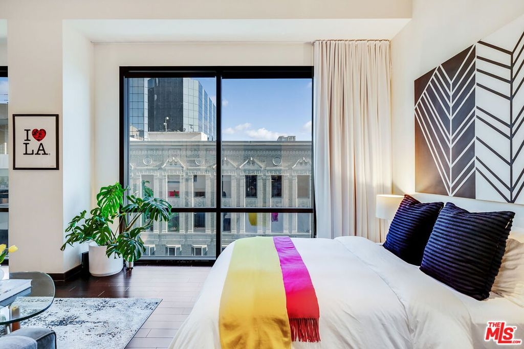 Downtown LA is set to be the center of the universe with the 2026 World Cup & 2028 Olympics coming soon! Experience the finest urban living in the heart of the LA Financial District. Hope Street Lofts is a boutique art deco condo building with only 80 units. Nestled on the 12th floor, the highly desirable end unit is a harmonious blend of modern elegance and urban sophistication. True urban dwelling with views of the bustling city down below. The open floor plan loft boasts floor-to-ceiling glass walls, 10-foot ceilings and warm dark hardwood floors. Natural light emanates throughout. The sleek kitchen features chocolate color cabinetry, granite countertops, stainless steel appliances with 5-burner gas cooktop. Upgraded lighting & a spacious walk-in closet and in suite washer/dryer are included! The building is protected by around-the-clock on-site security & includes a residence community center with pool table to unwind or entertain in. The building amenities include a wow-factor rooftop which provides breathtaking 360-degree panoramic views, sundeck, barbecue, a chic wet bar, a resident club room, gym with state of the art equipment and a helicopter pad. A true walker's paradise, where you won't be needing a car! Conveniently located directly above the 7th Street metro station with access to Hollywood, Culver City, Santa Monica & now Little Tokyo! This prime location is within steps from world class entertainment centers such as the Crypto.com Arena and LA Live. Across the street is shopping at the BLOC and Alamo Draft House Cinema! Culinary treats such as Bottega Louie and Little Sister are just a stone's throw away. The best shopping, dining & entertainment Downtown are within easy reach by foot or a quick subway ride away! Parking will never be an issue, as the unit comes with one unassigned parking space in an attached secure access garage. Downtown LA is undergoing an exciting redevelopment boom of luxury high-rise residences and hotels. Take advantage of living in one of the most coveted locations in Downtown LA!