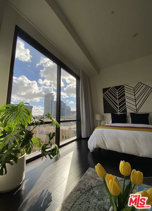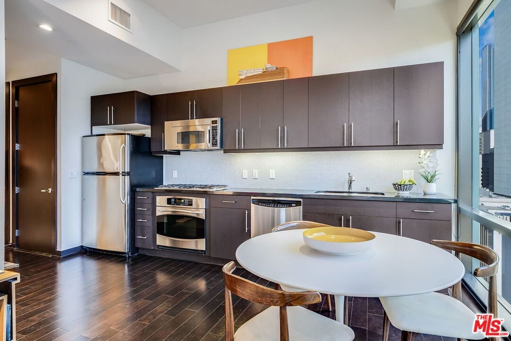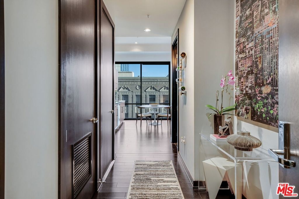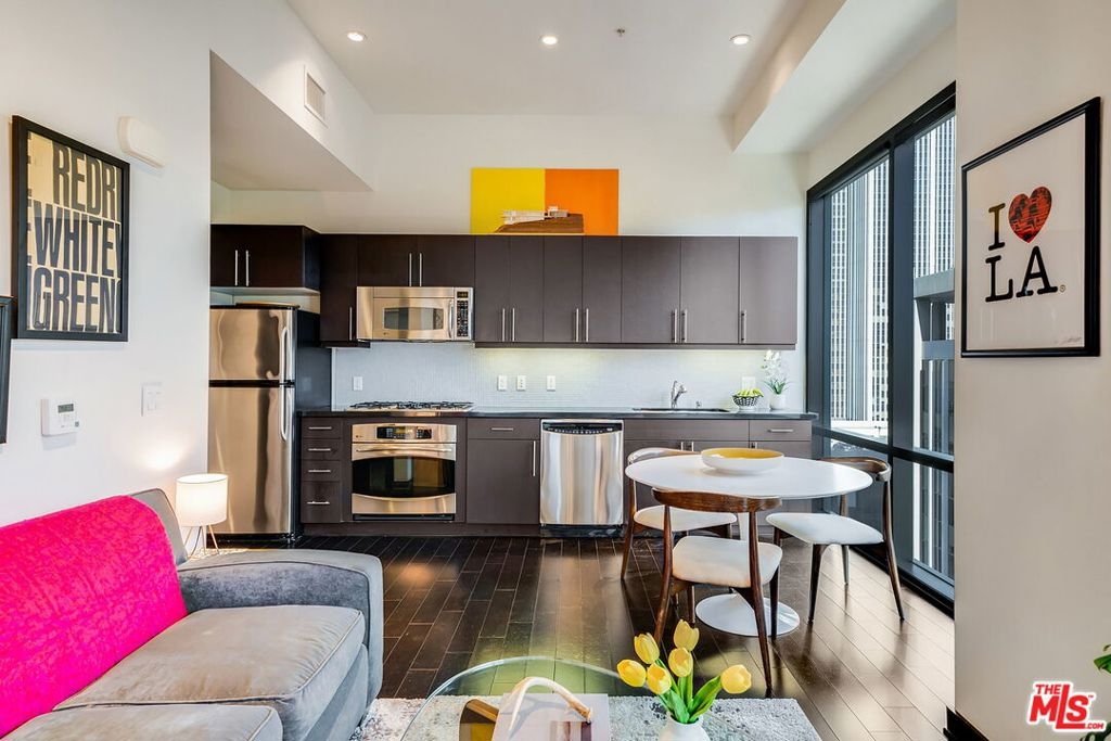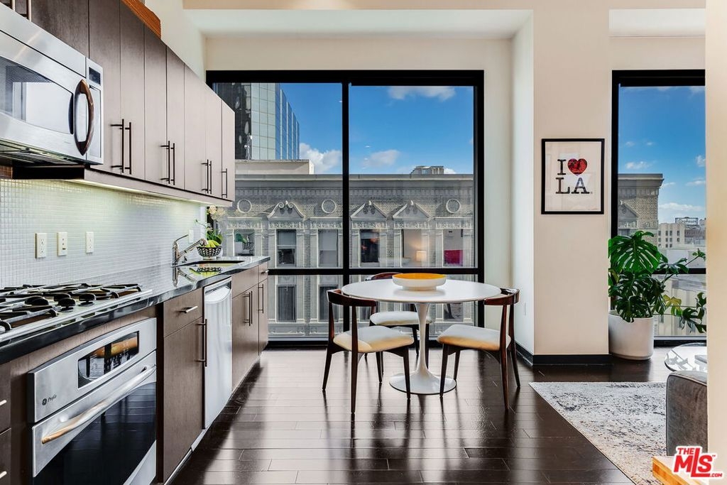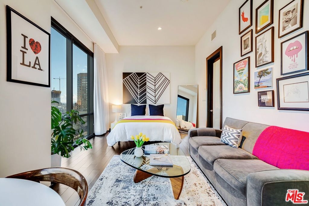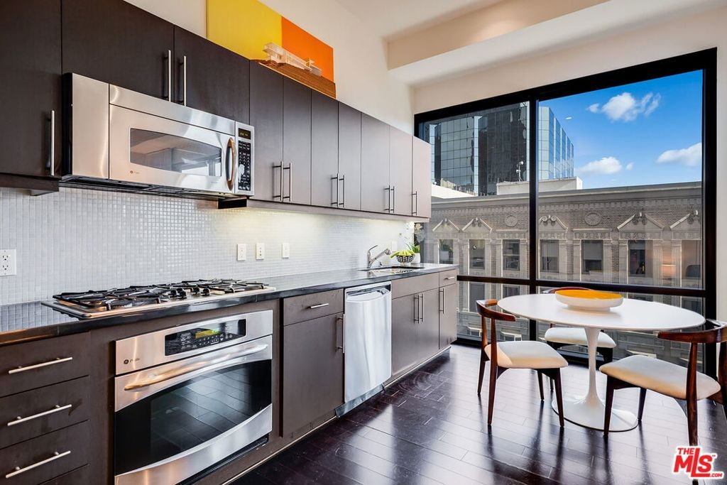 Downtown LA is set to be the center of the universe with the 2026 World Cup & 2028 Olympics coming soon! Experience the finest urban living in the heart of the LA Financial District. Hope Street Lofts is a boutique art deco condo building with only 80 units. Nestled on the 12th floor, the highly desirable end unit is a harmonious blend of modern elegance and urban sophistication. True urban dwelling with views of the bustling city down below. The open floor plan loft boasts floor-to-ceiling glass walls, 10-foot ceilings and warm dark hardwood floors. Natural light emanates throughout. The sleek kitchen features chocolate color cabinetry, granite countertops, stainless steel appliances with 5-burner gas cooktop. Upgraded lighting & a spacious walk-in closet and in suite washer/dryer are included! The building is protected by around-the-clock on-site security & includes a residence community center with pool table to unwind or entertain in. The building amenities include a wow-factor rooftop which provides breathtaking 360-degree panoramic views, sundeck, barbecue, a chic wet bar, a resident club room, gym with state of the art equipment and a helicopter pad. A true walker's paradise, where you won't be needing a car! Conveniently located directly above the 7th Street metro station with access to Hollywood, Culver City, Santa Monica & now Little Tokyo! This prime location is within steps from world class entertainment centers such as the Crypto.com Arena and LA Live. Across the street is shopping at the BLOC and Alamo Draft House Cinema! Culinary treats such as Bottega Louie and Little Sister are just a stone's throw away. The best shopping, dining & entertainment Downtown are within easy reach by foot or a quick subway ride away! Parking will never be an issue, as the unit comes with one unassigned parking space in an attached secure access garage. Downtown LA is undergoing an exciting redevelopment boom of luxury high-rise residences and hotels. Take advantage of living in one of the most coveted locations in Downtown LA!