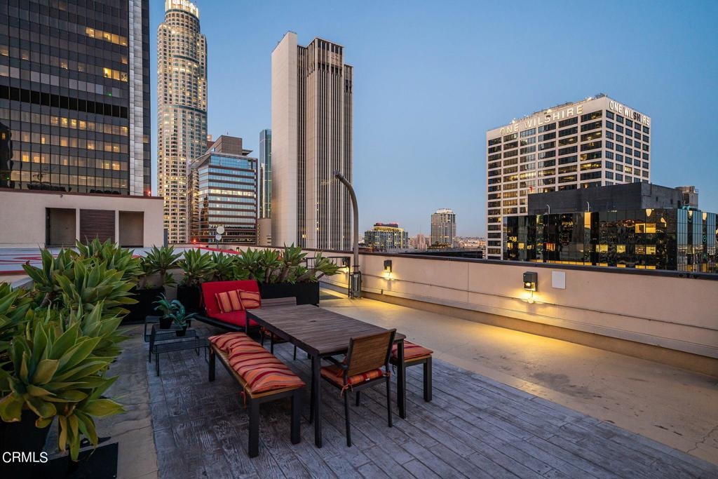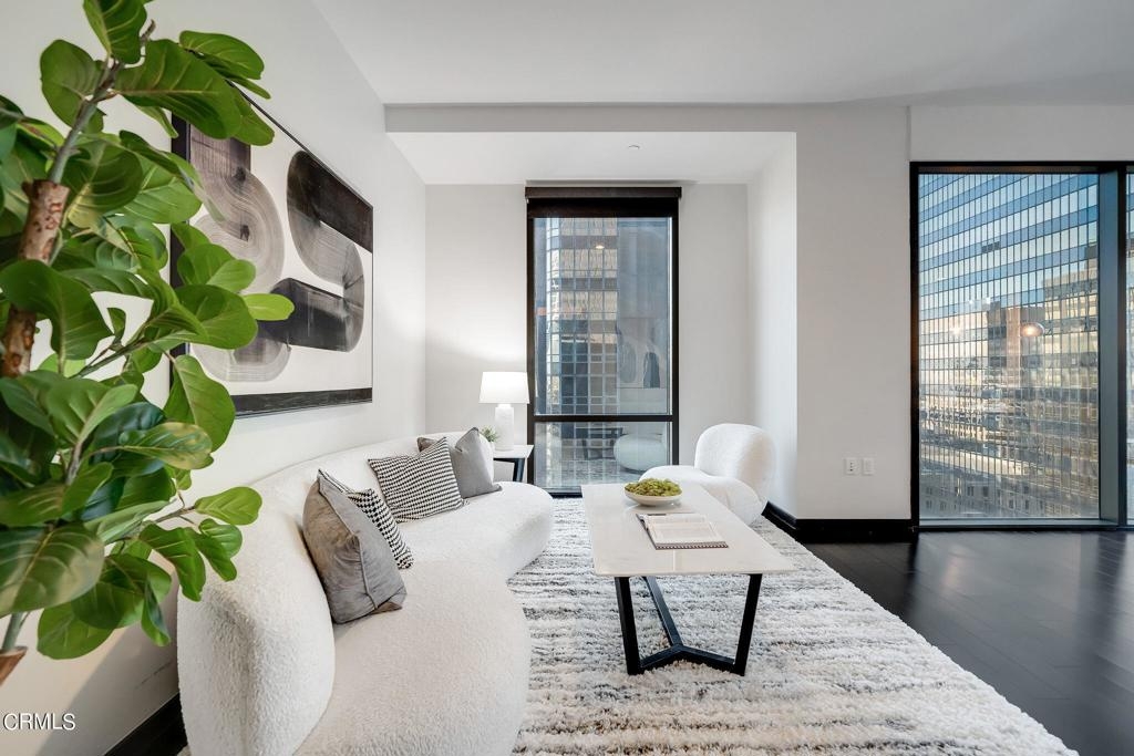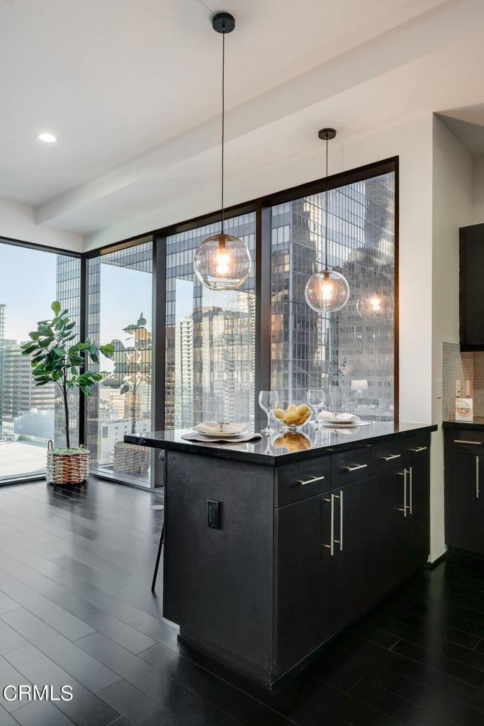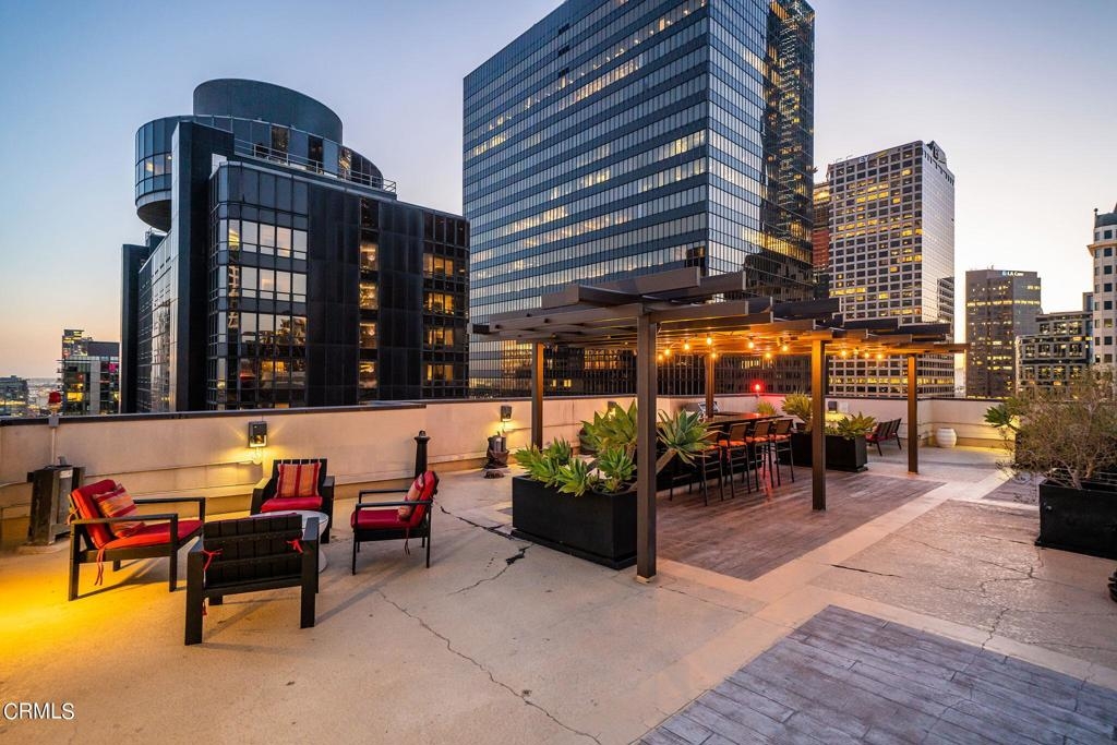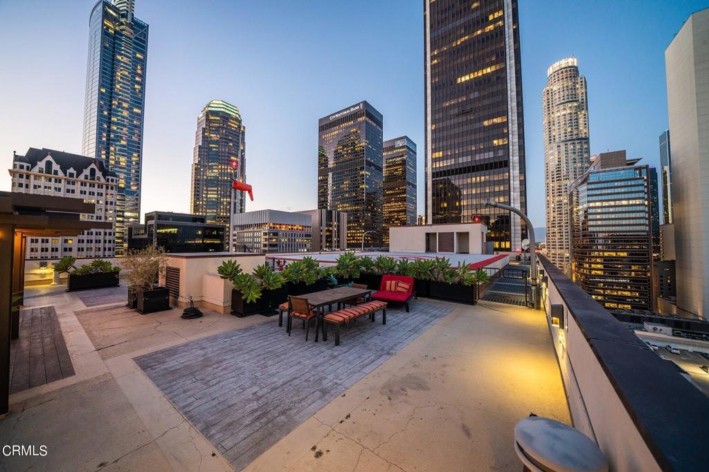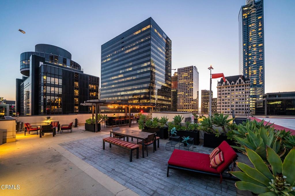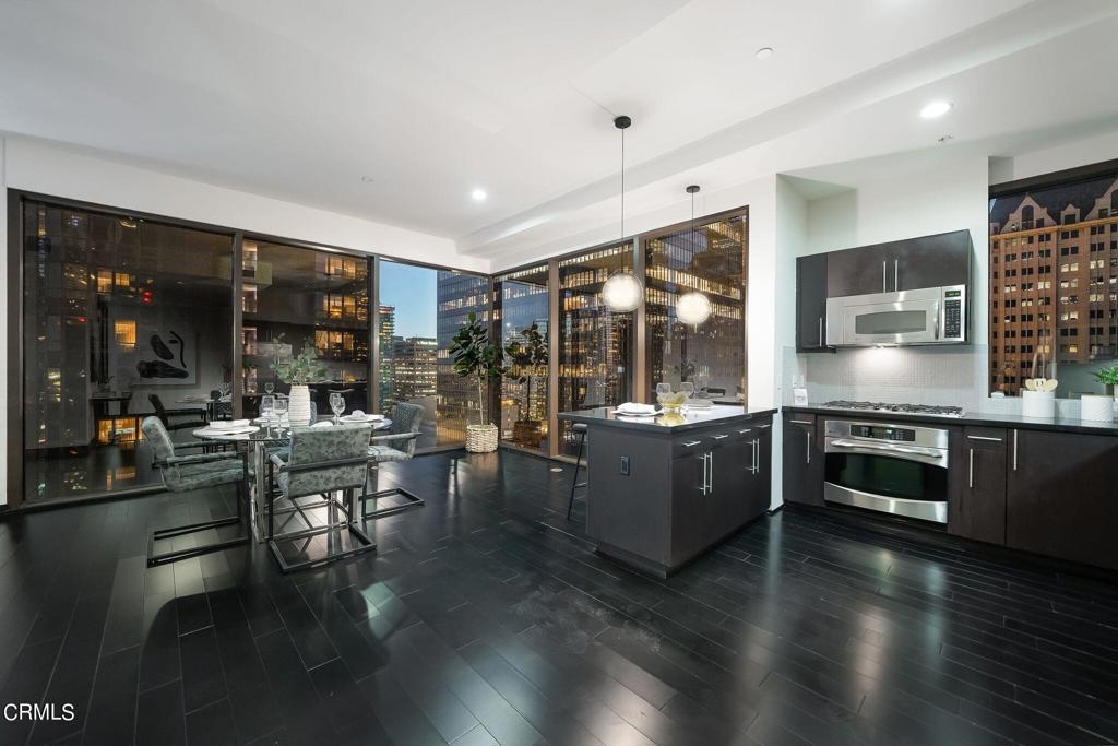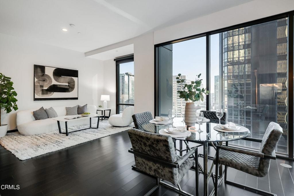 655 S. Hope Street #1705 is a modern Los Angeles condominium, featuring two bedrooms, two ensuite bathrooms and 1,080 square feet of living space polished to perfection. Located in the Financial District, the sophisticated penthouse puts the city on display with floor-to-ceiling windows throughout. An open floor plan layout creates airy spaces, 10-foot ceilings soar overhead and skyline and city views--including of the Wilshire Grand--are visible from each room.The living room has comfortable seating, neighbored by an elegant dining area--a perfect space to entertain amidst incredible views. The sleek kitchen includes stainless steel appliances, a gas range, an oversized breakfast bar and pendant lights. The primary suite provides a spacious walk-in closet with custom shelves and a luxe bathroom with a dual vanity and mosaic tile. A stacked washer and dryer add ease.Abundant building amenities include 24/7 security and concierge, a rooftop sundeck, barbecue, a chic bar with panoramic downtown views, a resident club, playroom, gym and a helicopter pad. Residents will have a dedicated 60-square-foot storage area in the basement and one parking space included on their title. Located directly above the 7th Street metro station, enjoy a prime location moments from the Staples Center, LA Live, the Wilshire Grand, Bottega Louie, Alamo Draft House, LA Athletic Club and other restaurants, bars and coffee shops. Undergoing an exciting development boom of luxury high-rises and hotels, this area is a hot spot to live, work and play. Welcome to exquisite city living.