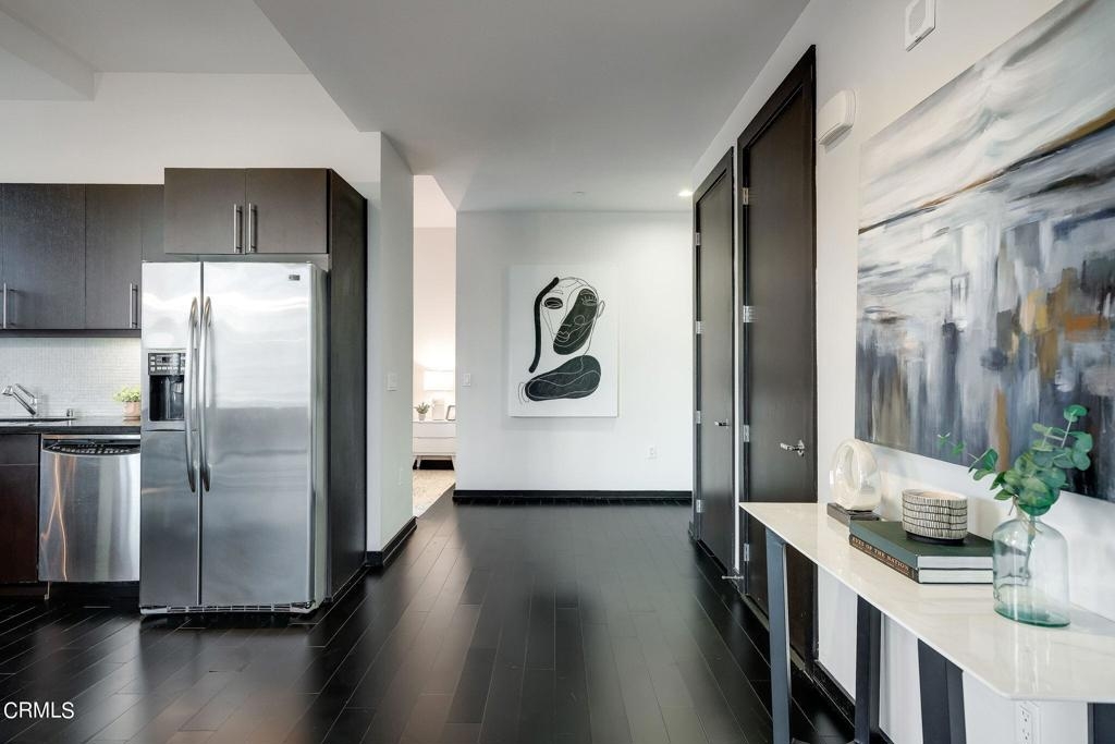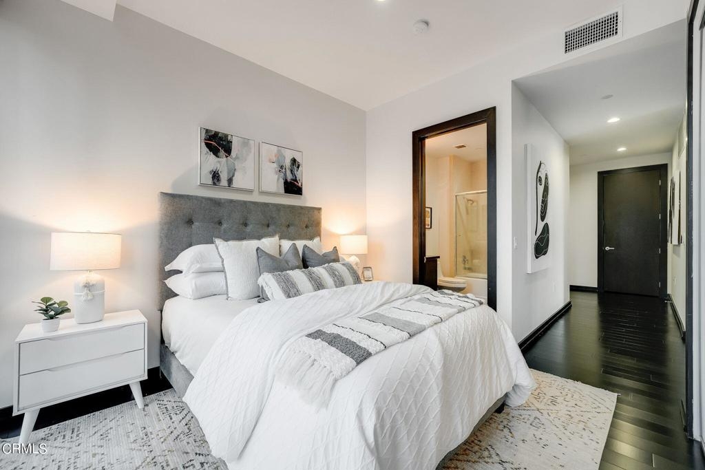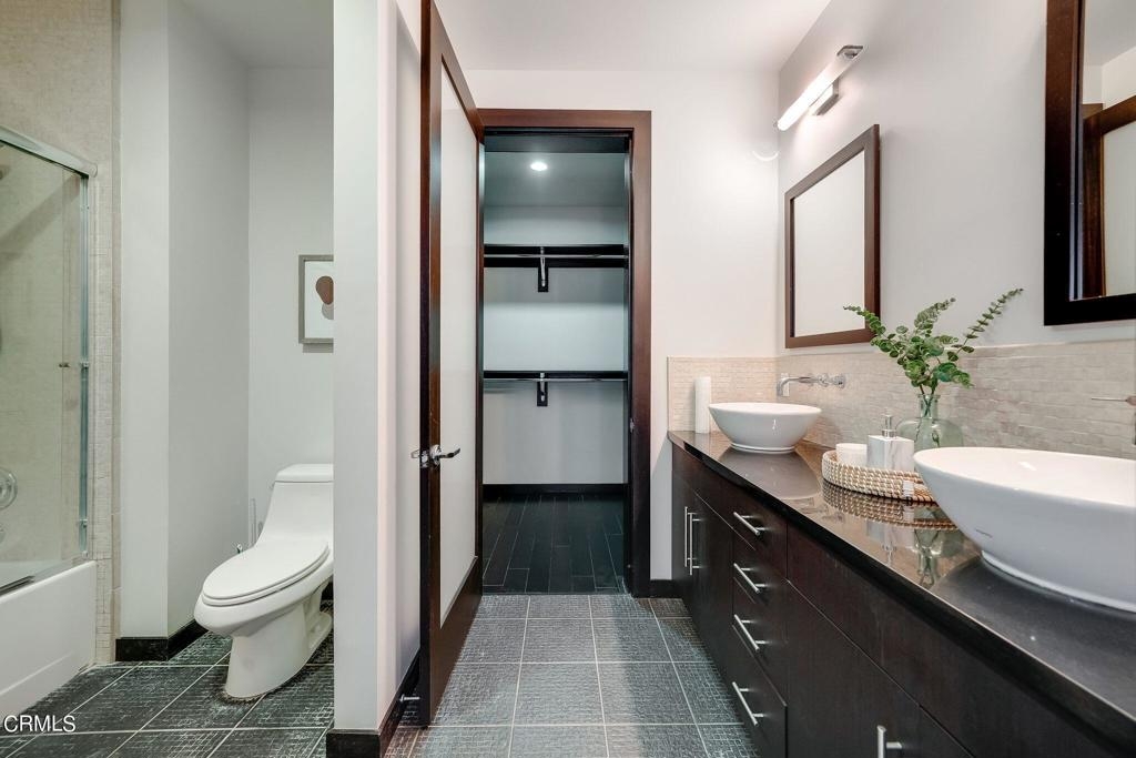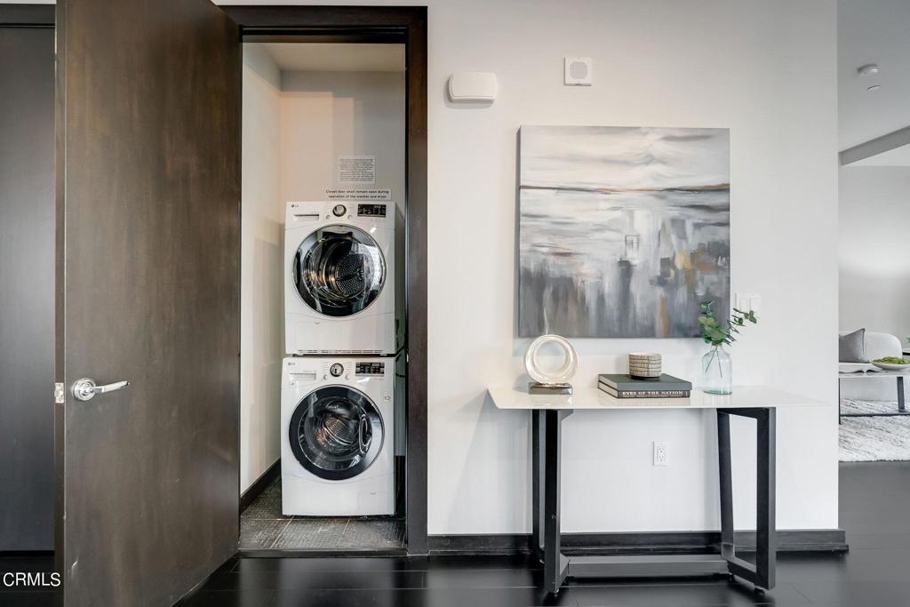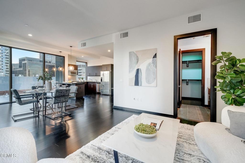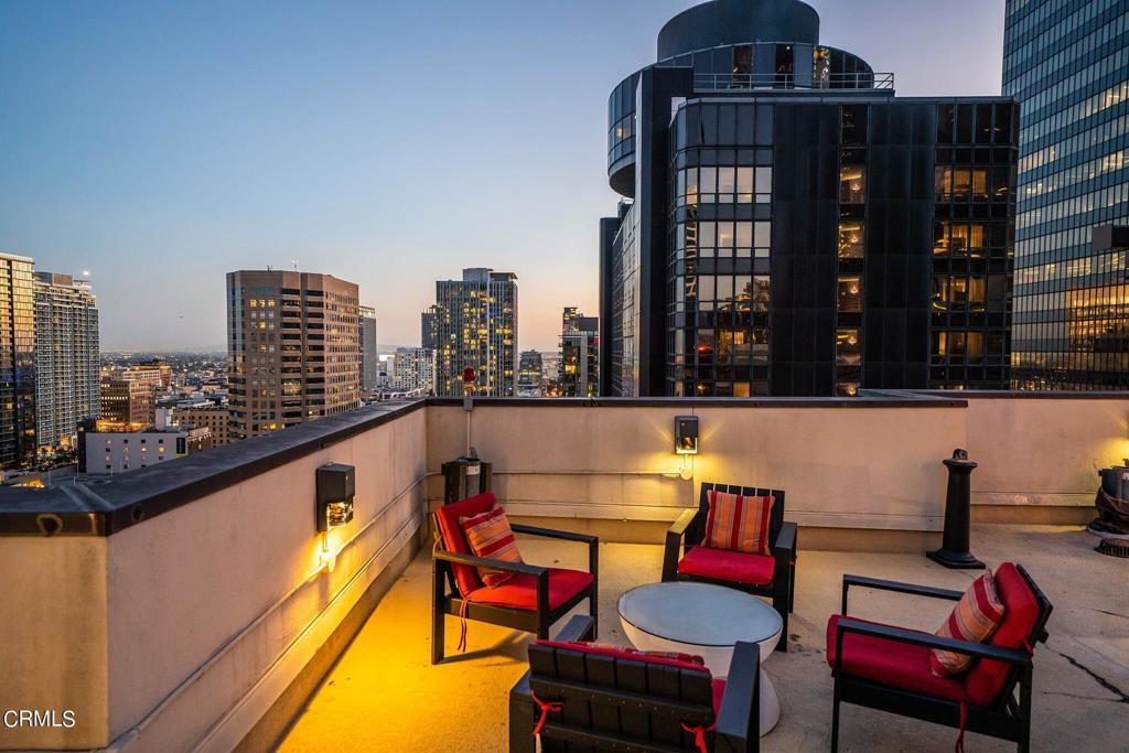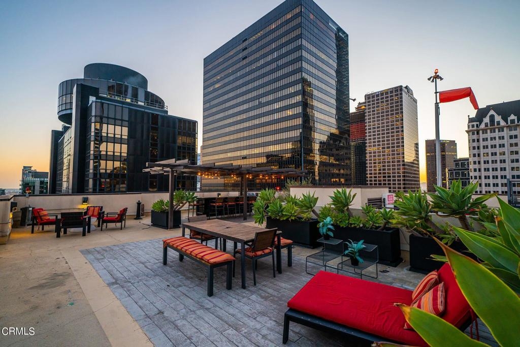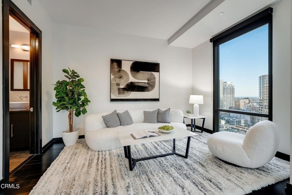 655 S. Hope Street #1705 is a modern Los Angeles condominium, featuring two bedrooms, two ensuite bathrooms and 1,080 square feet of living space polished to perfection. Located in the Financial District, the sophisticated penthouse puts the city on display with floor-to-ceiling windows throughout. An open floor plan layout creates airy spaces, 10-foot ceilings soar overhead and skyline and city views--including of the Wilshire Grand--are visible from each room.The living room has comfortable seating, neighbored by an elegant dining area--a perfect space to entertain amidst incredible views. The sleek kitchen includes stainless steel appliances, a gas range, an oversized breakfast bar and pendant lights. The primary suite provides a spacious walk-in closet with custom shelves and a luxe bathroom with a dual vanity and mosaic tile. A stacked washer and dryer add ease.Abundant building amenities include 24/7 security and concierge, a rooftop sundeck, barbecue, a chic bar with panoramic downtown views, a resident club, playroom, gym and a helicopter pad. Residents will have a dedicated 60-square-foot storage area in the basement and one parking space included on their title. Located directly above the 7th Street metro station, enjoy a prime location moments from the Staples Center, LA Live, the Wilshire Grand, Bottega Louie, Alamo Draft House, LA Athletic Club and other restaurants, bars and coffee shops. Undergoing an exciting development boom of luxury high-rises and hotels, this area is a hot spot to live, work and play. Welcome to exquisite city living.