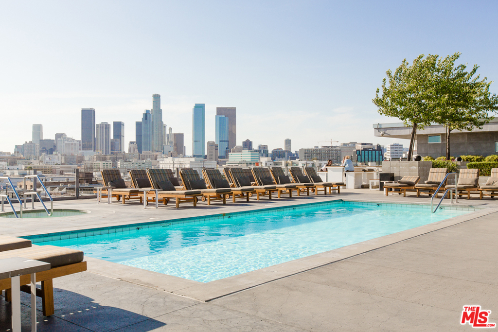 Penthouse Live/Work Loft at Barker Block. Open plan with 1330 sf and extra high ceilings, concrete floors, SS appliances, designer bath, and washer/dryer in unit. Gorgeous resort-style rooftop pool/spa/fireplace/fitness center with WIFI. 24/7 Security. Across from Urth Caffe and Central to all Fwys. Walk to Goldline, DASH bus, SciArc, Little Tokyo, Zinc Cafe, dog park, Urban Radish, hip new restaurants, new SOHO warehouse, and coffee shops in the trendy Arts District. One parking space included and storage in the basement.