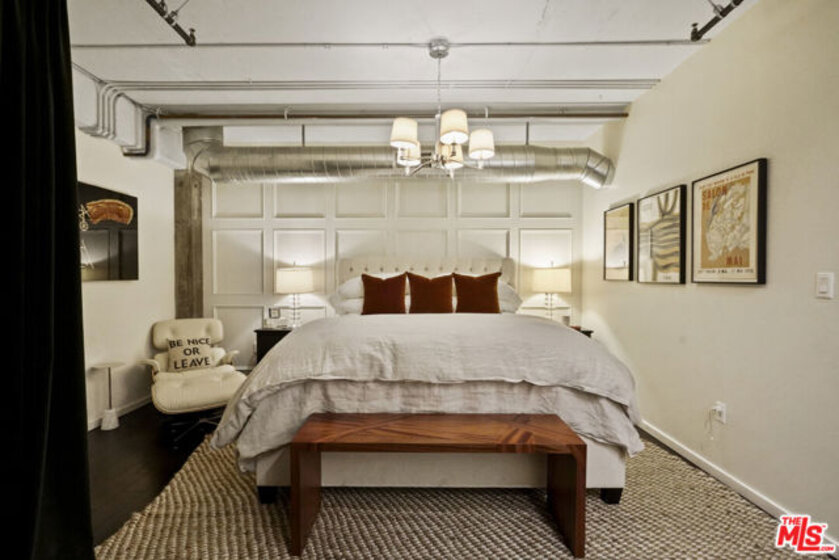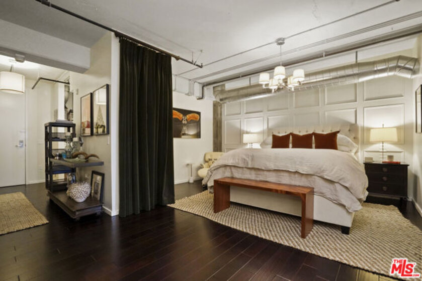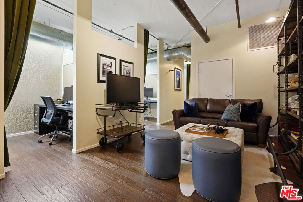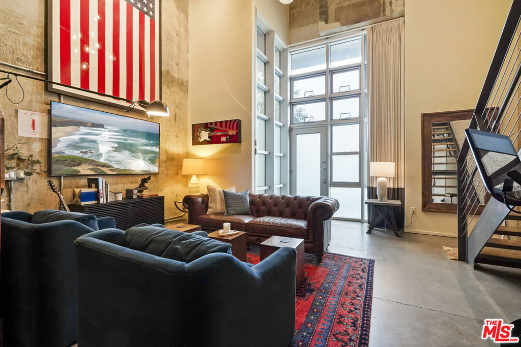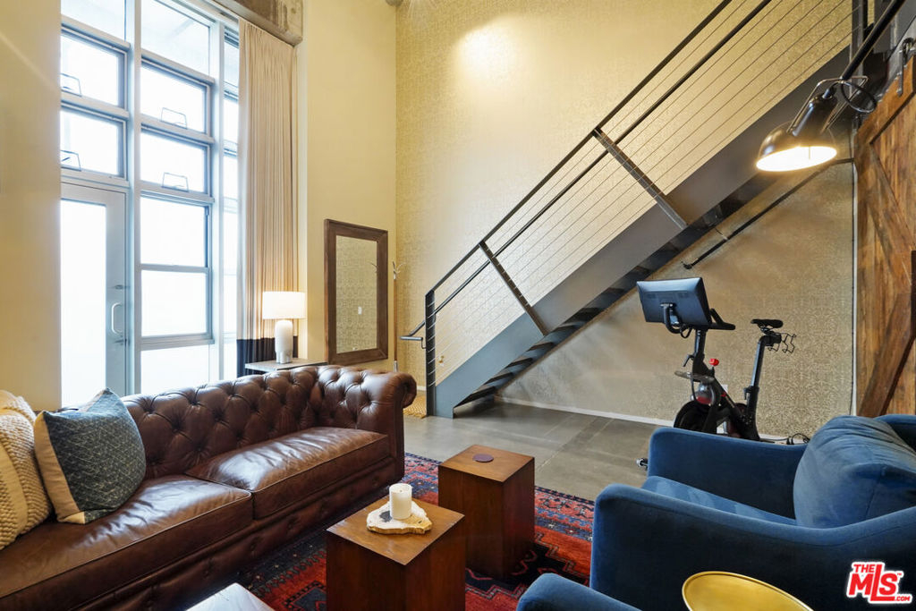 Nadia Geller Designs has created the interior of this breathtaking 2-story Barker Block live/work loft being offered fully furnished. All contents, including furniture, fixtures, kitchenware, carpets and motorized window treatments, plus a custom-built wardrobe, showcase the classic Nadia Geller signature style known as "casual luxury." The loft is structured with the residence on the ground floor. It features 20' ceilings in the living room, a dining area, gourmet kitchen with island, bar area, bedroom and full bath; on the second floor, you'll find a work space comprising three offices, a conference area, a lounge area, storage space and full bath. There is direct access from the second floor hallway. This live/work home is perfect for the next business owner looking for a turnkey space. Or, if your Buyer doesn't require an established work space, simply remove the partitions and create that second bedroom, media space or whatever is needed. The West-facing entrance features floor-to-ceiling, dual pane windows; there are sections of polished concrete and hardwood floors; an in-unit washer and dryer; and the loft has direct access from both Hewitt St. and two interior hallways. Your Buyer will enjoy close proximity to the two covered parking spaces, community mailroom, building security and elevator to the resort-style rooftop deck which offers a heated pool & spa, cabanas, BBQs, fire pits, dining areas and a newly equipped fitness center. There is also an inviting courtyard lounge with firepit and seating areas on the ground floor. For residents using amenities who wish to go online there is free common area WiFi. There is 24/7 building security with added safety cameras throughout the building. Located just steps from Urth Caffe & the LA Cleantech Incubator. Central to all Fwys. Near USC; walk to SCI Arc and the new 1st St. Metro station. Revisit the ever-red-hot Arts District, home to Spotify, Warner Bros. Music, SOHO House, award winning 5 star restaurants like Girl and the Goat & Bavel, clubs, taverns & all things hip and trending. You really must see this unique property in person to appreciate all it has to offer.