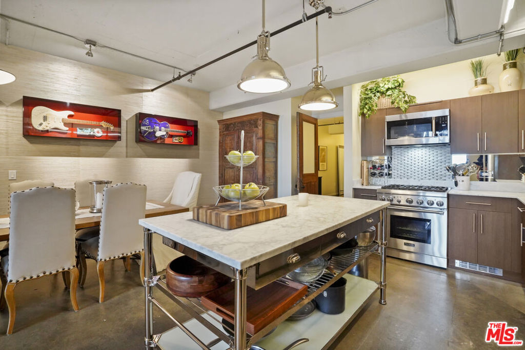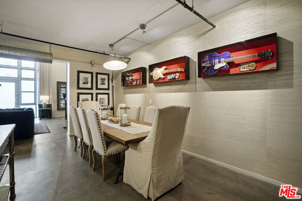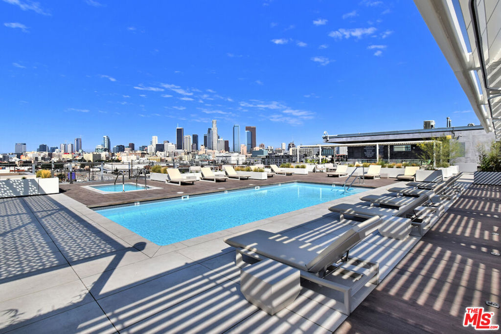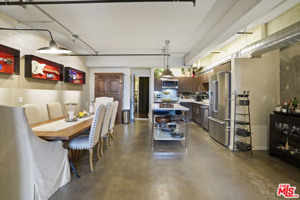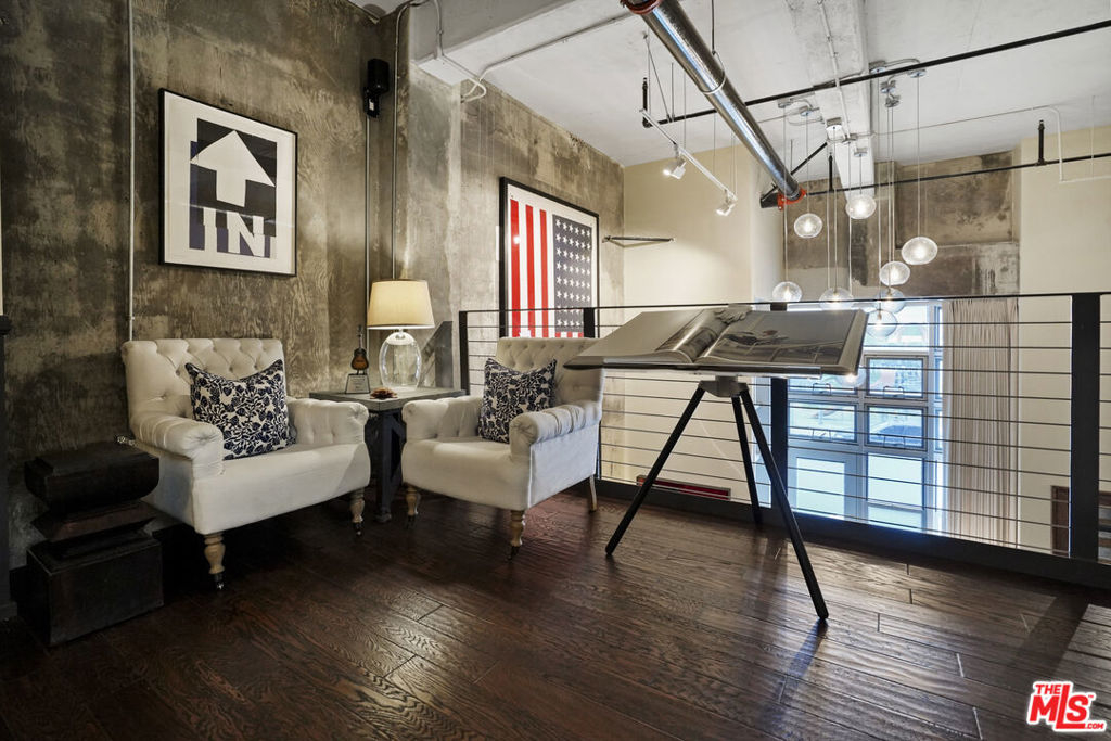 Nadia Geller Designs has created the interior of this breathtaking 2-story Barker Block live/work loft being offered fully furnished. All contents, including furniture, fixtures, kitchenware, carpets and motorized window treatments, plus a custom-built wardrobe, showcase the classic Nadia Geller signature style known as "casual luxury." The loft is structured with the residence on the ground floor. It features 20' ceilings in the living room, a dining area, gourmet kitchen with island, bar area, bedroom and full bath; on the second floor, you'll find a work space comprising three offices, a conference area, a lounge area, storage space and full bath. There is direct access from the second floor hallway. This live/work home is perfect for the next business owner looking for a turnkey space. Or, if your Buyer doesn't require an established work space, simply remove the partitions and create that second bedroom, media space or whatever is needed. The West-facing entrance features floor-to-ceiling, dual pane windows; there are sections of polished concrete and hardwood floors; an in-unit washer and dryer; and the loft has direct access from both Hewitt St. and two interior hallways. Your Buyer will enjoy close proximity to the two covered parking spaces, community mailroom, building security and elevator to the resort-style rooftop deck which offers a heated pool & spa, cabanas, BBQs, fire pits, dining areas and a newly equipped fitness center. There is also an inviting courtyard lounge with firepit and seating areas on the ground floor. For residents using amenities who wish to go online there is free common area WiFi. There is 24/7 building security with added safety cameras throughout the building. Located just steps from Urth Caffe & the LA Cleantech Incubator. Central to all Fwys. Near USC; walk to SCI Arc and the new 1st St. Metro station. Revisit the ever-red-hot Arts District, home to Spotify, Warner Bros. Music, SOHO House, award winning 5 star restaurants like Girl and the Goat & Bavel, clubs, taverns & all things hip and trending. You really must see this unique property in person to appreciate all it has to offer.