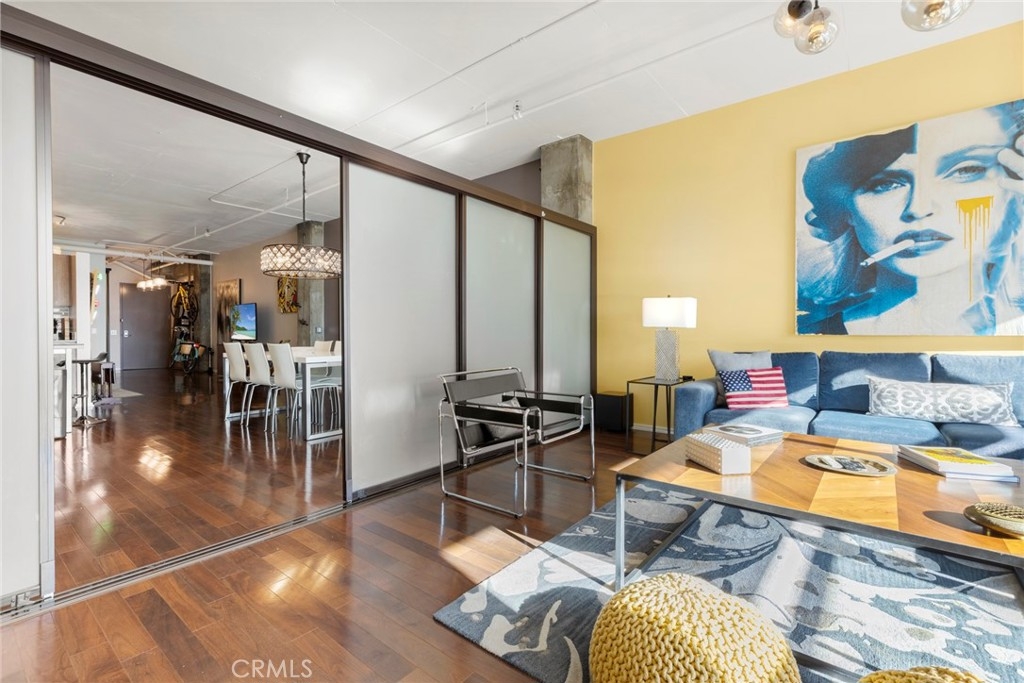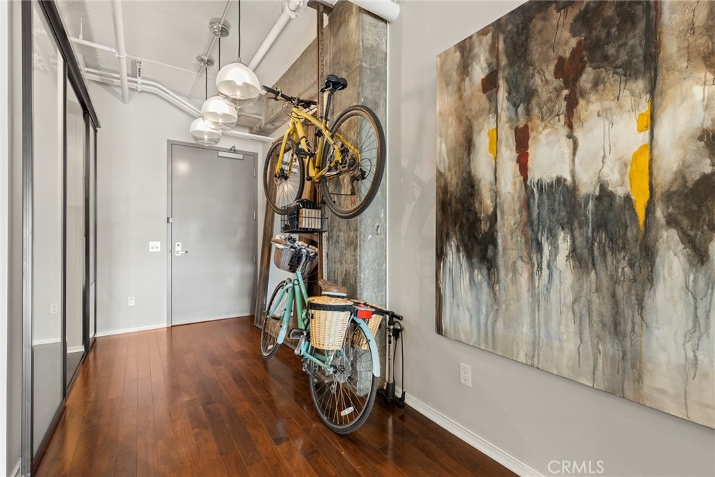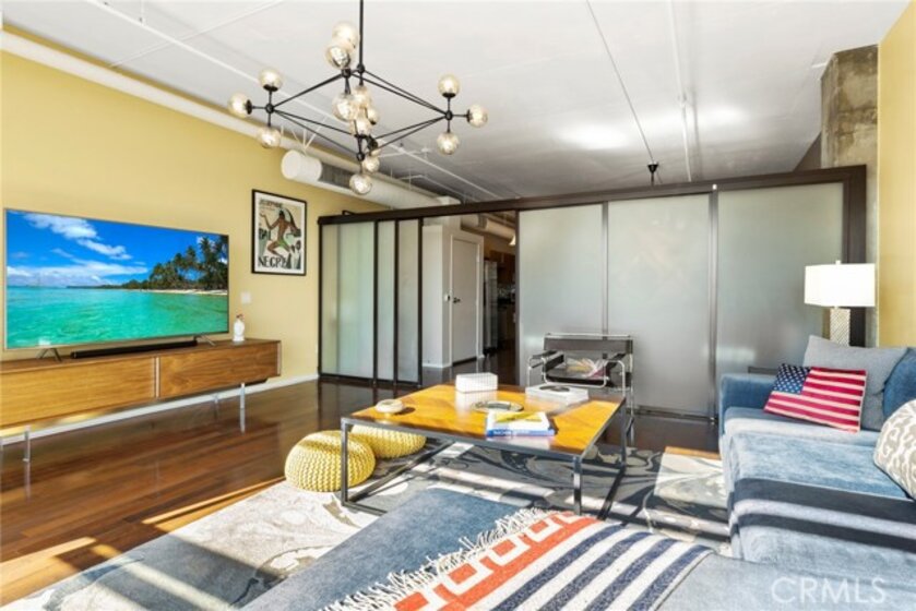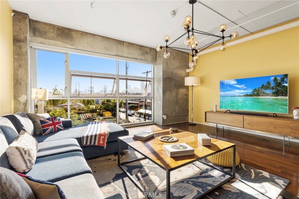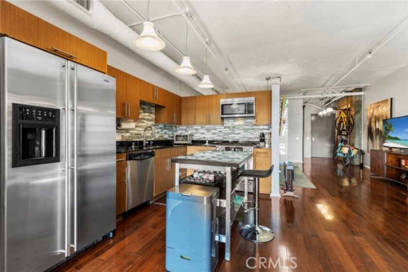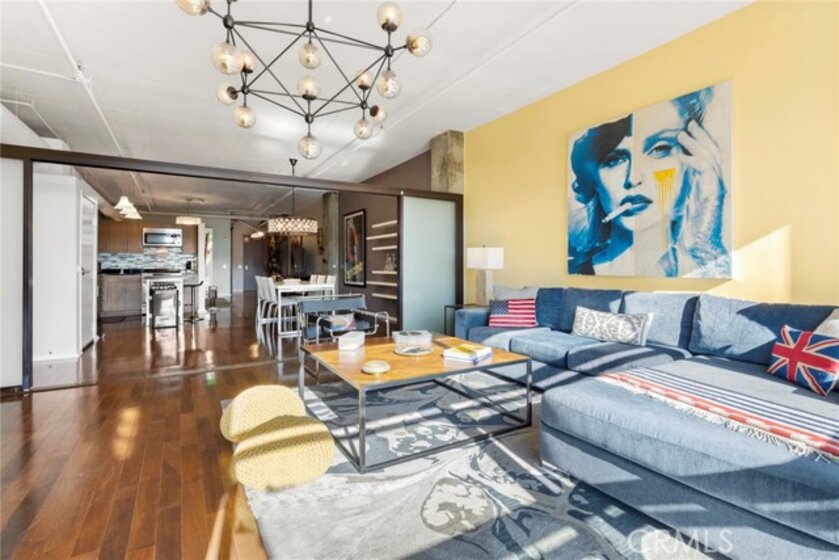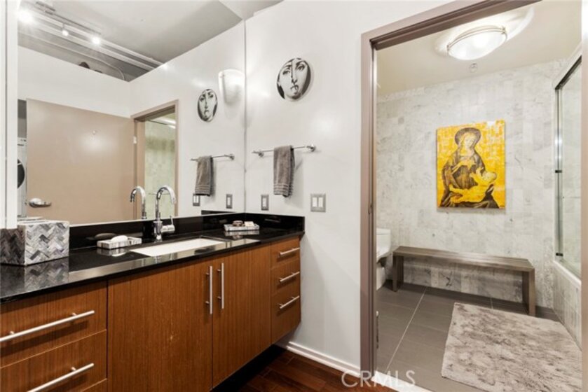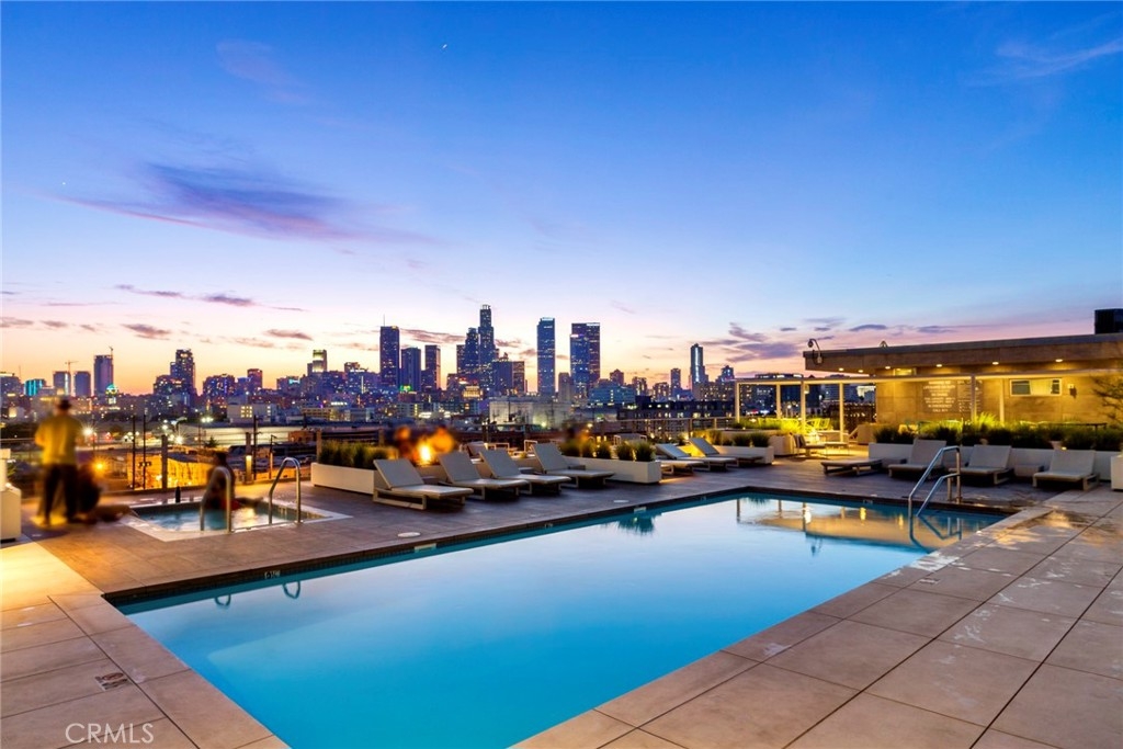 Be a part of what is the urban renewal in DTLA’s coveted Arts District. The Barker Block is an award winning and architecturally significant building situated in the heart of the Arts District. Unit 307 enjoys a PREMIER west facing view with STUNNNG SKYLINE and SUNSET vistas. Exposed concrete and ducting blend to create that hard urban edge while the beautiful warm wood flooring and finely appointed kitchen create a welcoming and inviting feeling, the kitchen features black granite counter tops and glass backsplash, complimented by SS appliances including a Jenn Air gas range. The fridge and stackable washer/dryer are included in the sale too! A wall of windows floods the space with western sunlight and allows you to enjoy both day and evening views of the beautiful DTLA skyline looking across the Arts District Park. Frosted glass partition doors allow for flexibility in the use of space and create privacy when needed. The bathroom is spa like with black galaxy granite counters and marble tile shower surround and accent wall. Additional storage and the always convenient inside laundry is located within the bathroom area. Resort amenities await featuring a newly re-opened rooftop oasis complete with pool, spa, firepits, BBQs, lounge areas and cabanas and imagine a workout while watching the sunset across Los Angeles – it doesn’t get much more iconic than these views! Secured parked, a guard staffed lobby and peaceful interior courtyard are additional community amenities. The enviable location of the Barker Block literally places you within steps of eateries, galleries, nightlife and the community Arts District Park. The loft is available fully furnished too! Don’t miss this perfectly located loft in a coveted building in this hard to beat location!