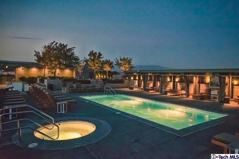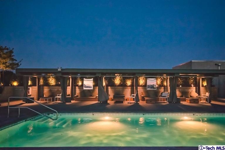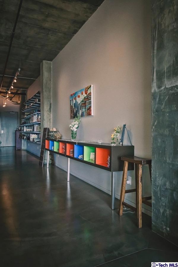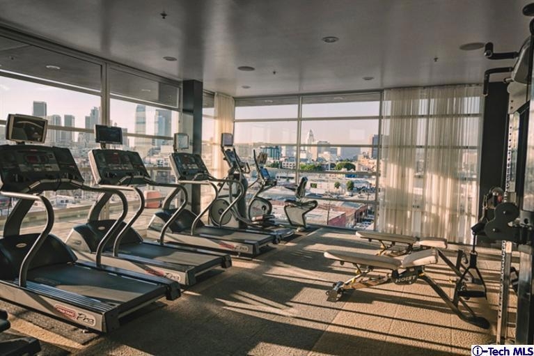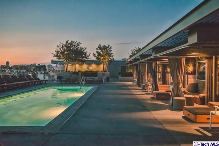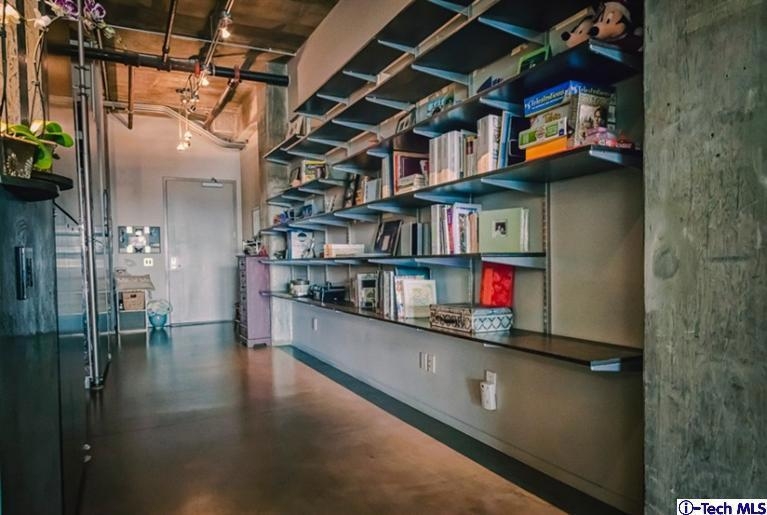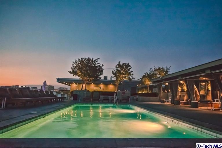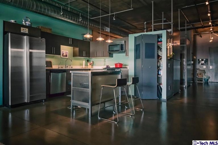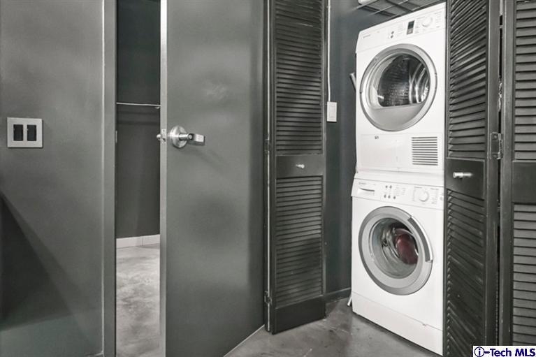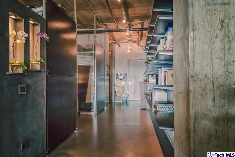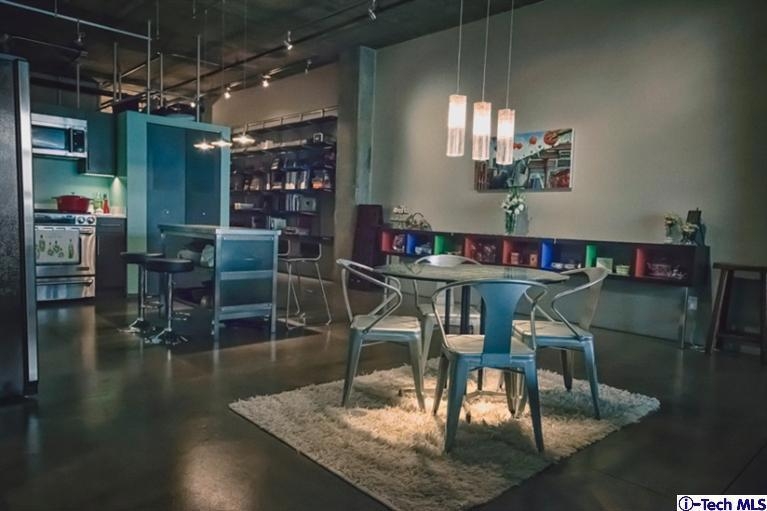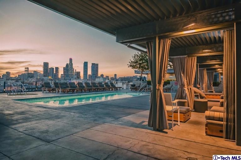 Industrial live/work loft, west facing w/DTLA skyline views, stunning sunsets framed by floor to ceiling, wall of double pane windows, modern designed lighting hanging from high ceilings throughout the unit, shades w/timer, all remotely controlled. Polished concrete floors and concrete ceilings, chic and quiet. Custom built shelves and pantry, S/S kitchen appliances, in unit W/D, over sized bathroom. One gated, attached, covered parking, 24/7 security on site. Luxurious amenities include a resort- style roof top w/pool/spa, cabanas, fireplace, and gym. Located near many eateries, coffee shops, museums, and soon to be opened, At Mateo, for dining and shopping. It is a stone throw away from Arts District park and dog park, and just minutes away from union station and metro stations.