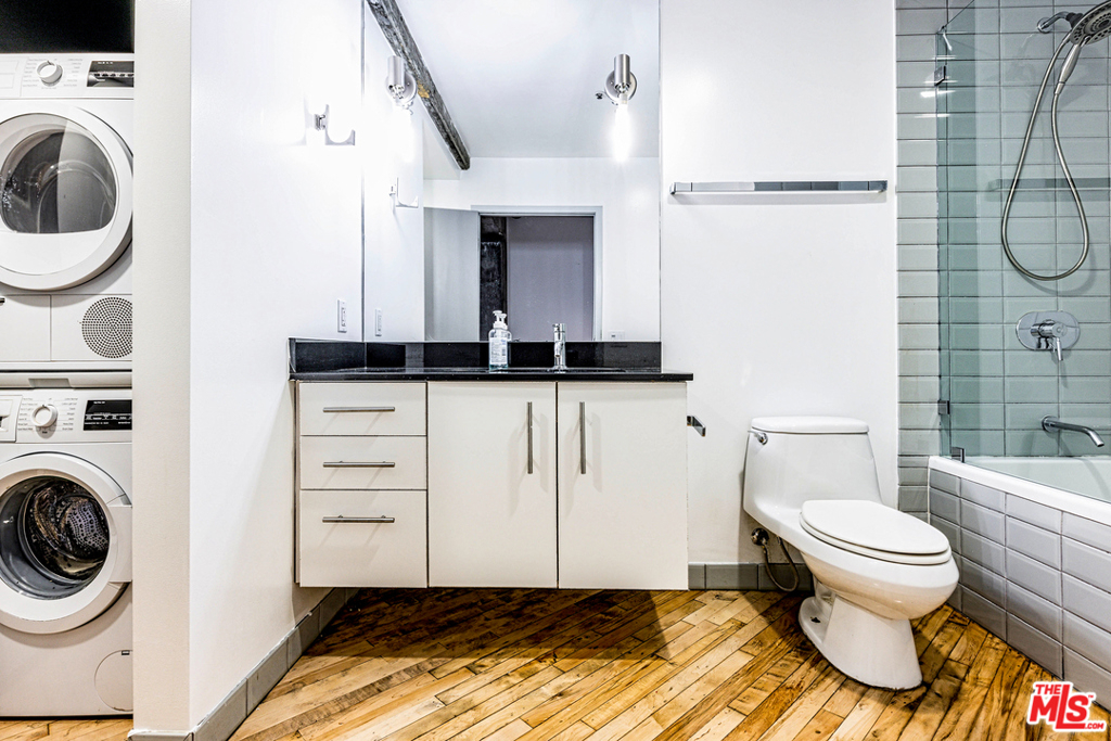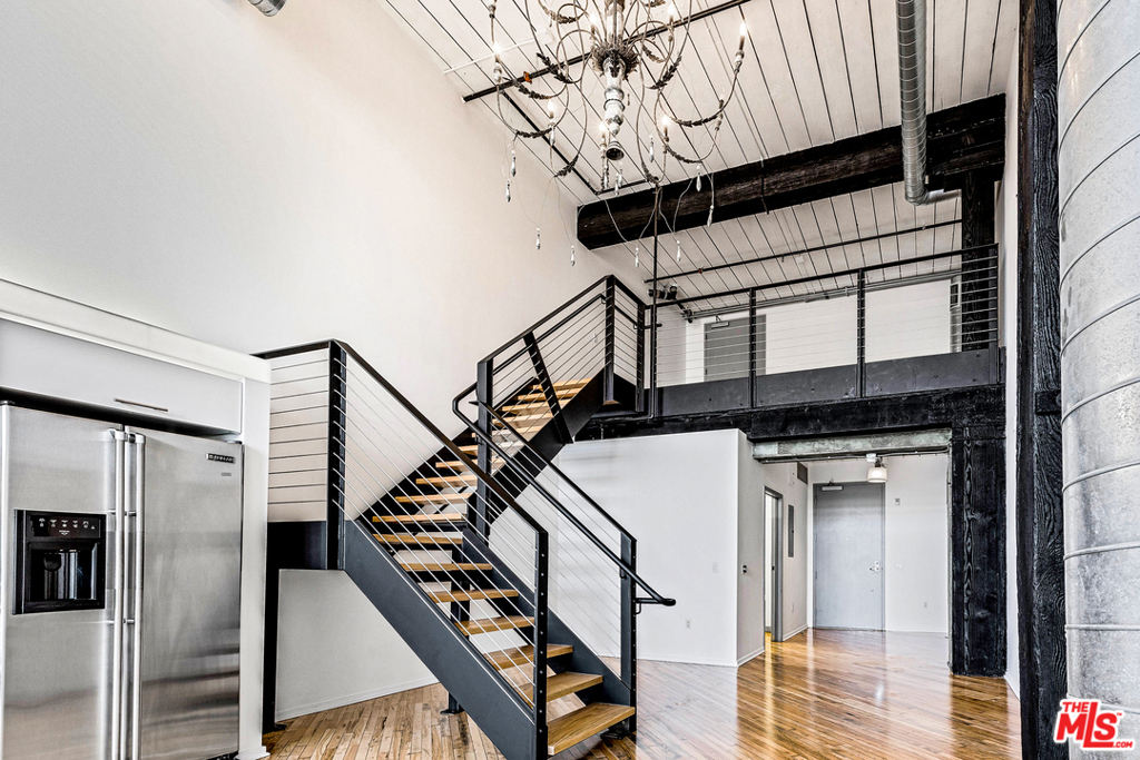 One of the neighborhood's biggest lofts is now available for sale in the Arts District's prestigious Barker Block! Extremely rare 3-level, west-facing true live/work "townhome" with direct street access, which makes it perfect for residential or business use! This unit offers over 20' ceilings, great separation between living and working space, walk-in closet, freshly refinished original hardwood floors as well as newly-polished concrete in the lower level. Nestled between super-hip restaurants, bars and renowned tech companies, this unit could not be more conveniently located in the heart of the Arts District. The Arts District park and playground is just a few steps away (perfect for a small family). Brand new, state-of-the-art, resort-style rooftop with grand Downtown LA views, BBQs, sun-lounges, spa and gym (built by the same company that built the acclaimed Soho Warehouse rooftop). This unit is priced to sell, so come and see it for yourself! Freshly painted and move-in ready!