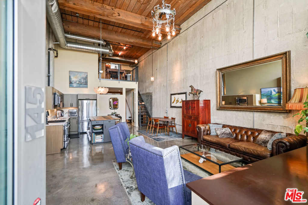 Unit #145 is an exterior unit with Western exposure & access from both sidewalk side of building & interior hallways. This large, bright, 2 level loft home showcases an open floor plan featuring century-old wood posts, beams & rafters. Double height ceilings, & a 2-story wall of glass anchor the living room. The first level features a gourmet kitchen with stainless steel appliances & granite counter tops, an enclosed guest bedroom w/ half bath. The 2nd level shows off a office extension overlooking the spacious living area. The master bedroom includes a generously sized walk in closet, full in-suite bathroom w/ oversized soaking tub, & custom double French door enclosed extra large bedroom. Completing this loft home are motorized shades, in unit washer & dryer, central AC/Heat, & 2 parking spaces in secured, covered, community garages. There is 24/7 Security & added safety cameras throughout Barker Block. Amenities include state-of-art rooftop fitness center, along with a sky deck offering pool, hot tub, cabanas, bbq, dining, & breathtaking views of the downtown skyline. On the ground floor, there is an inviting courtyard lounge with firepit and dining areas. For residents using amenities who wish to go online there is free common area WiFi. Located just steps from Urth Caffe, LA Cleantech Incubator & the Arts District Park. Central to all Fwys. Near USC; walk to SCI Arc, home to Spotify, Warner Bros. Music, SOHO House, award-winning 5 star restaurants like Girl and the Goat & Bavel, clubs, & taverns. Come home to Barker Block, a piece of living history that exemplifies the burgeoning community of art, culture, and entertainment in downtown.