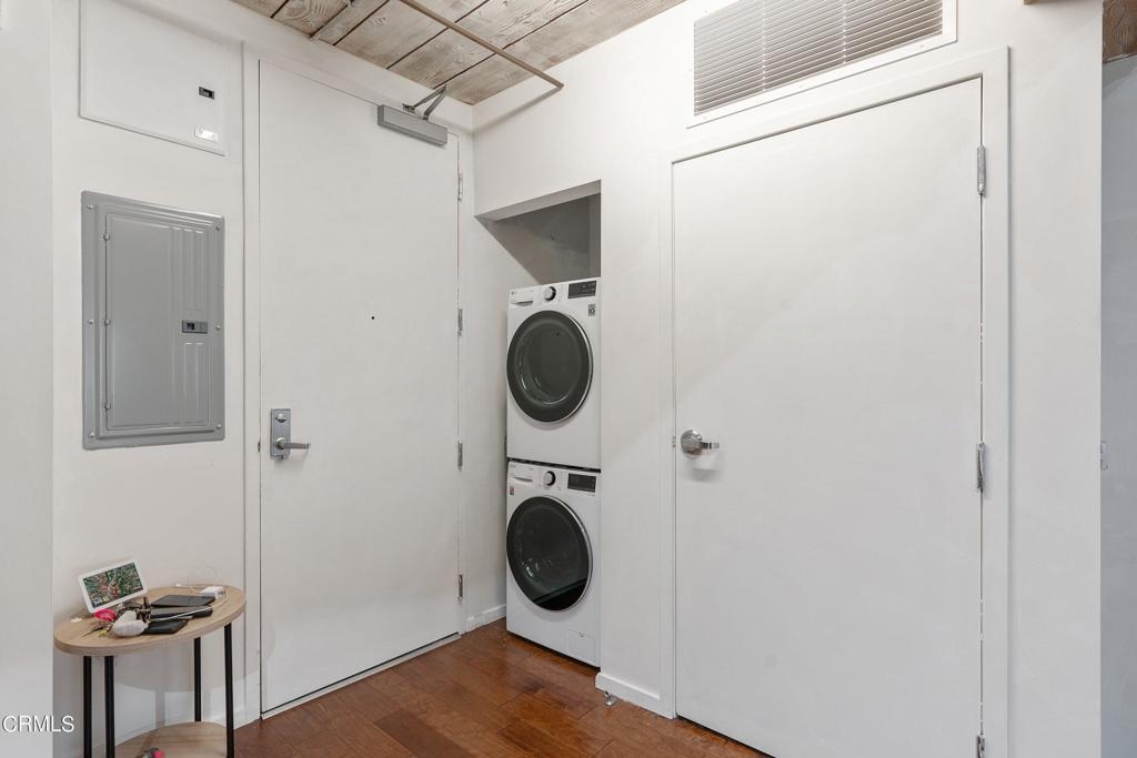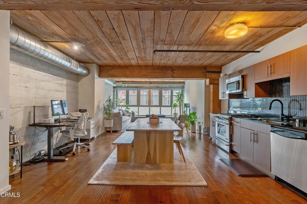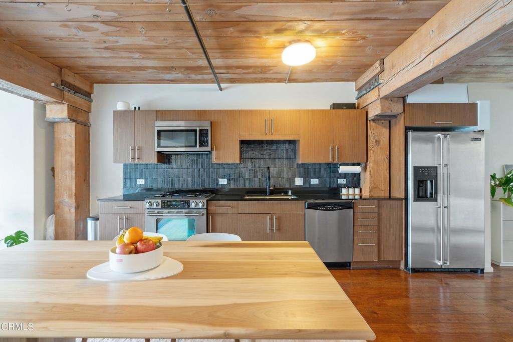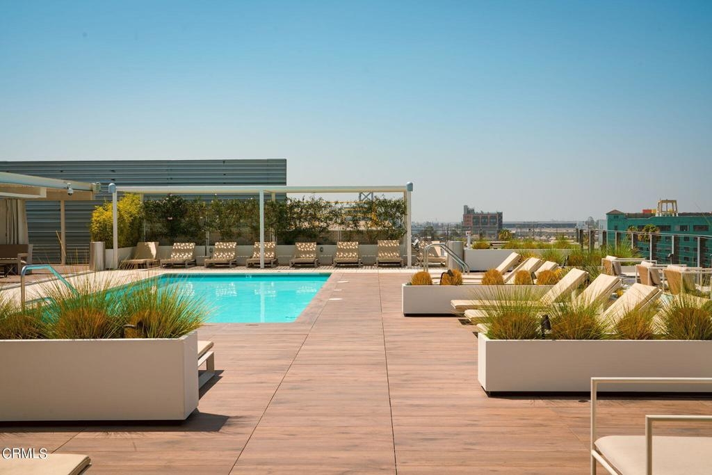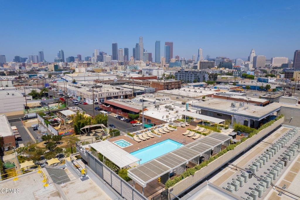 Welcome to unit 218 at Barker Block, an iconic highly sought-after community in the heart of the Arts District. Entering the spacious 1,030 square foot unit you'll be greeted by an open and inviting floor plan with natural light streaming through expansive windows, highlighting the exquisite industrial design elements. The modern kitchen offers black quartz countertops and stainless steel appliances, including a gas range, refrigerator, dishwasher, and microwave. Residents will enjoy the convenience of in-unit laundry and one assigned parking space. The building amenities are abundant, encompassing a newly renovated rooftop with views of the Downtown L.A. skyline, a pool, gym, barbecue area, fire pits, cabanas, additional outdoor courtyards and 24 hour security. Experience the Arts District living at its finest--Coffee roasters, LA's top gourmet restaurants, breweries, entertainment and galleries just moments away.