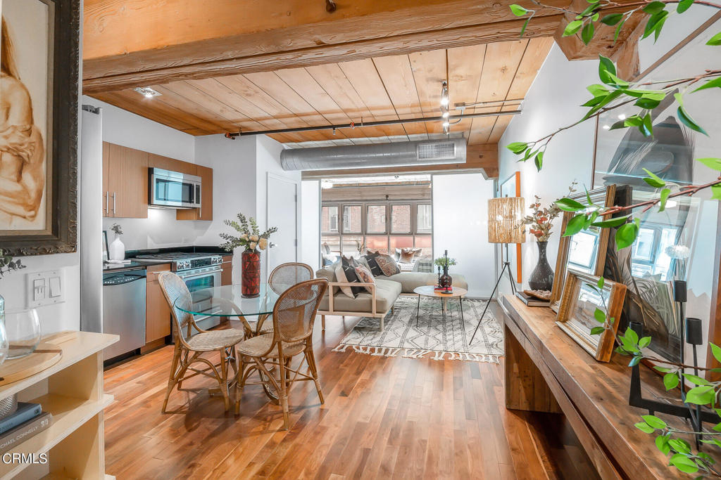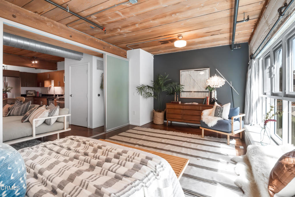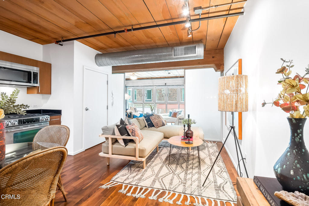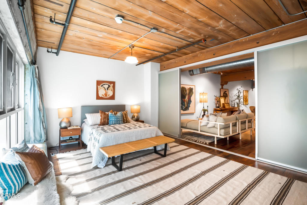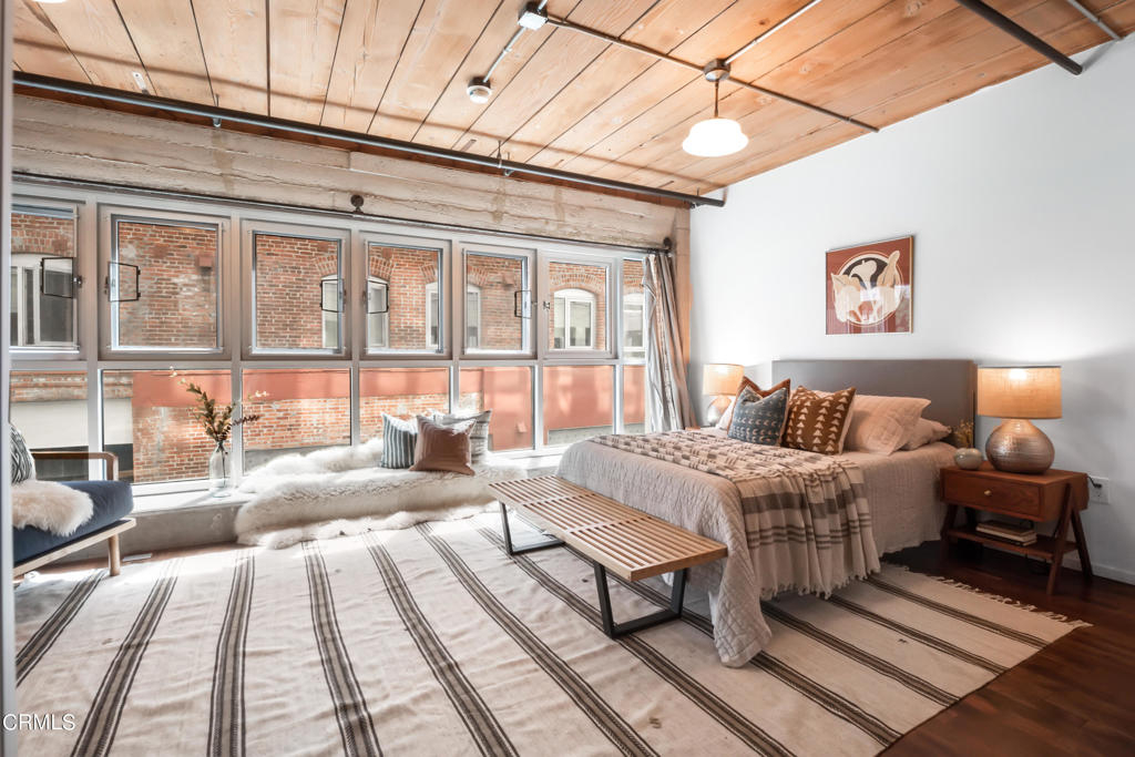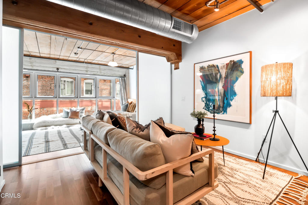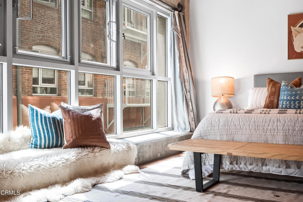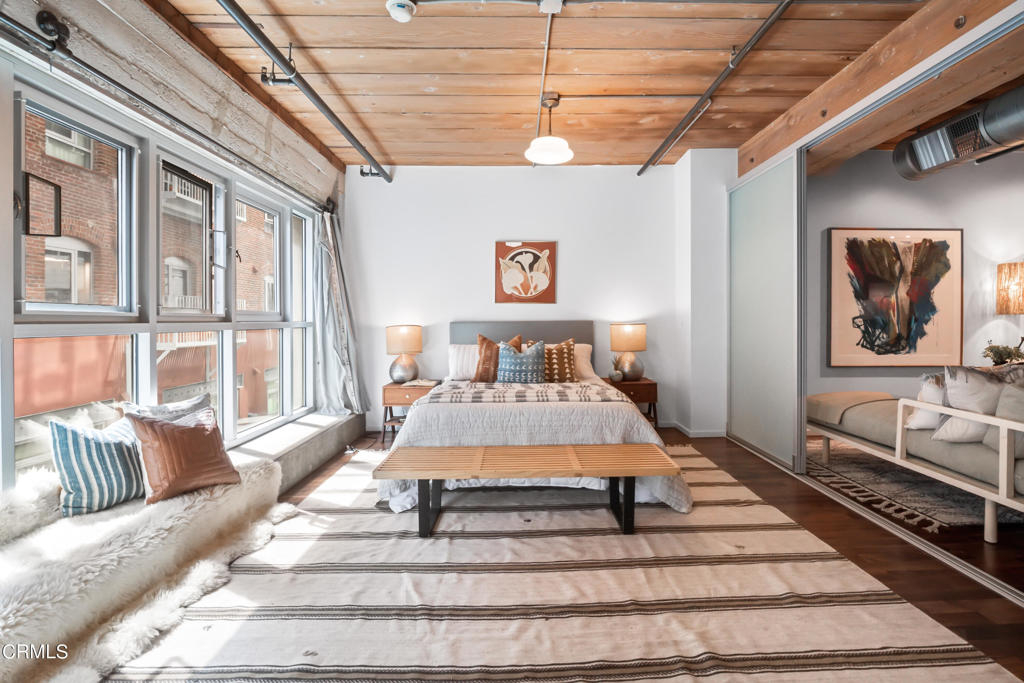 Industrial style and open floor plan, the Barker Block is one of the most sought-after buildings in the LA Arts District. This cozy, east facing unit has natural light flooding through a wall of double paned windows. Boasting original wood beam ceiling and posts from the 1920s, and rich with a variety of textures of concrete, steel, exposed pipes, and wood floor. Modern kitchen feature stainless steel appliances and black granite counter tops. Spacious bathroom offers an oversized soaking tub and inside laundry. Custom built-in wardrobes and bedroom divider/sliding door complete this swanky loft. Amenities include a newly renovated resort style roof top, equipped with pool, spa, firepits, cabanas, BBQ, and a fitness center, delivering an urban living with luxury. One designated parking space in an attached and gated garage, onsite HOA manager, and security guard on duty 24/7. Proximity to countless popular eateries, coffee houses, and galleries such as Bavel, Bestia, Girl and the Goat, Blue Bottle, Verve, Hauser and Worth, to name a few. Neighbors with well-known names like the SoHo House, Warner Brothers, Spotify, and Honey. Right across from the Arts District Park, and just minutes to major FWYs, metro and train stations. Experience a vibrant lifestyle in the bourgeoning Arts District of Downtown LA.