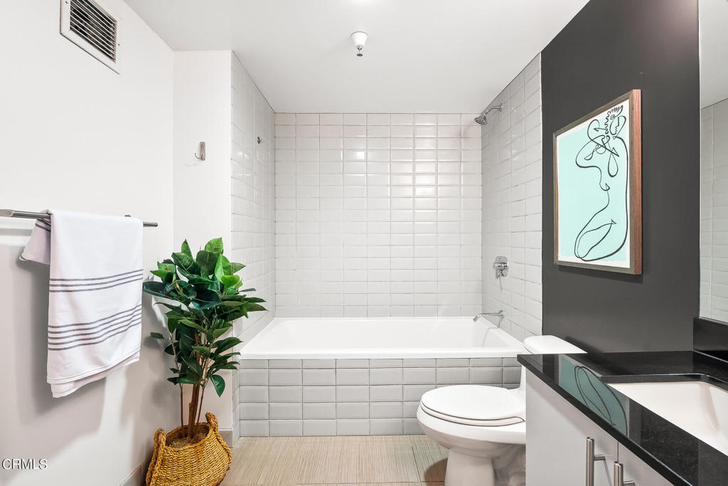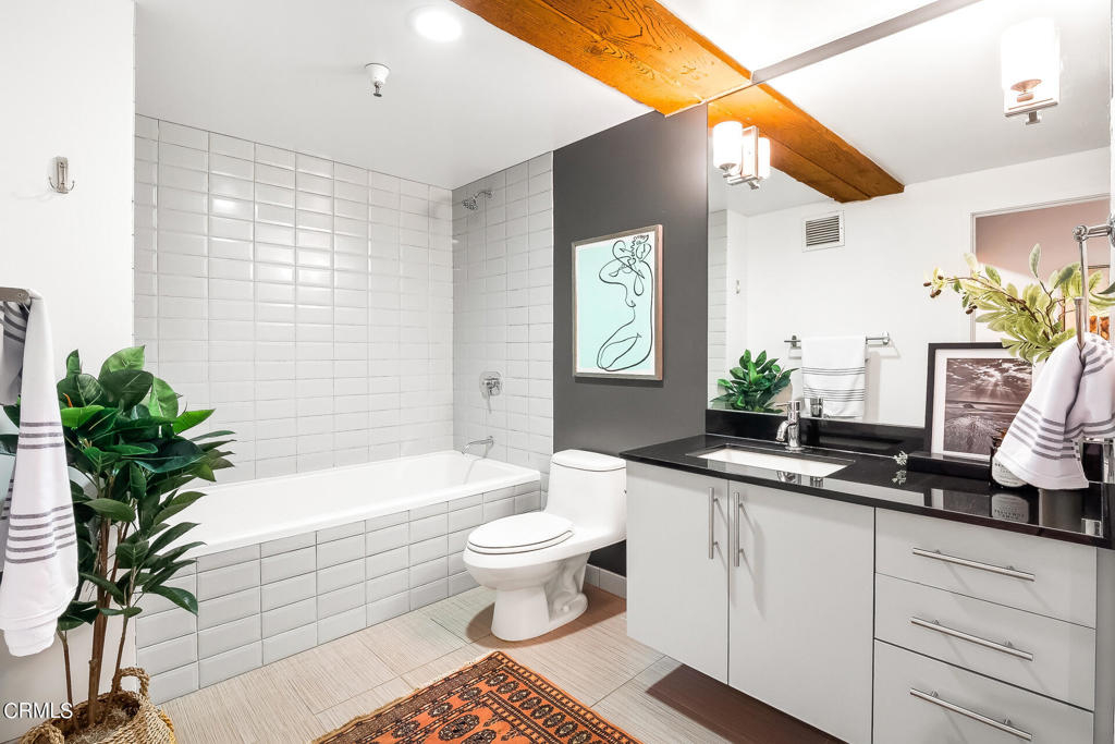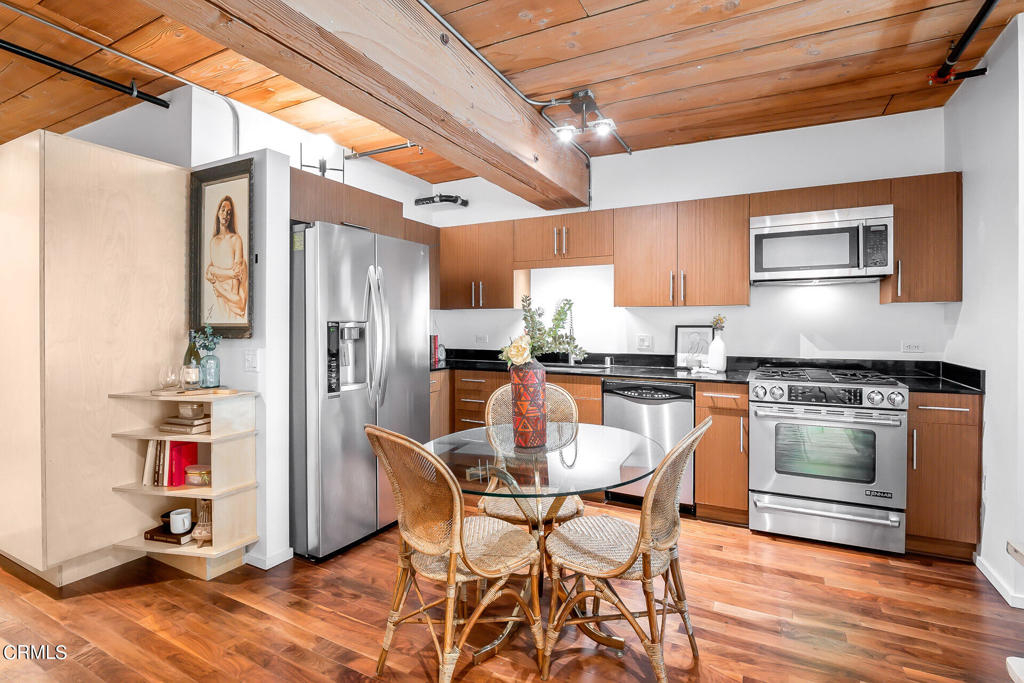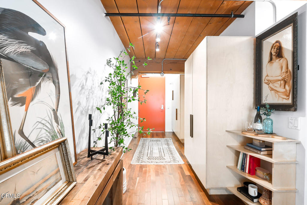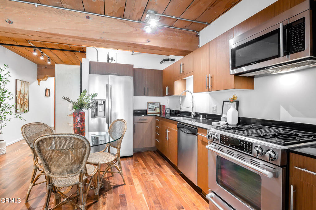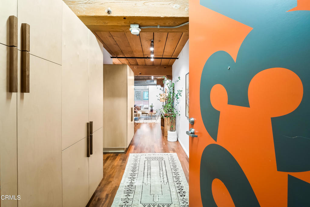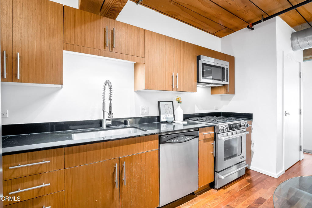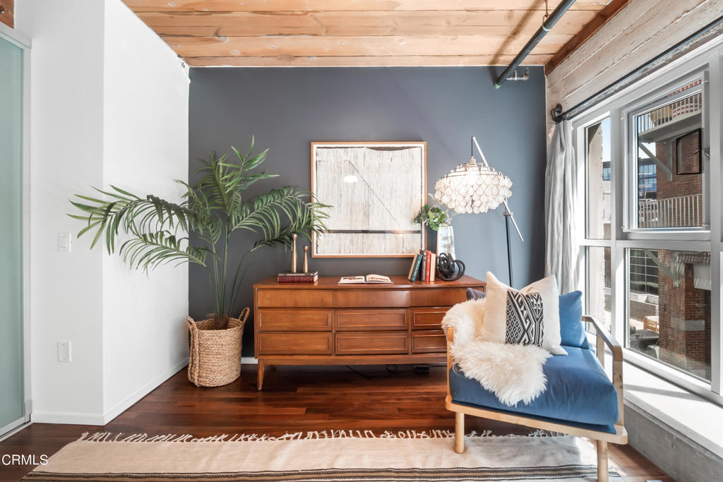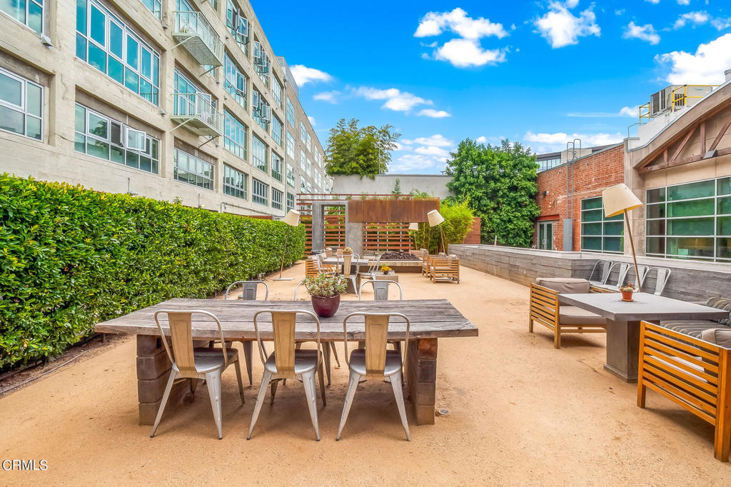Industrial style and open floor plan, the Barker Block is one of the most sought-after buildings in the LA Arts District. This cozy, east facing unit has natural light flooding through a wall of double paned windows. Boasting original wood beam ceiling and posts from the 1920s, and rich with a variety of textures of concrete, steel, exposed pipes, and wood floor. Modern kitchen feature stainless steel appliances and black granite counter tops. Spacious bathroom offers an oversized soaking tub and inside laundry. Custom built-in wardrobes and bedroom divider/sliding door complete this swanky loft. Amenities include a newly renovated resort style roof top, equipped with pool, spa, firepits, cabanas, BBQ, and a fitness center, delivering an urban living with luxury. One designated parking space in an attached and gated garage, onsite HOA manager, and security guard on duty 24/7. Proximity to countless popular eateries, coffee houses, and galleries such as Bavel, Bestia, Girl and the Goat, Blue Bottle, Verve, Hauser and Worth, to name a few. Neighbors with well-known names like the SoHo House, Warner Brothers, Spotify, and Honey. Right across from the Arts District Park, and just minutes to major FWYs, metro and train stations. Experience a vibrant lifestyle in the bourgeoning Arts District of Downtown LA.