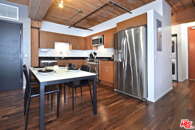 NEW LISTING: a sophisticated, east-facing, live/work loft in Barker Block: the premier residence in DTLA's Arts District. Century old wood posts, beams & rafters and a unique cement wall add a variety of textures to this spacious home. Hardwood floors; S/S gourmet kitchen features granite countertops; natural light streams in over a cozy, unique window seat; there is a washer/dryer in the loft; the huge designer bathroom offers lots of storage. Low HOA fees include 1 covered parking space. Then there's Barker Block's signature resort-style rooftop pool/spa/fitness center. 24/7 security. Free WiFi in common areas. Across from Urth Caffe, the Arts District Park, the LA Cleantech Incubator and the soon to open At Mateo shopping mall. Central to all Fwys. Near USC; walk to SCI-Arc, Hauser & Wurth, Little Tokyo, Goldline, DASH bus, Zinc Café, local dog park, hip new eateries, shops, taverns, farmers market. All in the burgeoning Arts District.