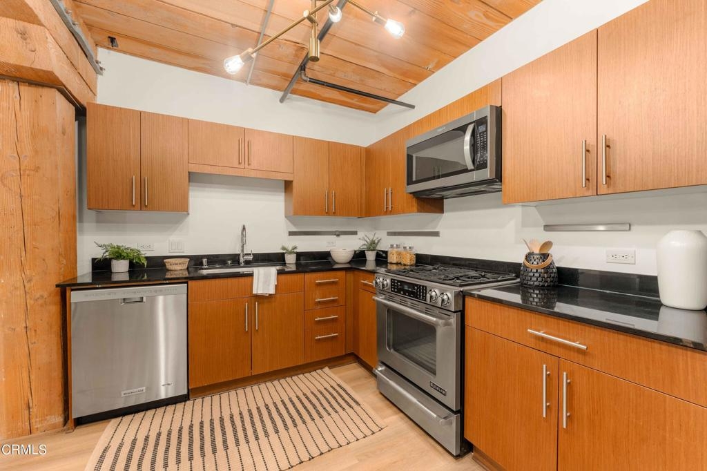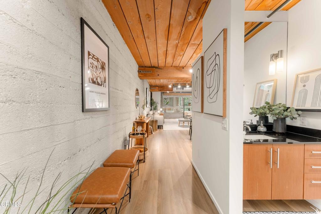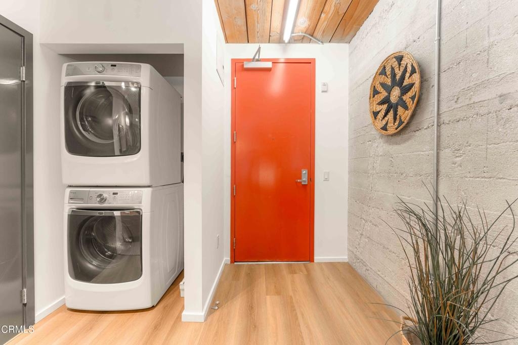 An opportunity to enjoy and live in one of the best buildings in the Arts District of downtown LA. The Barker Block building encompasses aspects of Style and quality. This cozy and tranquil unit, rich with industrial elements; Begin your tour under this open-style loft's original 1920s wood beam ceilings, exposed wood posts, and newly installed floors, bathroom tile around the tub, and HVAC. Concrete framed walls of double-paned windows. Spacious bathroom offers room for cabinets, oversized soaking tub, and inside laundry. Gallery kitchen with S/S appliances. One covered and designated parking space in a gated garage and on-site 24/7 security. Other amenities include a recently modernized resort-style rooftop, equipped with a heated pool, spa, BBQs, cabanas, fire pits, fitness center, and 360 degrees of spectacular views of the horizon, completing this swanky urban living with luxury. Proximity to countless popular eateries (Bavel, Girl & the Goat, Manuela), coffee houses (Verve, Blue Bottle, Urth), museums and galleries (Hauser & Wirth and more), and The Arts District Park. Prominent neighbors such as The SoHo House, Warner Brothers, and Spotify, etc. Conveniently located just minutes away from metro and train stations, and a quick hop onto all major Freeways. Come and experience vibrant living in the famed Arts District of downtown LA.