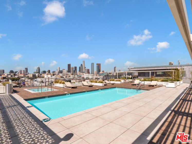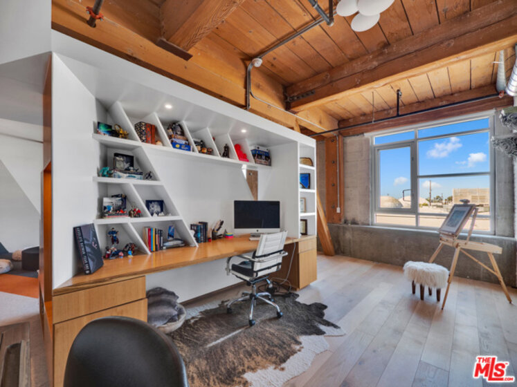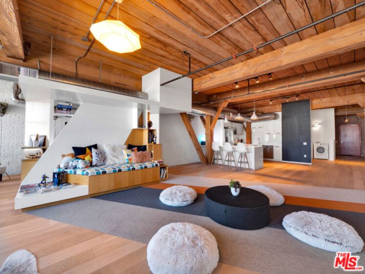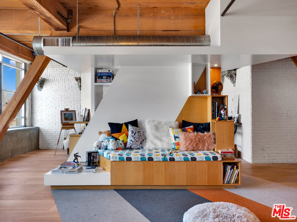 Celebrity owned and featured in Dwell Magazine for its playful mashup. This inspirational live/workspace was created by the renowned architectural firm CHA:COL. Inspiring, fully renovated, a multifunctional studio Facing city views in the beautifully restored Barker Block, historic Arts District neighborhood. An open floor plan features a wall of windows that flood sunlight into natural oak flooring. Dividing the area, a custom oak veneer millwork piece creates the ideal office space for anyone. The sleek kitchen design features a peninsular bar, inviting friends to mingle in the experience that is your home. Tucked away in the back of the loft is the cozy bedroom with an accent brick wall and an attached monochromatic bathroom with a streamlined palette featuring custom white lacquer vanity and porcelanosa tiles. Enjoy spectacular city views from the newly renovated rooftop's heated pool, spa, fitness center, and lounge spaces with fireplaces. This highly sought-after urban oasis includes 24-hr security, free common area WiFi, one covered parking space. Opposite the street to Urth Cafe and Arts District Park, this studio is surrounded by popular eateries, breweries, museums, and galleries minutes from the metro, Little Tokyo and USC. Inspire creative expression in the best of city living.