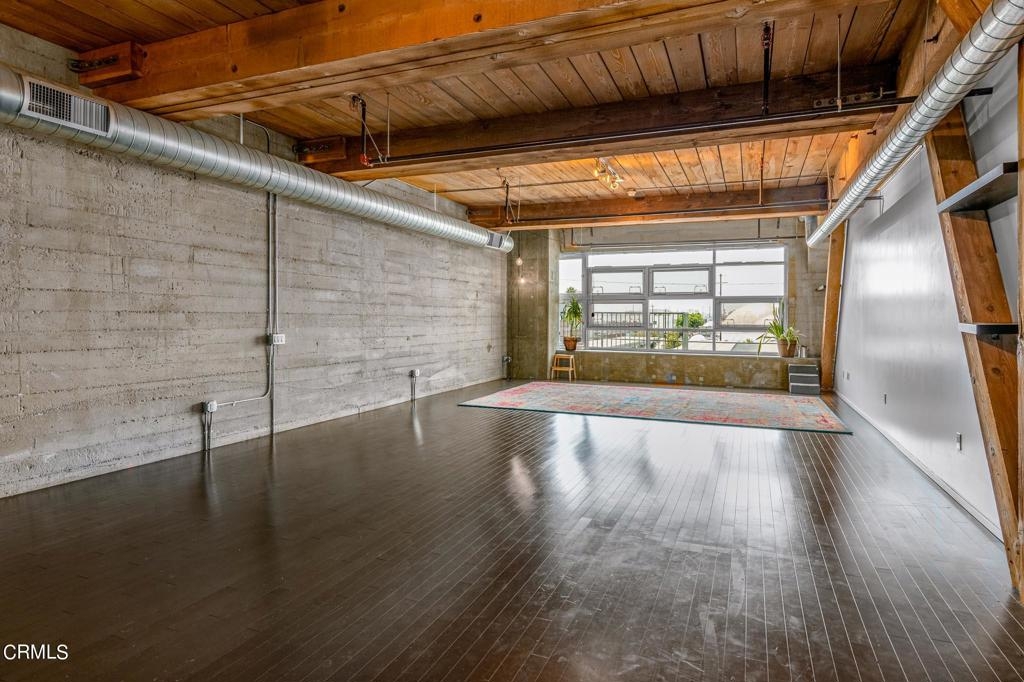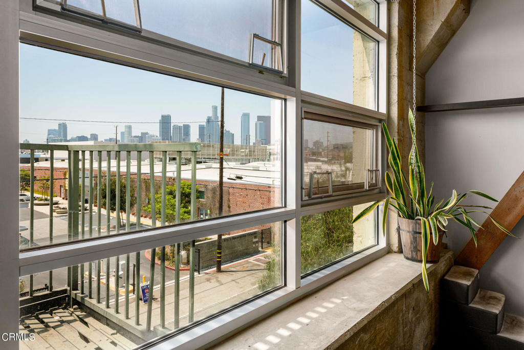 One of the largest single-level west facing units with balcony is now available at the Barker Block. Looking out to the gorgeous views of downtown LA skyline through a wall of double pane windows. This industrial loft features original wood beams and posts, one entire wall of concrete, dark wood floors throughout, and an oversized bathroom with soaking tub, and laundry closet with stackable machines. An open style concept with a wide and expansive floor plan has the potential for a buyer's imagination to create a variety of built-in or enclosure if desire. Amenities include a newly renovated resort style roof top, equipped with pool, spa, firepits, cabanas, BBQ, and a fitness center, complete this swanky urban living with luxury. Proximity to countless popular eateries: Bavel, Bestia, and the soon to open Girl and the Goat; coffee houses: Blue Bottle and Verve; museums and galleries such as Hauser and Wirth; neighbors with big names likes the SoHo House, Warner Brothers, Spotify, Honey, just to name some, right across from the Arts District park, and a quick hop onto all major FWYs, metro and train stations. Experience a vibrant living in the famed Arts District of Downtown LA.
