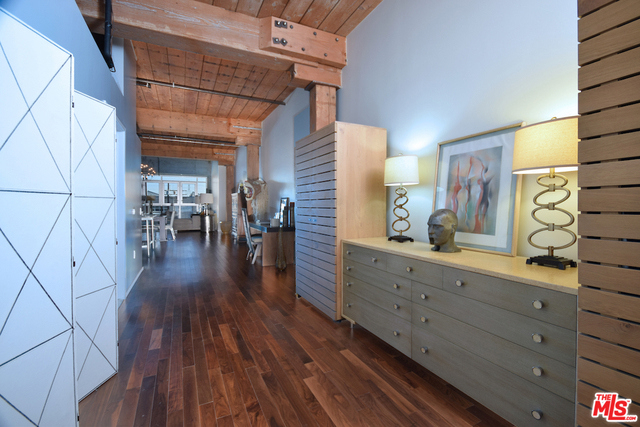Extraordinary Barker Block live/work residence that has everything DTLA buyers want: super sophisticated vibe, lots of light, unobstructed views with only blue skies, neighboring buildings and the mountains in the distance; high ceilings & a fair market price. The home was gently used by the original owner who is rarely in the Arts District. And then there's the century-old wood posts and beams; heavy timber ceilings over hardwood floors, gourmet kitchen with some never used S/S appliances & granite countertops. Huge designer bathroom. Outdoor lounge with firepit. 24/7 Security. Free common area WiFi. Across from Urth Caffe, the Arts District Park & La Clean Tech Incubator. Central to all Fwys. Close to all studios. Near USC; walk to SCI Arc, Little Tokyo, Goldline, Dash bus, Zinc Cafe,Urban Radish market, dog park, hip new eateries, shops, taverns. All in the burgeoning Arts District.