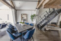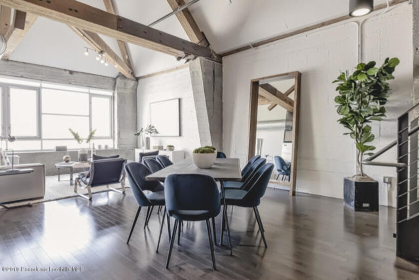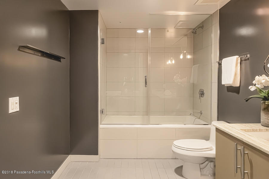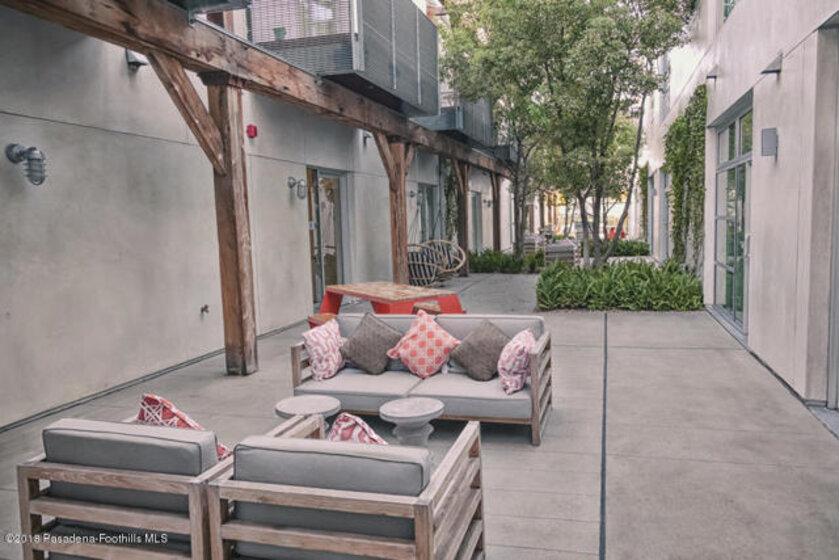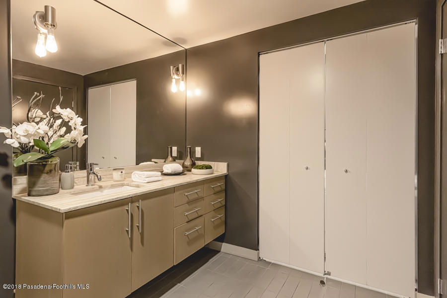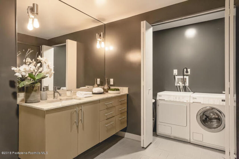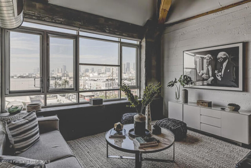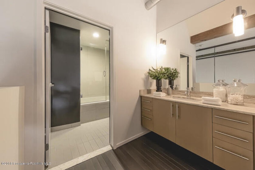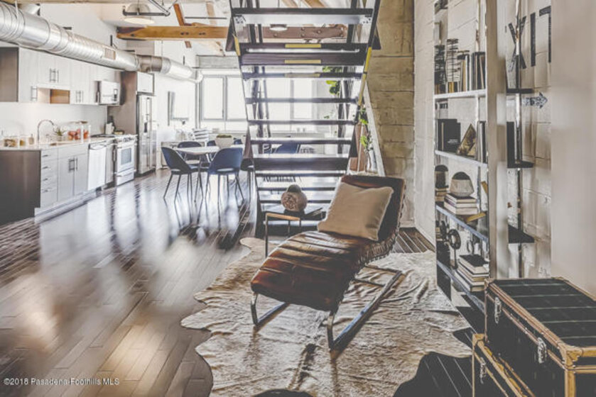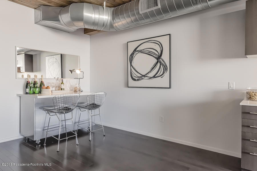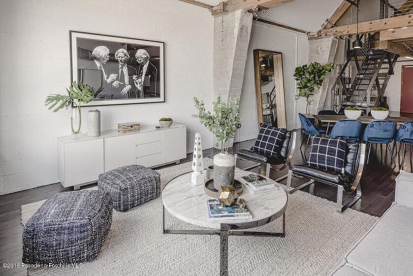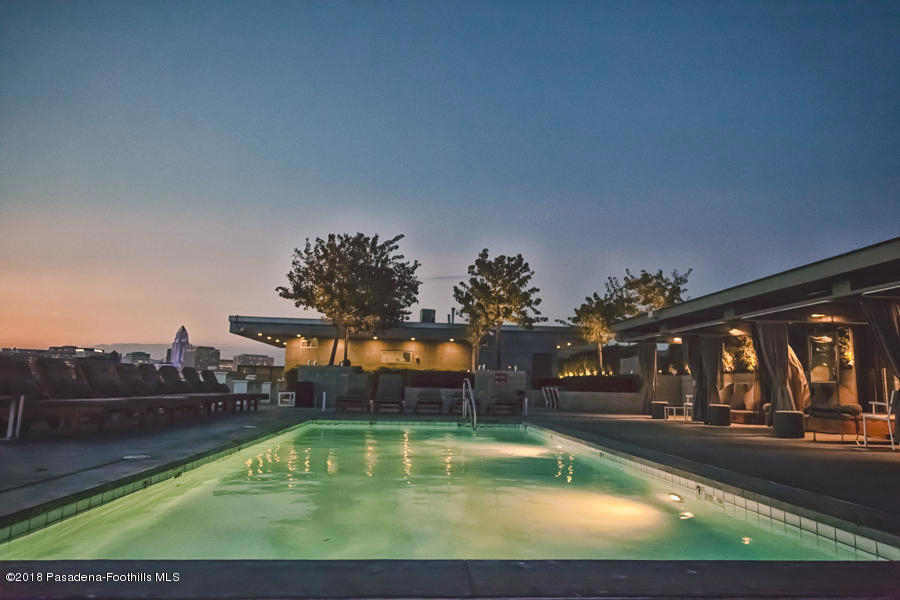Opportunity at the Barker Block - offering from the original owner, is this chic & elegant, west facing industrial live/work Penthouse. Enter and be greeted w/high vaulted ceilings, dark wood floors, exposed wood beams & posts; beyond the foyer, is an oversized bathroom, housing a laundry room in a closet that is spacious enough to use as storage, a gourmet kitchen offers S/S appliances, ample cabinets, a custom designed kitchen island on wheels w/ yet more cabinets, open floor plan living space allows one to utilize with imagination and preference, stunning industrial staircase escalates you to the mezzanine level, where you will find the main bedroom and a second full bath, there is room to potentially expand the mezzanine level for a second bedroom up, concrete accented wall of windows, framing beautiful sunsets nightly over the downtown LA skyline. Unit comes with one deeded parking in a gated and attached parking structure. Luxurious amenities include a resort-style roof top with pool/spa, cabanas, fireplace, and fitness center, and 24/7 security on site. Close to variety of popular eateries, restaurants, museum, park, stores, metro gold line, and just minutes to many major freeways. Come and enjoy a stylish/urban living in the Arts District