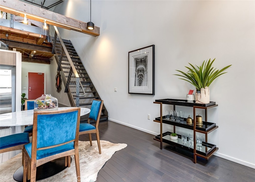 Stunning top floor in the heart of the Arts District. Cathedral ceiling with wood truss beams and sky light window. 2-level home/work space one of the prime units in the coveted Barker Block. The main floor hosts a room that can be used as a bedroom, office, or studio, a full bath, in-unit laundry, an updated open concept kitchen and living area. The 2nd story loft is perfect as the primary bedroom suite with a full bath and large closet space. Wood floors throughout. The unit comes with a covered parking space. The Barker Block, beautifully restored and converted into lofts in 2007. Enjoy a brand new rooftop pool and gym overlooking the Los Angeles Skyline outdoor lounge spaces with fireplaces, 24/7 security. This complex is located in the historic Arts District close to the Urth Caffe, top restaurants, galleries, park.