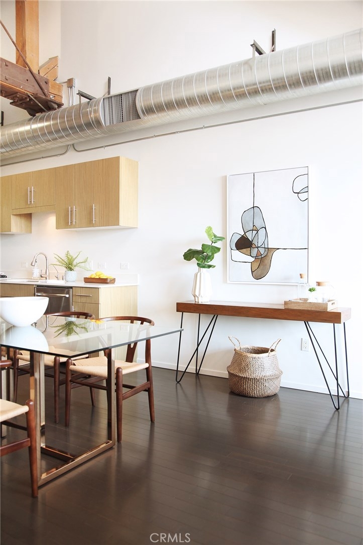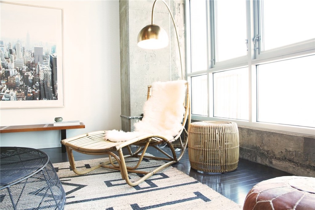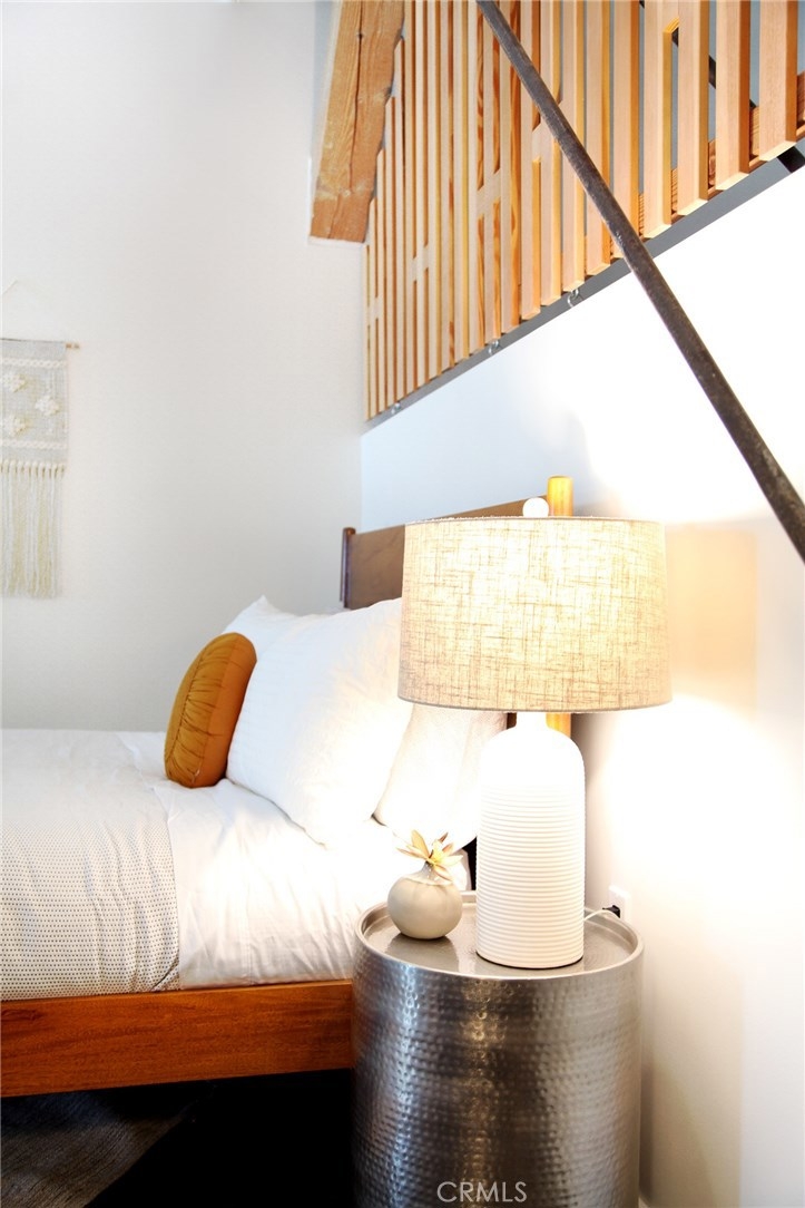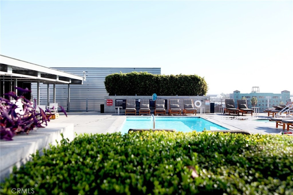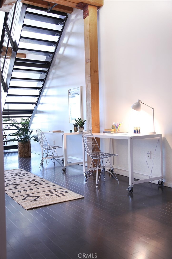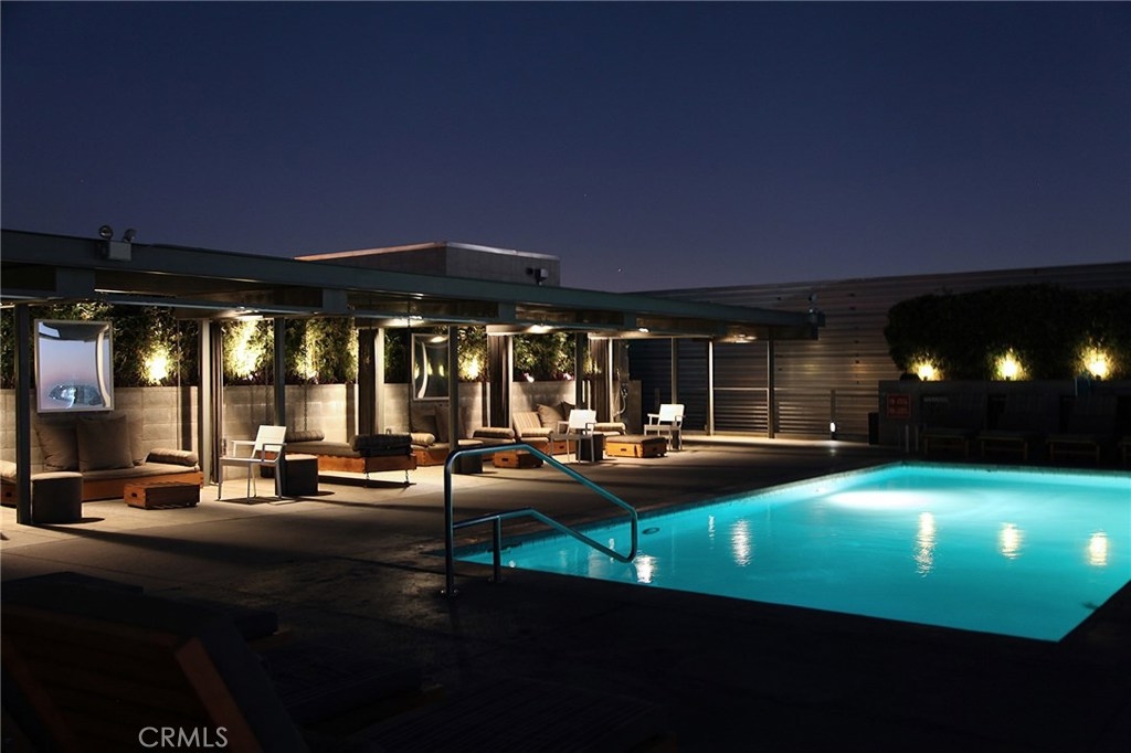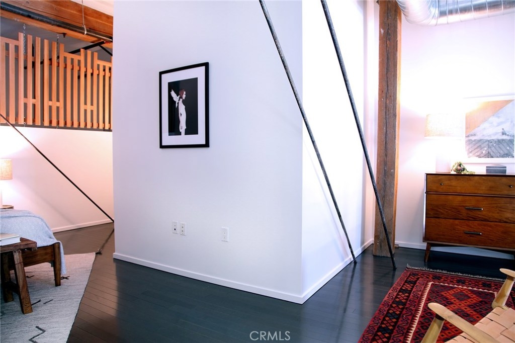 BARKER BLOCK | ARTS DISTRICT Soaring ceilings and jetliner views make this top floor penthouse one of a kind. This two-level loft is one of the most coveted floor plans at Barker Block. The 1 bedroom PLUS den/office, 2 bath unit has beautifully-aged exposed wood beams, steel bars, ductwork, skylight, 20' ceilings, dark hardwood floors, and oversized windows with captivating views of the city lights and 4th Street Bridge. This unique loft can be used as a live/work space. It features a state-of-the-art kitchen with Caeserstone countertops and stainless steel Jenn-Air appliances. Forget the car if you want because you'll be close to everything. Across the street is the Arts District Park and Urth Cafe, and you're just a short distance from Zinc Cafe, Bestia, Blue Bottle, Factory Kitchen, Hauser & Wirth, and more. The unit also comes with one deeded parking space. Built in the early 1900s and converted to condominiums in approximately 2007, Barker Block is the Arts District's most distinctive loft conversion, set in an unbeatable location with resort-style rooftop amenities that include a pool, spa, cabanas, fitness center and 24 hour security, all with stunning views of DTLA's skyline.
