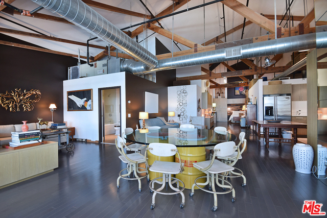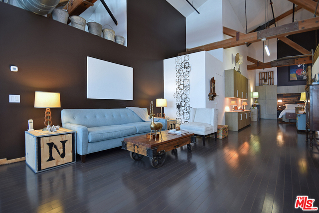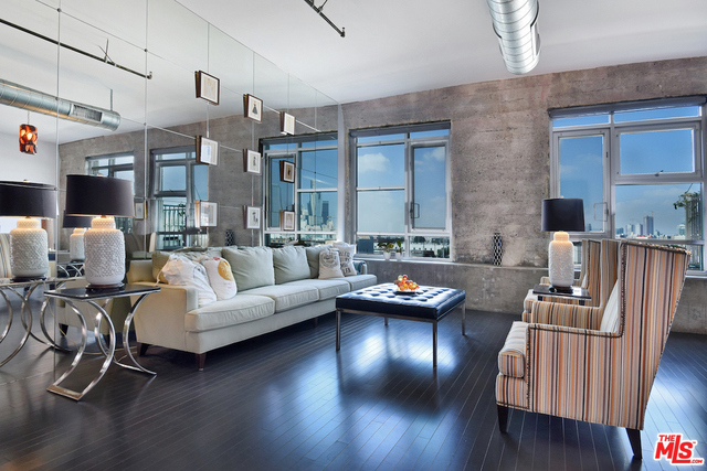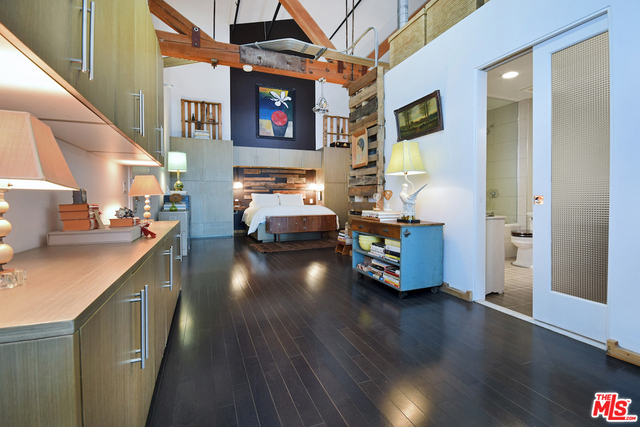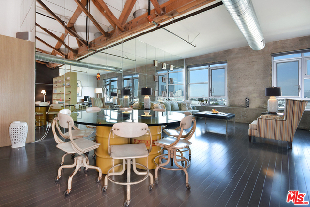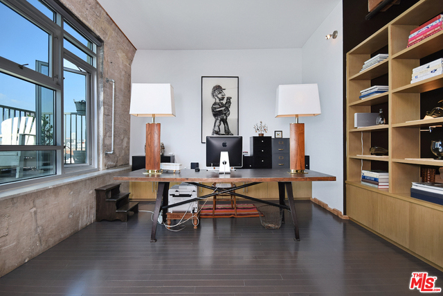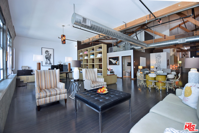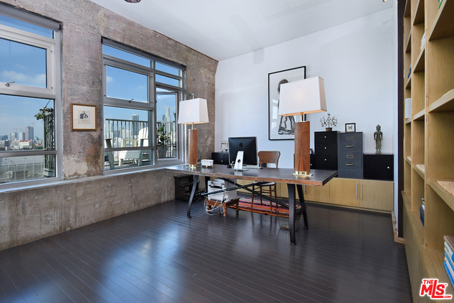 VISUALLY STRIKING PH - SINGLE STORY "L" SHAPED FLOOR PLAN AT BARKER BLOCK: 2BR/2BA, 1721 sq.ft. w/ 2 covered pkg. spaces, a balcony plus an in-building 9'w x 7'd x 10'h storage unit. This extraordinary live/work loft features 16' of windows w/ unobstructed city views, 2 huge bathrooms upgraded with Waterworks and Toto fixtures, custom built-in cabinets & bookshelves, a unique mirrored wall, century-old wood posts & beams; heavy timber ceilings tower 21' over hardwood floors, gourmet kitchen w/ SS appliances & Caesarstone countertops, large pantry, washer/dryer, window tmts. Stunning resort-style rooftop pool/spa/fireplace/fitness center. Outdoor lounge w/ firepit. 24/7 Security. Free common area WIFI. Across from Urth Caffe, the Arts District Park & the LA Cleantech Incubtor. Central to all Fwys. Close to all Studios. Near USC; walk to SCIArc, Little Tokyo, Goldline, DASH bus, Zinc Cafe, Urban Radish, dog park, hip new eateries, shops, taverns. All in the burgeoning Arts District.