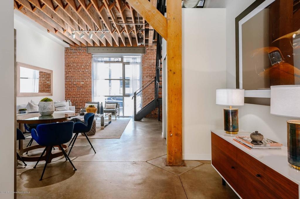 Architecturally stunning and rich with textures, is this two-level town-home style live/work loft, located in the sought-after Arts District of downtown LA. You are greeted with high ceilings, concrete floors, exposed wood beams and posts, windows floor to ceiling, frame by walls of exposed bricks, a S/S kitchen, half a bath, all offered on the lower level. Striking industrial staircase escalates you to the upper level, with two open style bedrooms, a full bath, vaulted ceilings, your very own balcony, and it is light-filled from multiple windows. Other features include multiple closets, a basement storage available, inside-laundry, a deeded and designated parking space. Onsite HOA management office and 24/7 security. New resort-like roof top pool/spa and gym in the making and coming soon, once complete, you will be able to enjoy the spectacular view overlooking the downtown LA skyline. Proximity to countless popular eateries, coffee houses, museums and galleries, right across from the Arts District park, a quick hop to all major FWYs, metro and train stations. Experience living in the famed Arts District of DTLA.