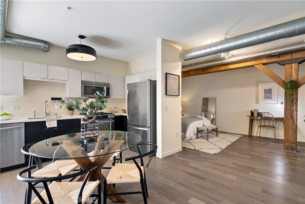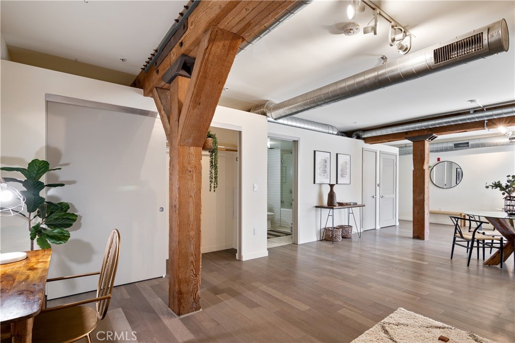 Stop scrolling now! Open floor plan living in the heart of DTLA's Arts District. Barker Block is one of the most desirable loft residences in the Arts District. This unit has authentic industrial loft vibes perfect for housing the ultimate city dweller. Unit has concrete floors, wood posts and beams, brick wall accents and private views of the court yard. Washer dryer and 1 car parking is included. Property is conveniently located near metro lines, freeways, markets. Equipped with 24 hour security with controlled key access, rooftop pool with the most expansive views of DTLA, bbq deck for entertaining, cabanas for Sunday recovery, full fitness gym on the rooftop and easy city access. Property is across the street from the Urth cafe and walking distance to award winning restaurants such as Girl and the Goat, Bavel, Zinc cafe, blue bottle coffee, pie hole, Wurstkuche, Arts district and Angel city breweries. This is your chance to live at the center of DTLA's most vibrant neighborhood!