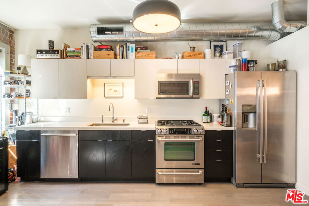 Motivated Seller, At Just $642.00 psf (per square foot) this loft is "Priced to Sell"! Barker Blocks Boutique "Warehouse One" Annex! Penthouse Level, Top Floor of The Arts District's Iconic and highly sought-after Residence. Unlike Barker Blocks' original concrete building next door which came to market in 2006 with over 250 units, Warehouse #1 was annexed just 8 years ago in 2014, offering just 68 specialized, secluded and newer Live/Work urban lofts quietly tucked back onto Molino Street, supported by its own private entrance, open-air lobby, courtyard, private elevators, and mailbox area. PH #404 boasts over 1050sf floor-to-ceiling exposed brick, classic heavy block concrete, 12" exposed ducts, and turn-of-the-century timber columns featuring original hardware from the early 1900s. Soaring Penthouse level height ceilings are only offered on the top level. Hardwood floors, gourmet kitchen with quartz countertop and backsplash, stainless steel appliance package with commercial grade gas cooktop. Large bathroom featuring floor-to-ceiling subway tile, oversized soaking tub with upgraded glass swing shower door. West-Facing offers wonderful natural light via 3 large windows with potential for seating (window sills), slightly filtered so as not to bake in LA's sizzling summers. Renowned luxury resort-style rooftop pool deck, fitness center, fire pit, BBQ, and cabanas. Offers what is arguably the unmatched best downtown skyline views the city has to offer. In-unit Washer/Dryer and assigned, covered parking space in the smaller private Warehouse #1 garage. Walk to everything the established booming Arts District has to offer, including top restaurants Bavel, Bestia, Damian, and the area's newest addition "Girl and The Goat" less than a block away!