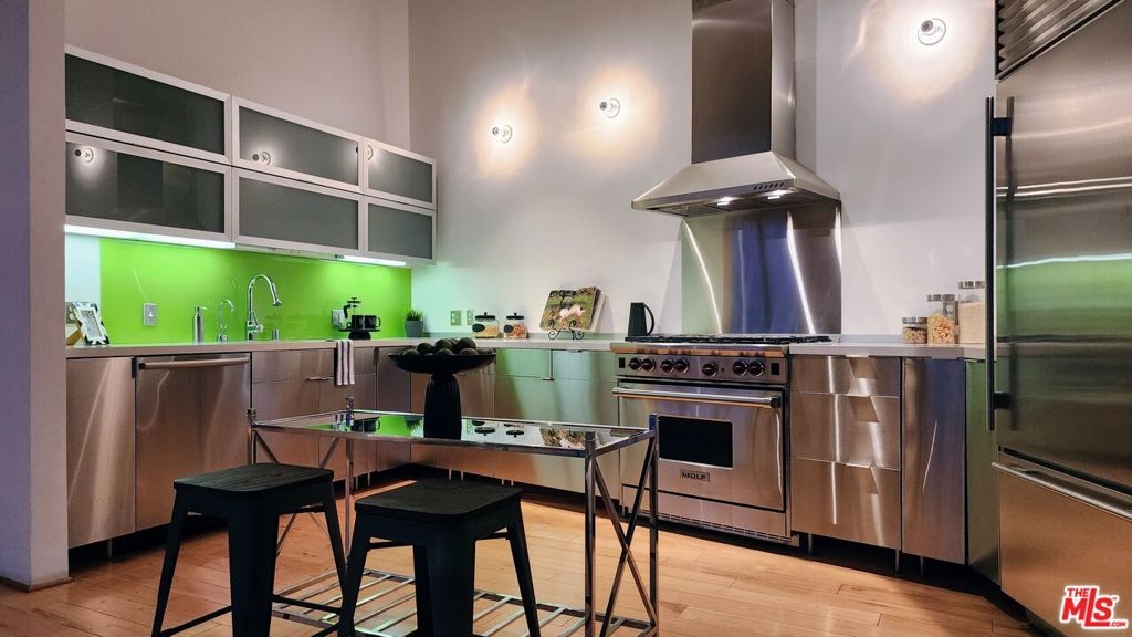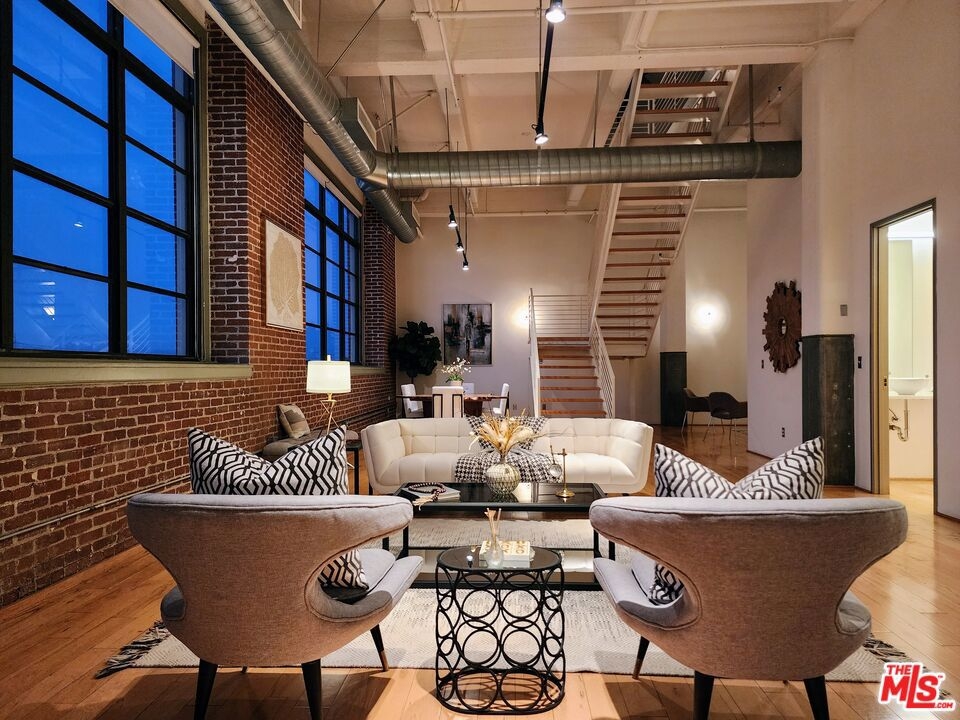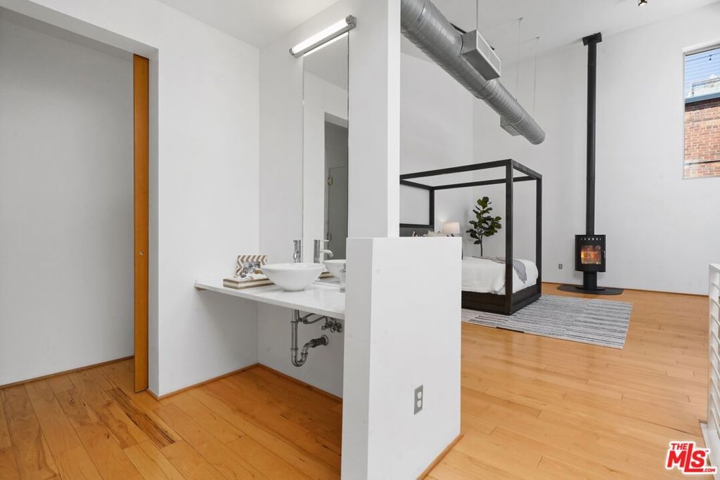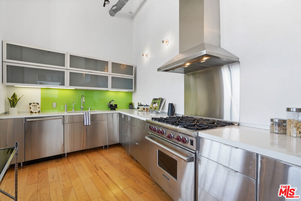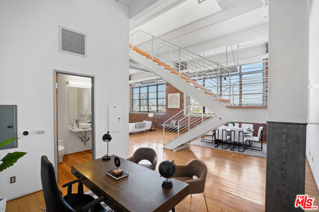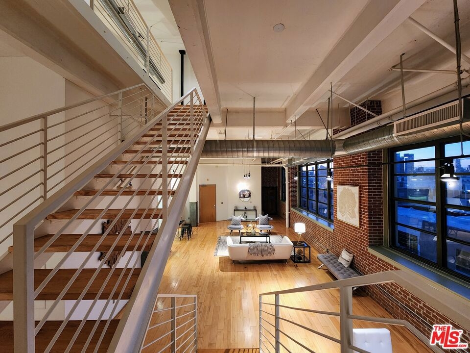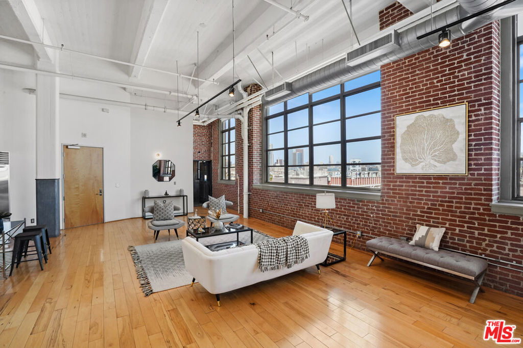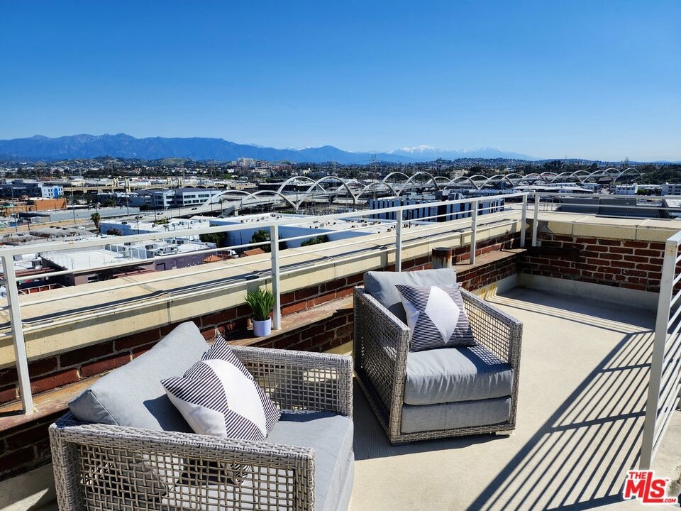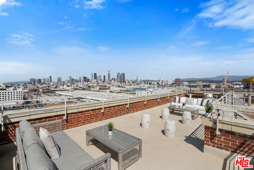 On the exclusive 7th floor penthouse level, lies one of the most unique and RARE penthouse's ever to be presented at the historically designated Biscuit Lofts. Unit #701 is a 2,030 sqft. townhome style unit with approx. 1000 sqft of private patios, including a 360 panoramic corner rooftop deck with views of the entire city! It cannot be denied that this is one of the most stunning private rooftop decks in the Arts District, and will elevate your outdoor entertainment to next level impressiveness. The open kitchen features stainless steel appliances and cabinetry, Wolf 6-burner stove, Subzero refrigerator, and overlooks the stunning lower living space with towering ceilings and hardwood floors. A wall of windows overlooks Downtown LA landmark buildings, the new 6th Street Bridge, and the stunning San Bernardino Mountain range. There are two bathrooms on the lower level, allowing for an additional bedroom space or office with a private full bath. The upper level is the luxurious master suite with soaring ceilings, laundry facilities, and a fireplace. Another advantage of the Biscuit Lofts being live/work space, is these versatile units can be a home, office or any combination of both! The building offers a 24/7 concierge, saline pool and showers, Viking BBQ's, firepit, and a full gym. MASSIVE REDUCTION IN PROPERTY TAXES DUE TO MILLS ACT. Included are THREE underground parking spaces and one storage unit.