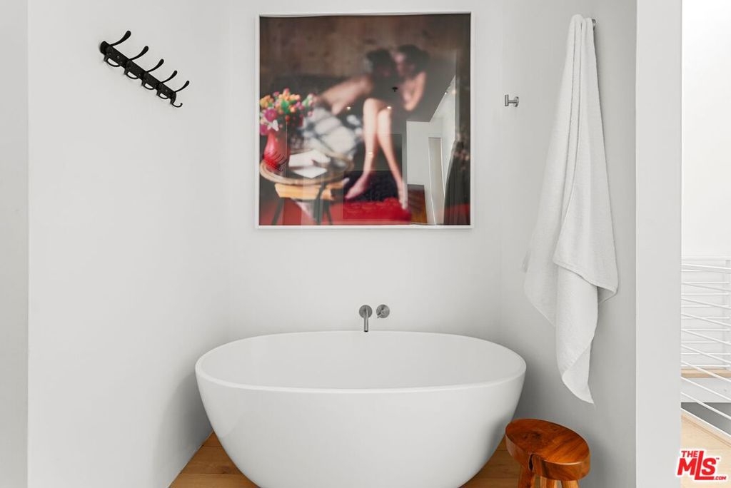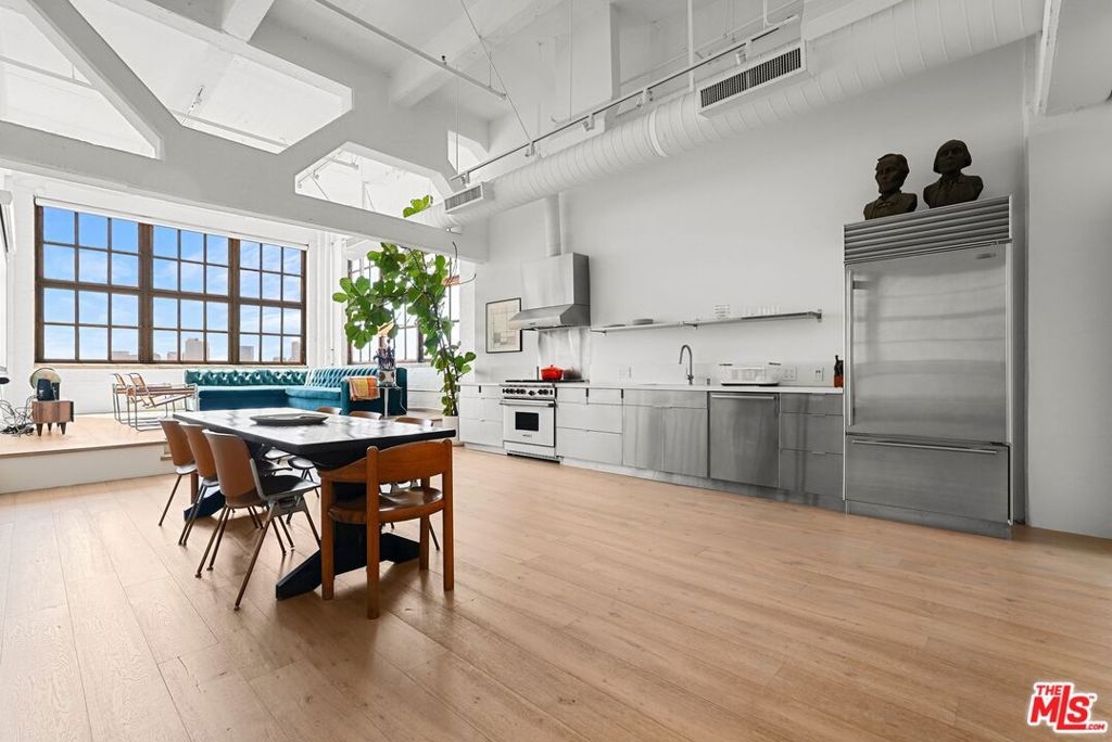 Located in the heart of DTLA's vibrant Arts District is this designer 2-story architectural penthouse at the Biscuit Company Lofts. Just moments away from the best dining, coffee spots, and Soho Warehouse, this home offers both luxury and convenience. No detail was overlooked in transforming this residence into one of the most exceptional in the neighborhood. Highlights include a private terrace with sweeping, sunset views of the downtown skyline, soaring high ceiling, exposed original brick walls, rich wood flooring, and a sleek stainless steel kitchen. The primary suite is an oasis with a spa-like bathroom, plentiful closet space, and direct access to the private exterior patio. The Biscuit Company Lofts is regarded as one of the premier buildings in the Arts District, offering 24-hour controlled access, security, and concierge services. The building amenities include a resort-style swimming pool, outdoor lounge area with a fire pit and BBQ, dog walk, a two-level gym, and two dedicated parking spaces. As a Mills-Act approved building, each homeowner benefits from significant property tax savings. This is a truly unique opportunity.