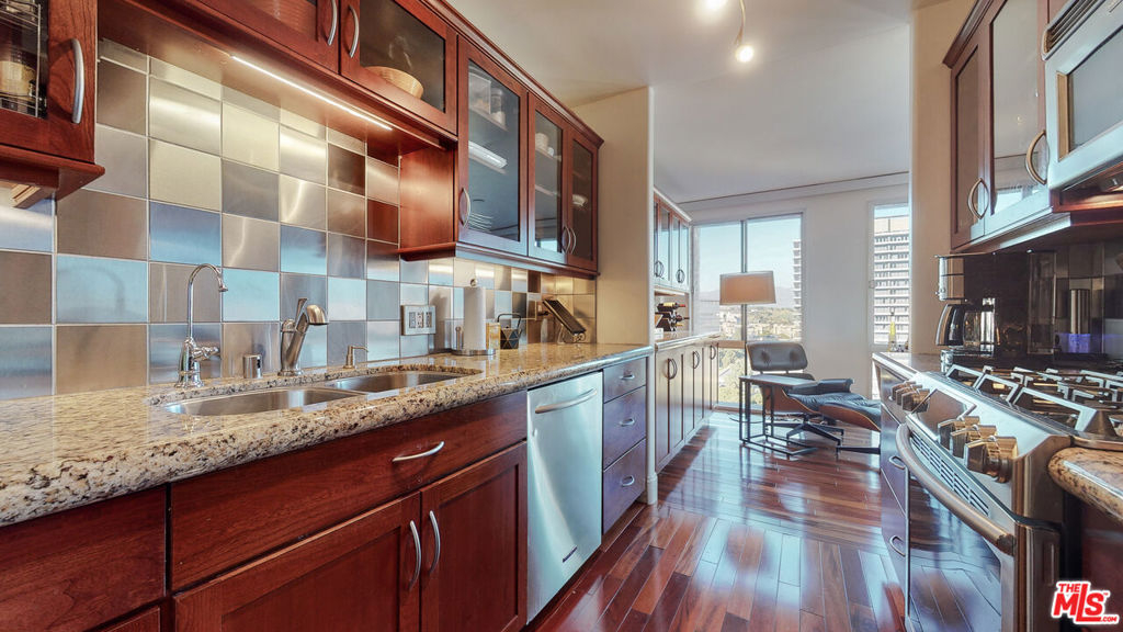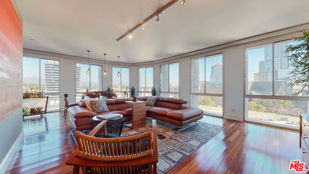 Beautiful 2 bedroom 2 bath corner unit on top of Bunker Hill. AMAZING views of downtown LA, the mountains, Disney Hall, Dorothy Chandler and other landmarks. Extremely easy access to all DTLA has to offer. Floor to ceiling windows, wood floors, updated kitchen with granite counter-tops and stainless steel appliances. Two large bedrooms with enchanting views. Full service building offers 24 hour security, large pool and spa, two gyms, two tennis court and much, much more. A quiet heaven in bustling DTLA. HOA INCLUDES ALL UTILITIES INCLUDING ELECTRICITY, HIGH-SPEED INTERNET AND DIRECTV!