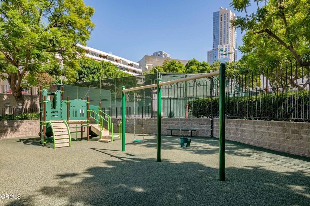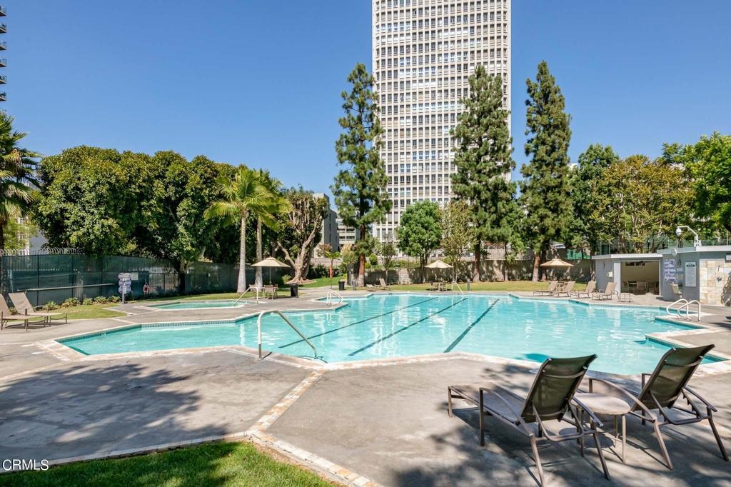Corner unit, high above the city with stunning panoramic views of downtown LA! Upgraded with newer windows in both bedrooms, kitchen counter tops and wood floors throughout. Floor to ceiling walls of windows wrapping around the living and dining area. Flood with natural light from the North and West views visible to the Hollywood sign and more.It offers one of the most luxurious amenities in town. Two tennis courts, two separate men's and women's fitness gyms, a resort like Olympic sized swimming pool, hot tub, dry sauna, BBQ grills, a private park with swings, onsite hair salon, mini market, and dry cleaner, 24/7 security and concierge, guest parking, a club house and conference room with kitchen, TV, large sitting area, and a private storage to this unit. Proximity to countless eateries and entertainment such as Otium, Patina, Water Grill, MOCA, Disney Concert Hall, Dorothy Chandler Pavilion, The Broad, Grand Park, Civic Center, the California Club, Staple Center, LA Live, and much more. Close to many major FWYs, 110, 5, 10, and 101 and public transits. Come live a vibrant city life in the prestigious Bunker Hill Tower Condominium.