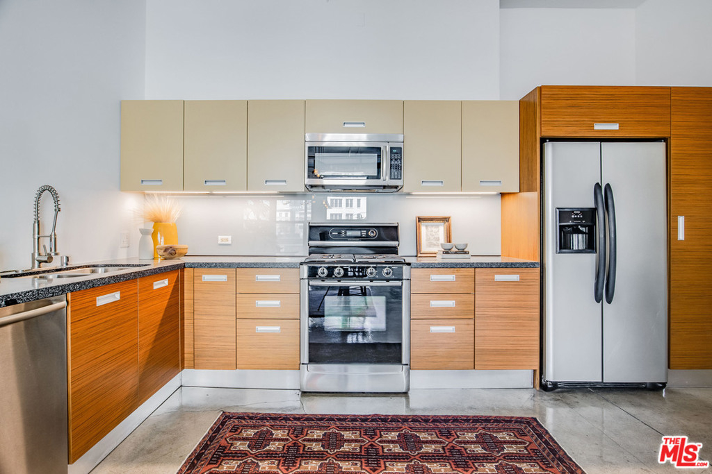 MUST SEE! Historic, Soho-style landmark loft, with huge property tax savings for sale! This stunning, light-flooded, west-facing condo just hit the market and it has one of the most sought-after floorplans in the whole building. The unit's high ceilings, wall of oversized windows and iconic fire escape add to the unique industrial flair. Once the West Coast's biggest garment factory, Santee Village is now benefiting from its industrial past as a designated LA landmark building. This will qualify owner for a property tax discount up to 70%. The unit has an Italian, high quality designer kitchen, Bosch appliances, Nest thermostat, RH ceiling lighting, walk in pantry and a newly designed custom-built closet. What makes this condo so special is the T-shaped floorplan of the property. This makes it possible to add another bedroom, if needed, create some privacy or build in a designated home office space, as the Eckardt building is a live/work permitted building which allows it's residents to run a business/office. The building features stunning rooftops with great views of the DTLA skyline, a pool, 3 hot tubs, BBQs, basketball court, huge gym and foodhall. The super trendy Fashion District has many new developments in the pipeline and the neighborhood is home to some of Downtown's best restaurants, hotels, markets and fashion stores.